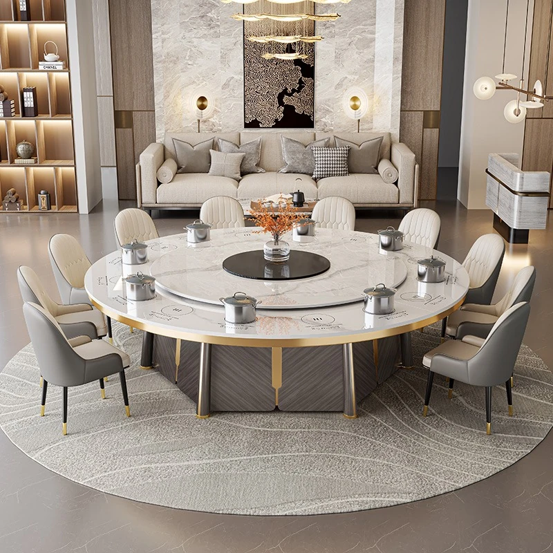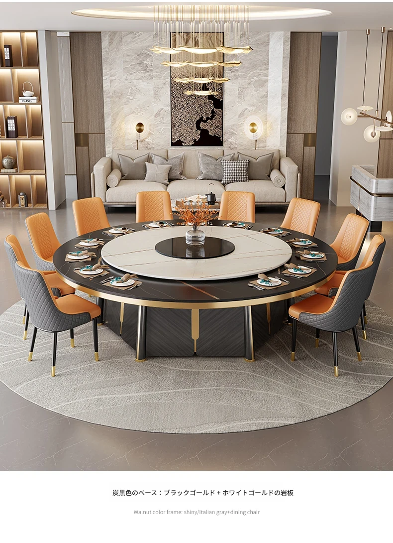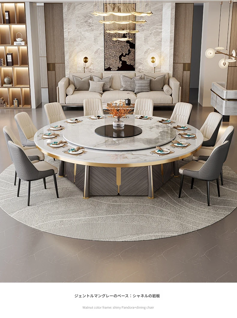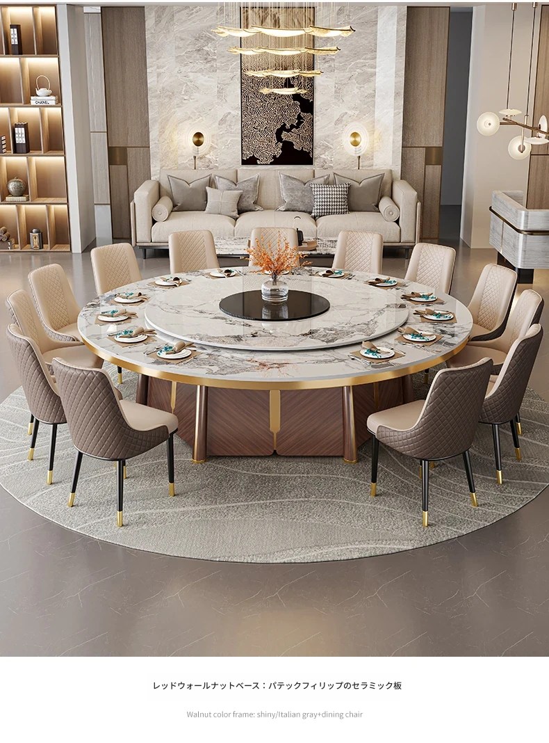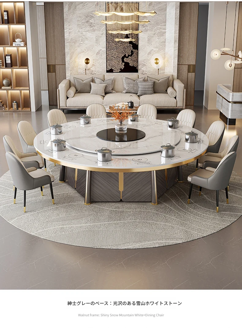 豪華な岩板電動レストランテーブル - ホテルの個室や商業用レストランに最適な2m・3mサイズ、20人用の大円卓!洗練されたデザインで、特別なひとときを演出します。