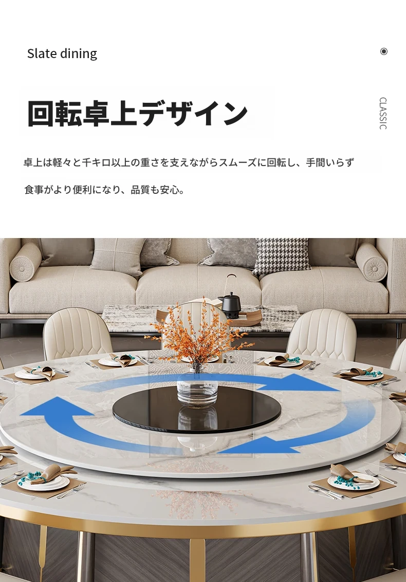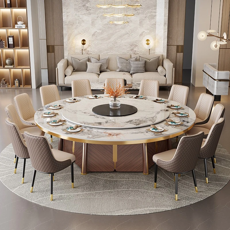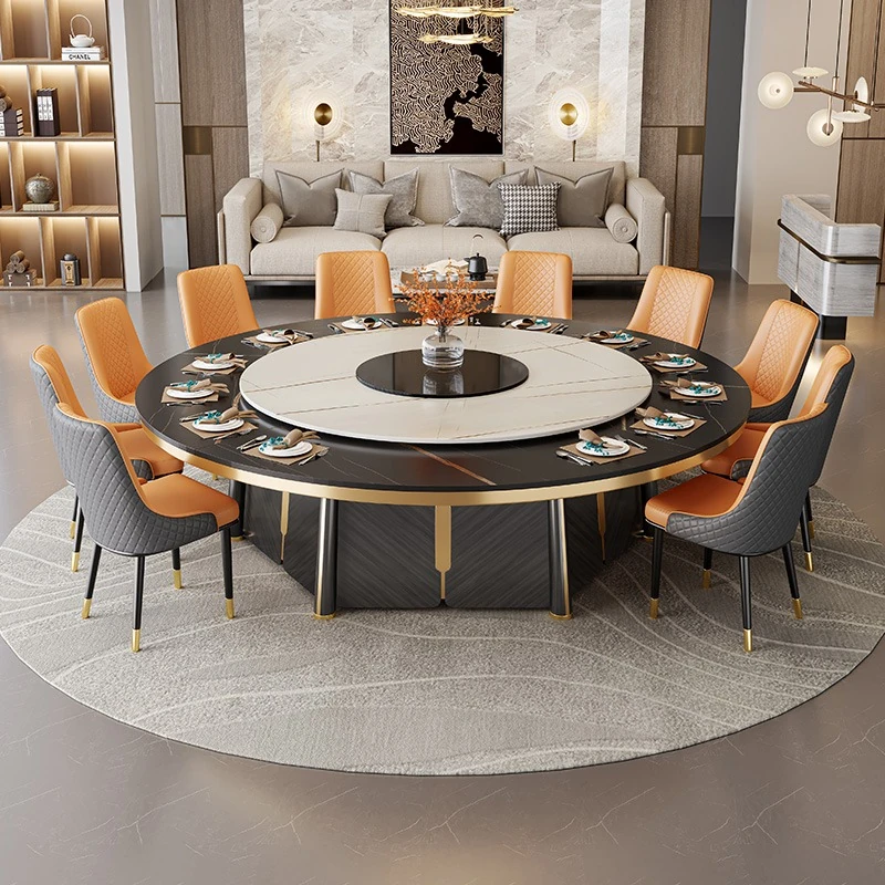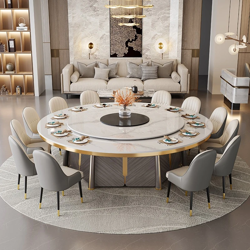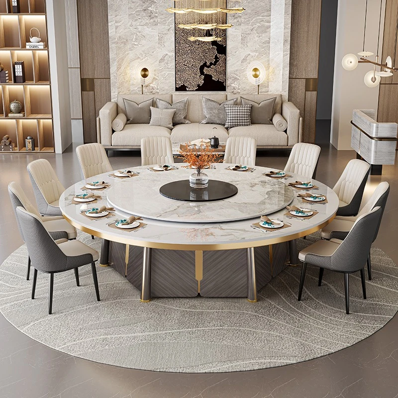 豪華な岩板電動レストランテーブル - ホテルの個室や商業用レストランに最適な2m・3mサイズ、20人用の大円卓!洗練されたデザインで、特別なひとときを演出します。