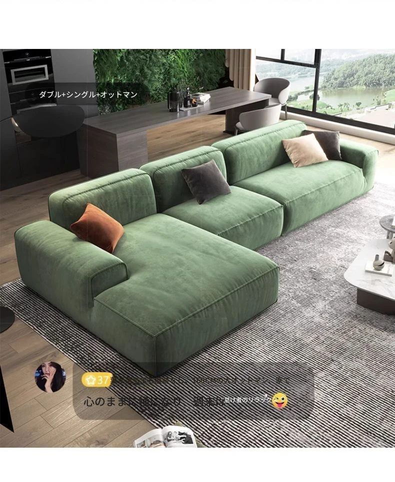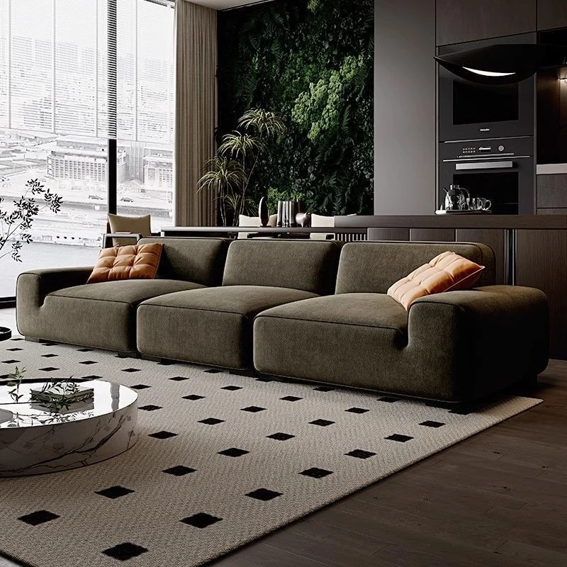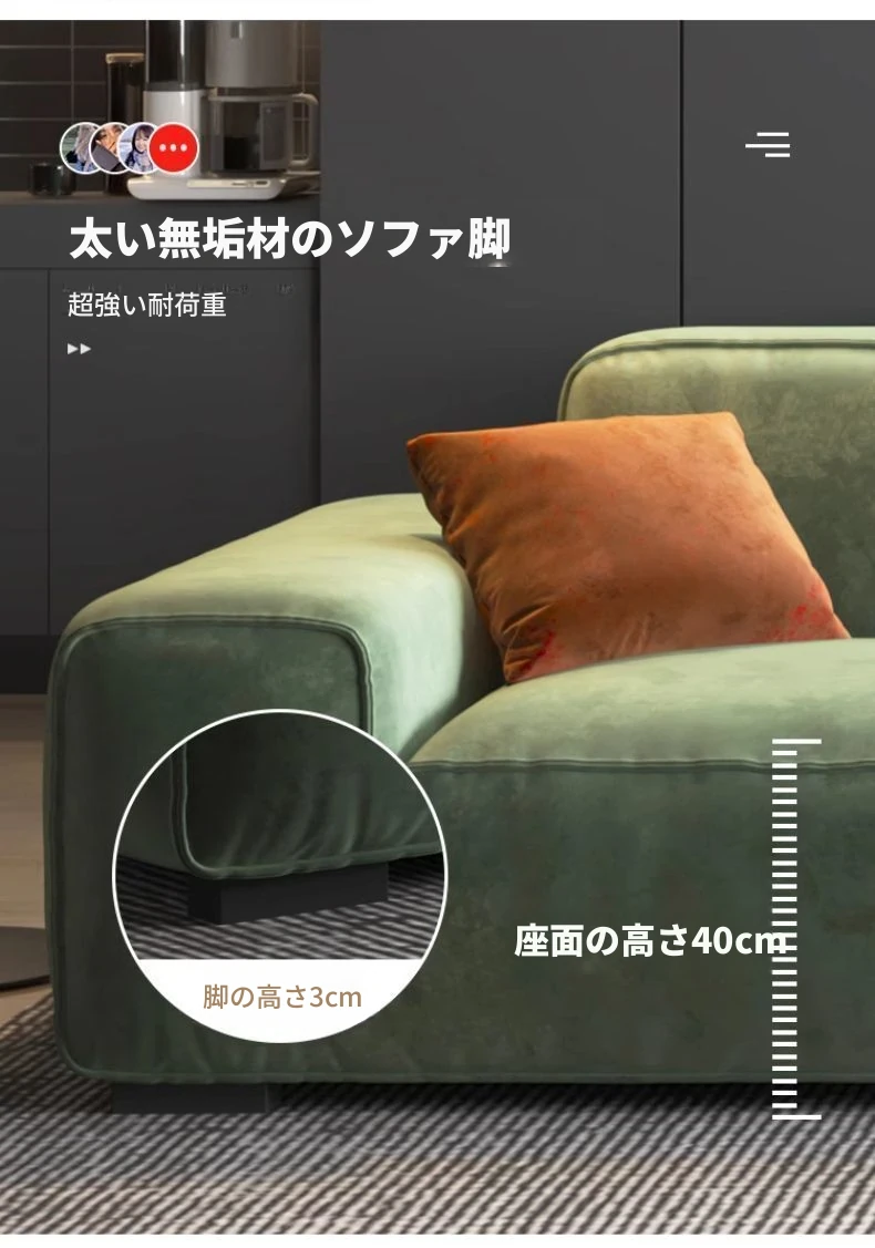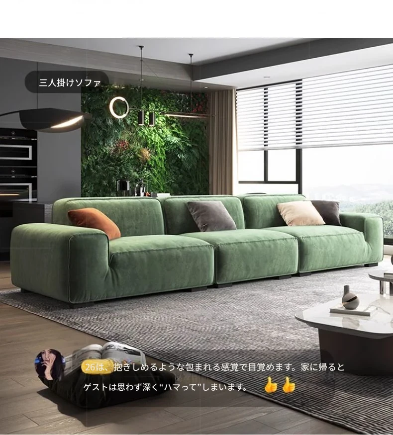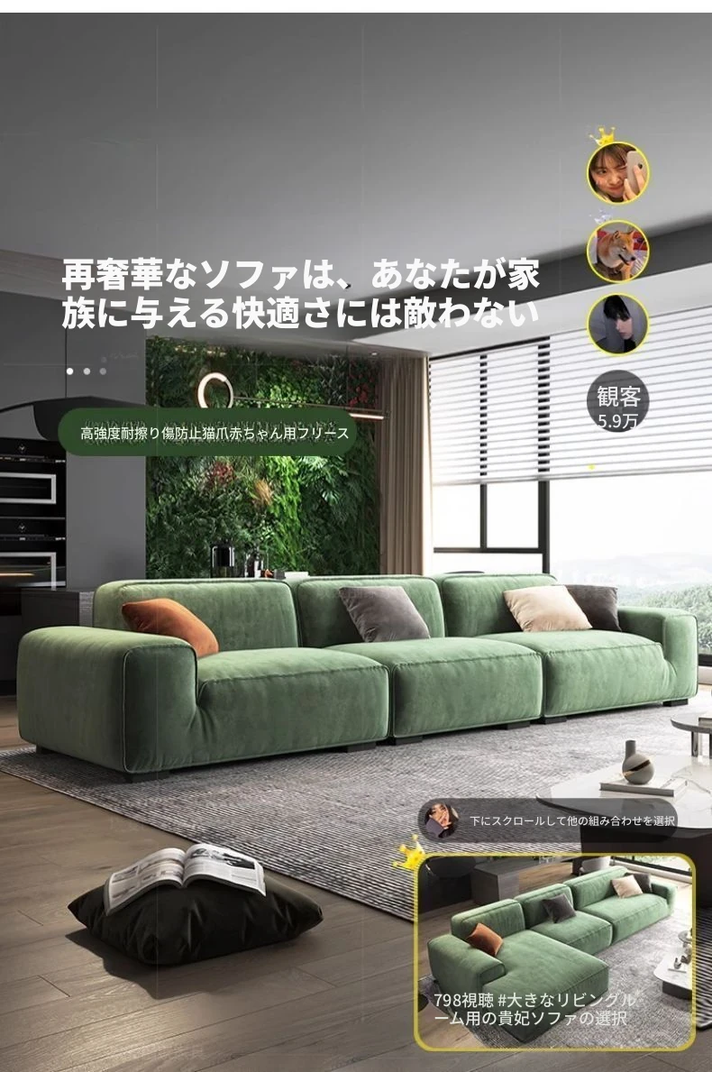 大黒牛布ソファー イタリアンミニマリズムのベルベット 猫の爪にも優しい デザイン性抜群のリビング用ソファ 小型住宅に最適なラグジュアリーなストレートソファ