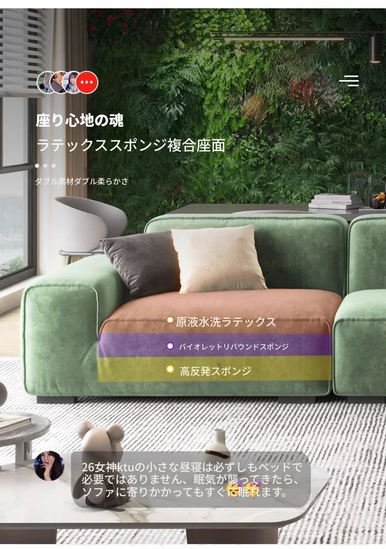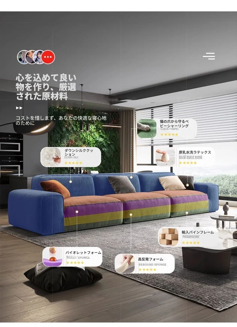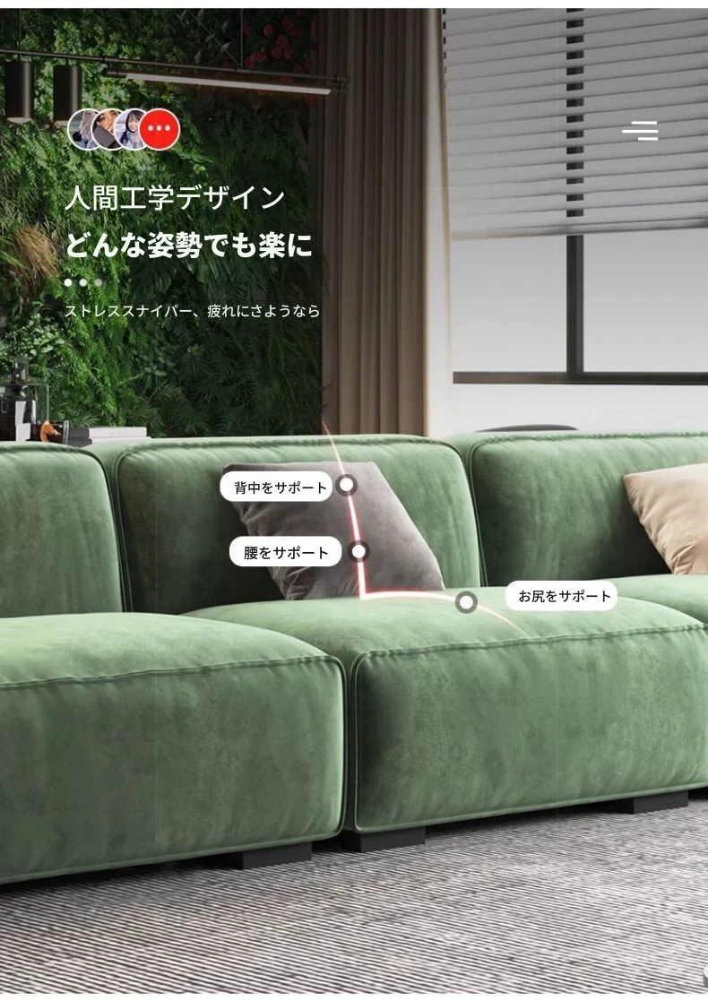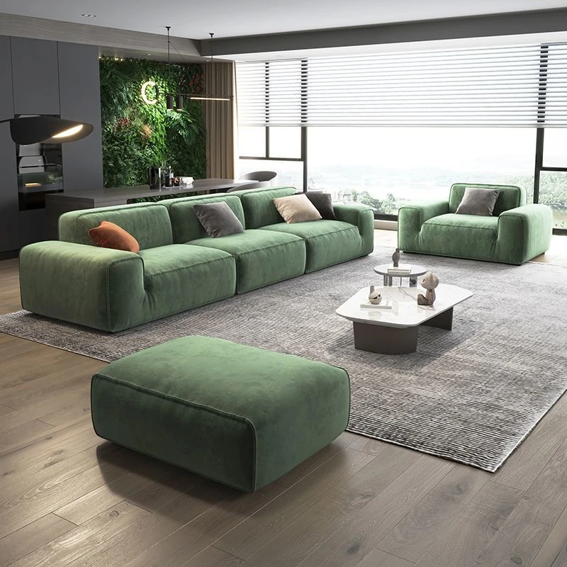 大黒牛布ソファー イタリアンミニマリズムのベルベット 猫の爪にも優しい デザイン性抜群のリビング用ソファ 小型住宅に最適なラグジュアリーなストレートソファ