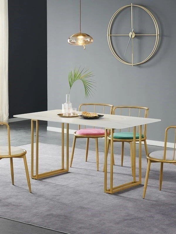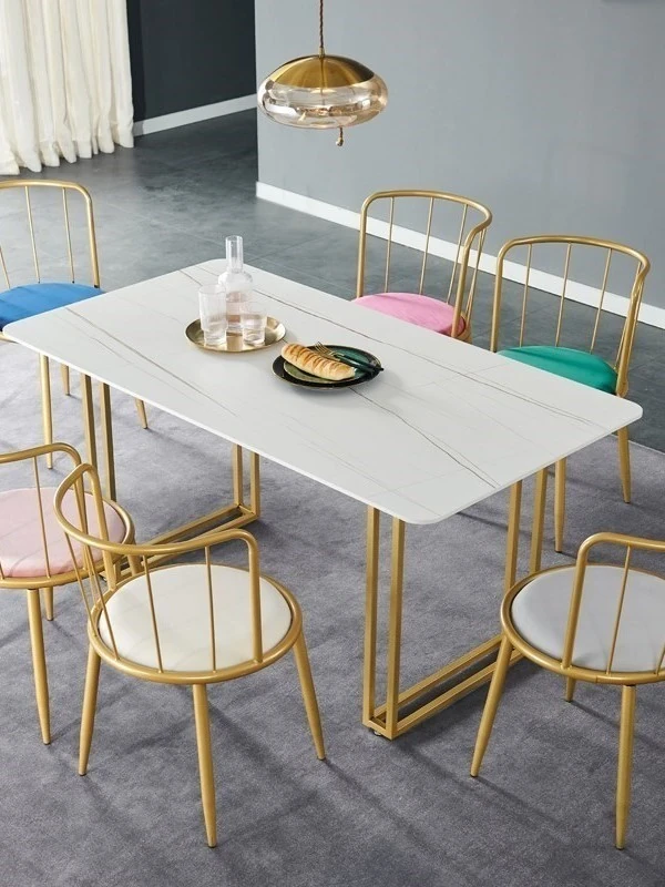 大理石デザインの小型ダイニングテーブルセット|光沢のある中華風の岩板テーブル|おしゃれでコンパクトなリビング用ダイニングテーブル|家族団らんにぴったり!