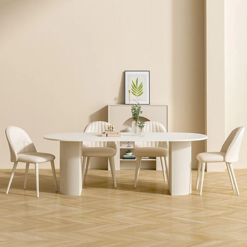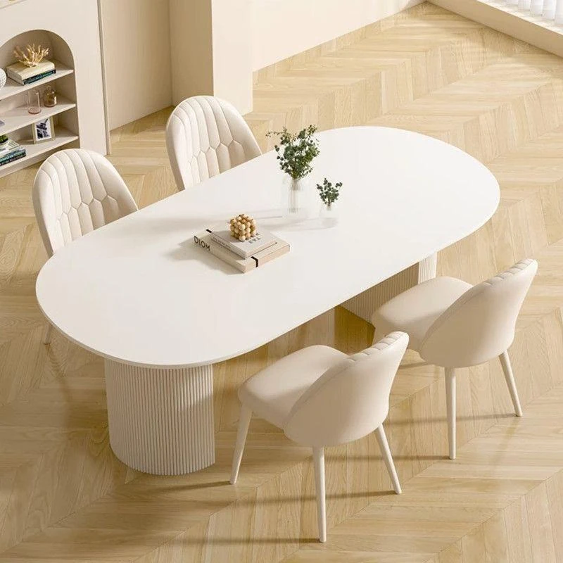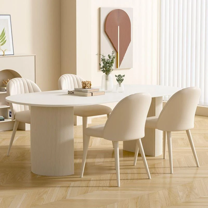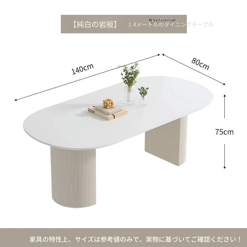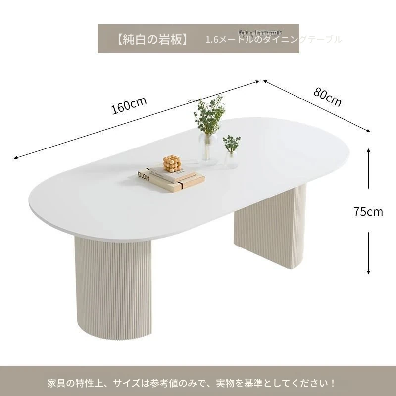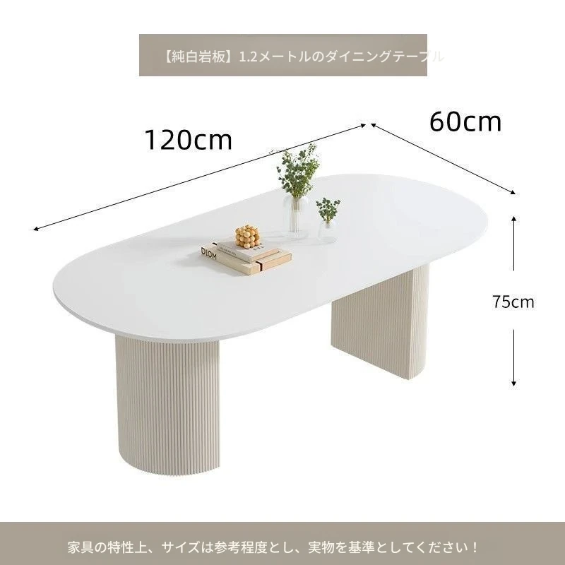 クリーム風味の純白岩板ダイニングテーブル|小型家庭向け|軽快でラグジュアリーな現代的シンプルデザイン|人気の楕円形テーブルと椅子のセット!おしゃれな空間を演出し、食事を特別な時間に。