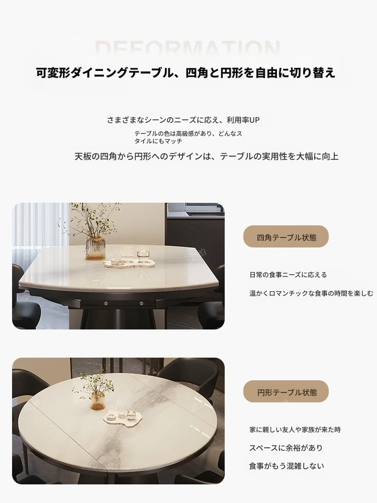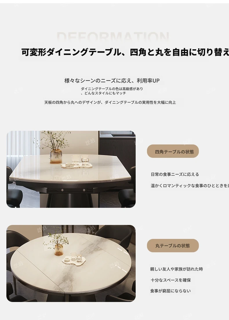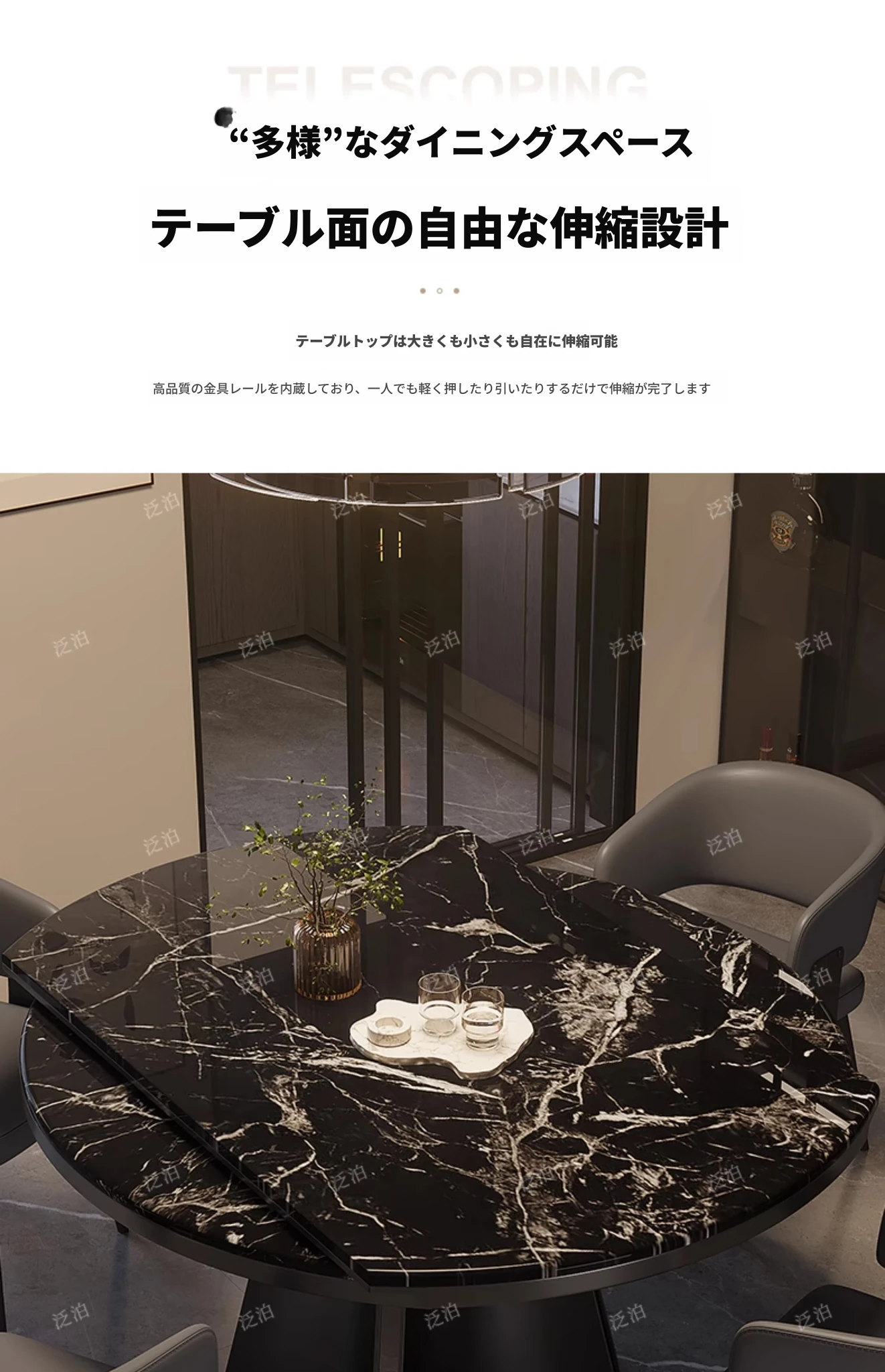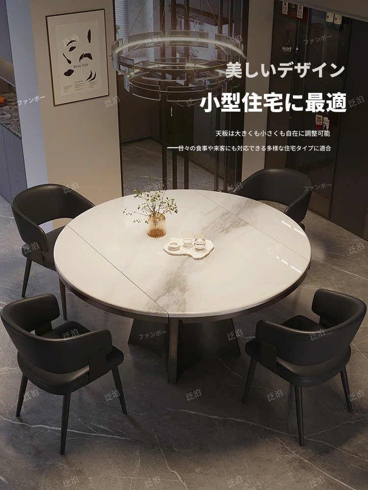折りたたみ式伸縮マイクロクリスタルストーン長方形テーブル|変形可能な円形テーブル|家庭用ダイニングテーブル&椅子セット|モダンでシンプルなデザインで、スペースを有効活用!