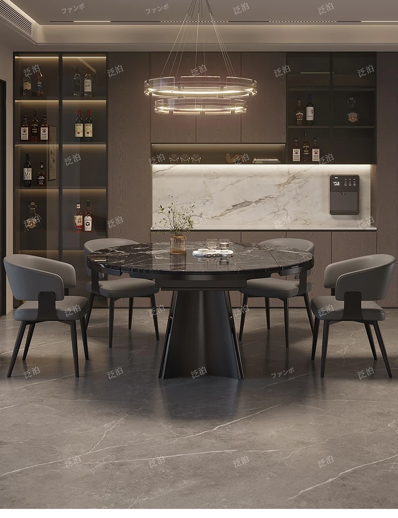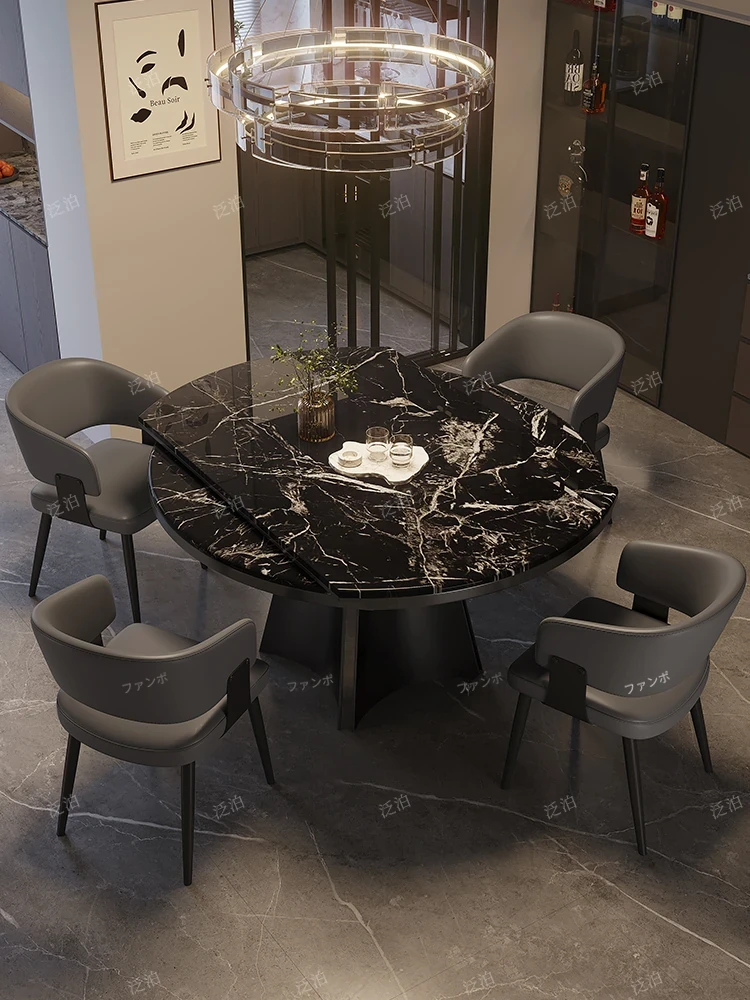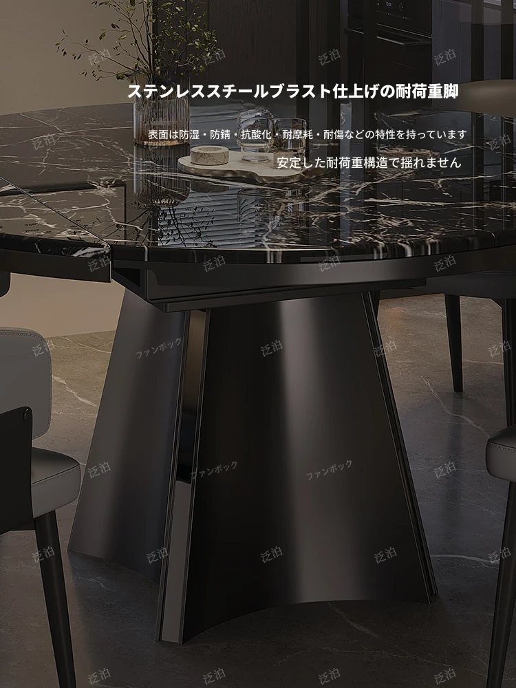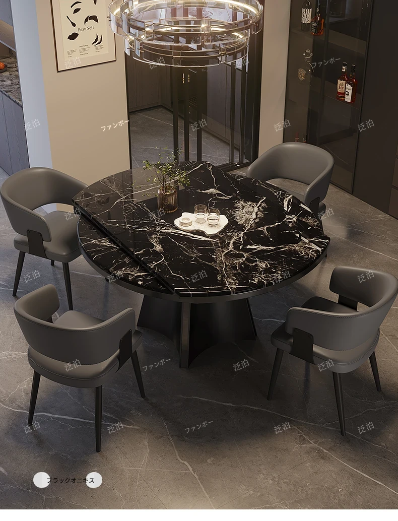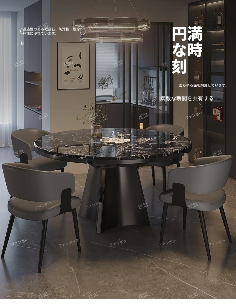 折りたたみ式伸縮マイクロクリスタルストーン長方形テーブル|変形可能な円形テーブル|家庭用ダイニングテーブル&椅子セット|モダンでシンプルなデザインで、スペースを有効活用!