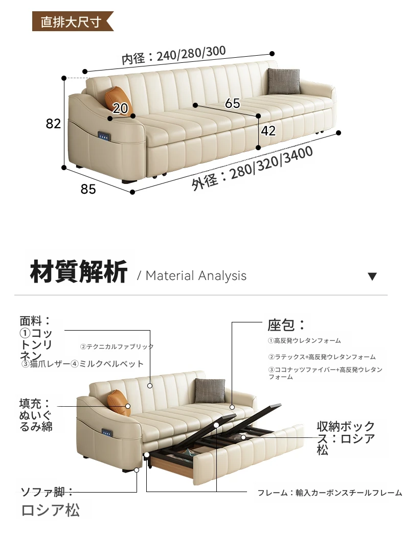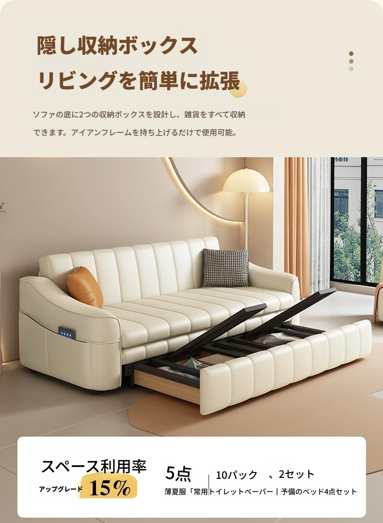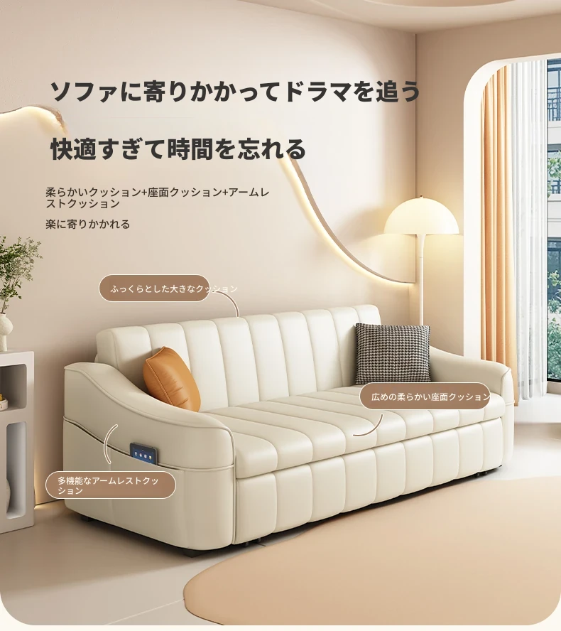 【香港送料無料】ハイセッティングテクノロジー布製ソファベッド 小型スペースに最適!リビングルームで使える多機能折りたたみソファ!