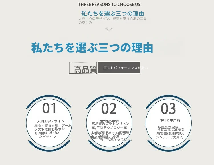 幅1X2メートル長さアーム付き綿麻布3人用ソファシングルベッド