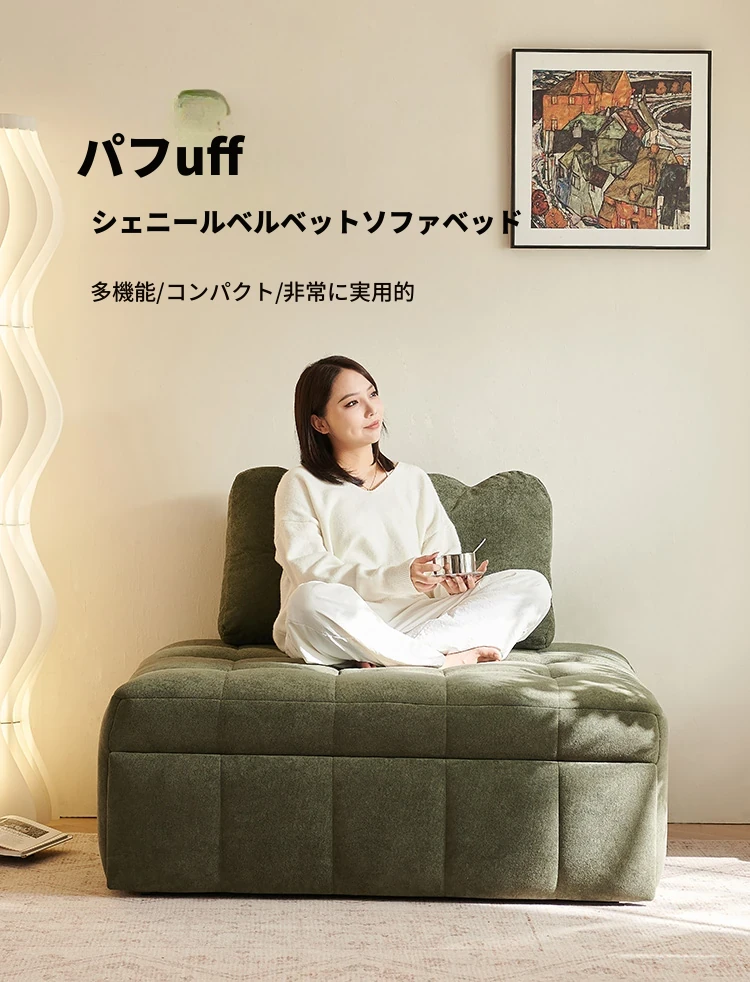 [香港送料無料] クリーム風味のシュークリームソファベッド - 小型リビングにぴったりな折りたたみ・伸縮式マルチファンクションファブリック収納!快適な空間を演出します!
