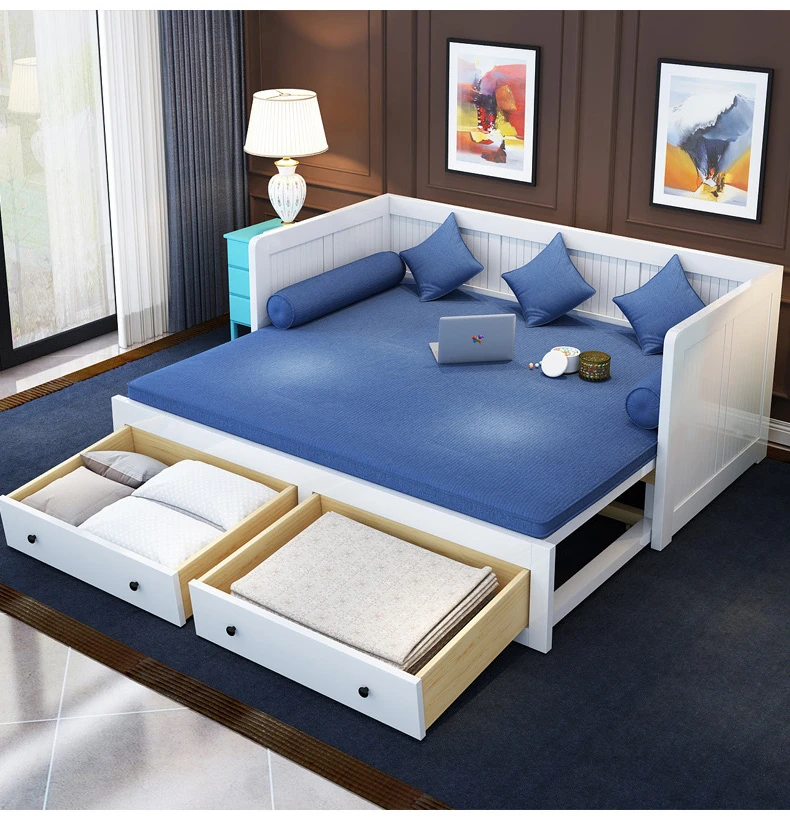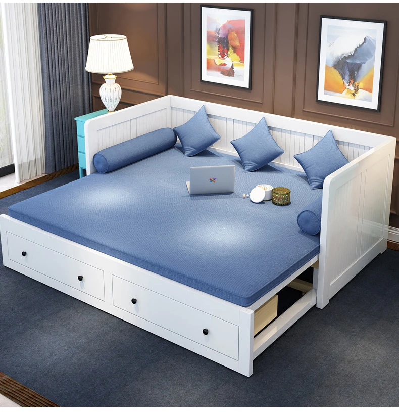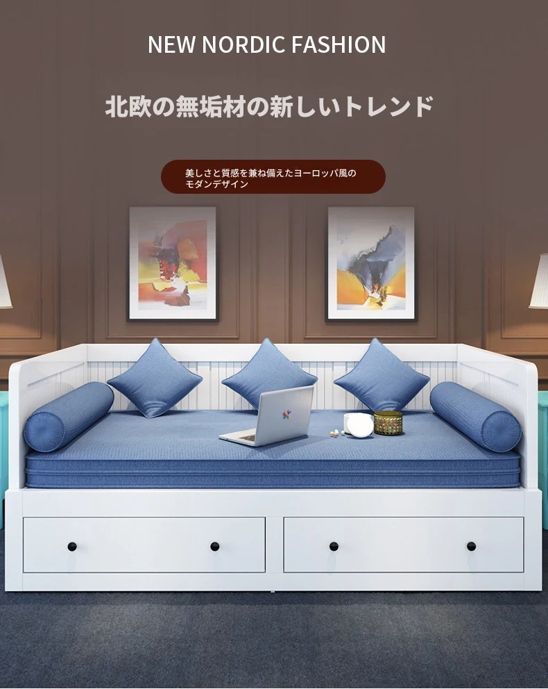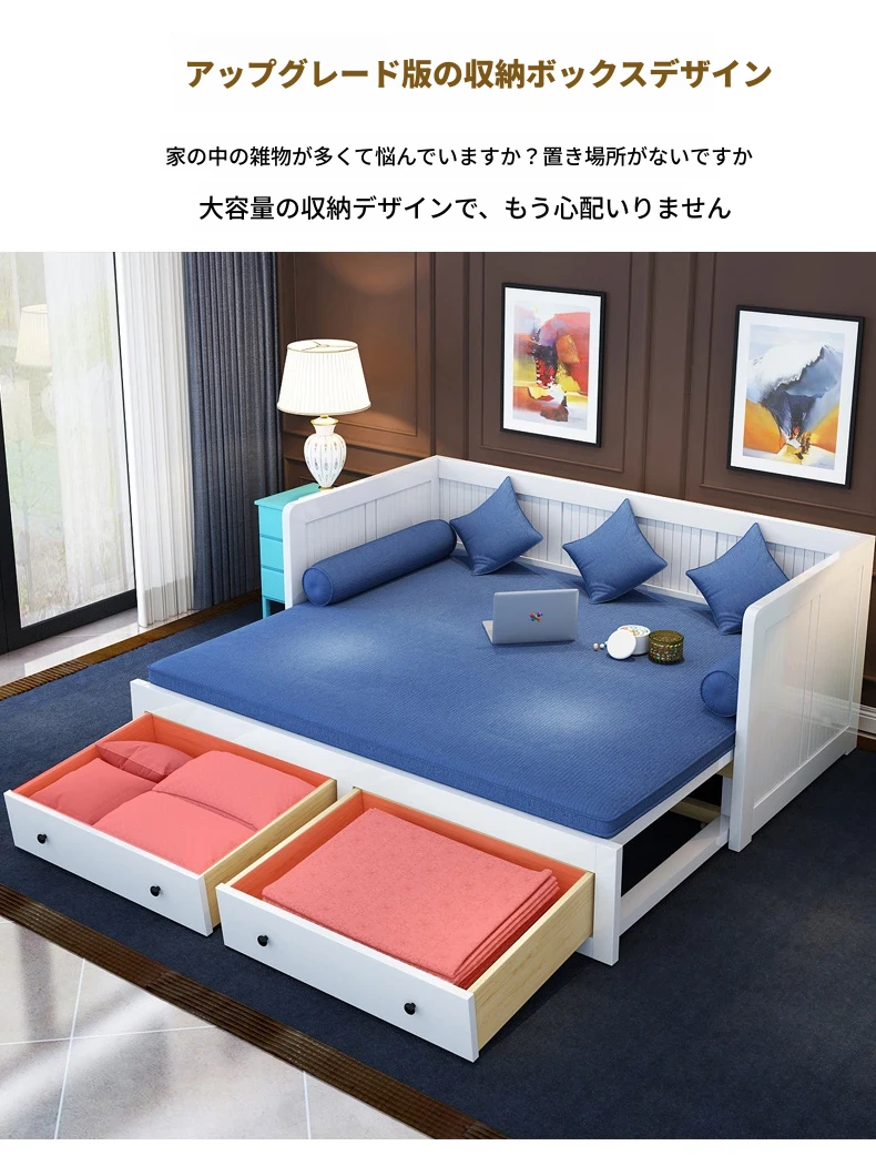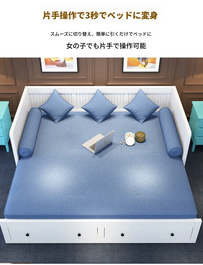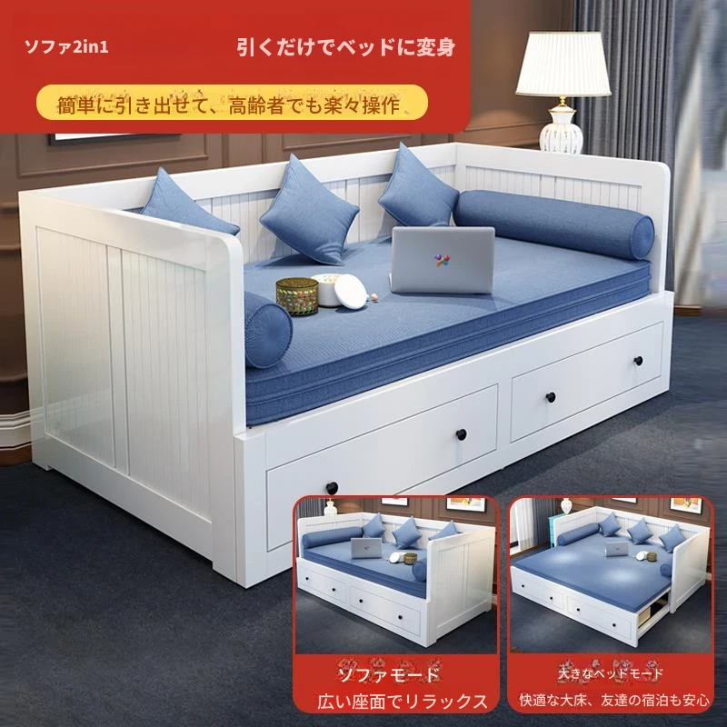 【香港送料無料】折りたたみ式ソファベッド 多機能木製 1.5m シングルベッド 小型スペース向け リビングにぴったりの伸縮可能なデザイン!快適な睡眠とおしゃれな空間を実現。