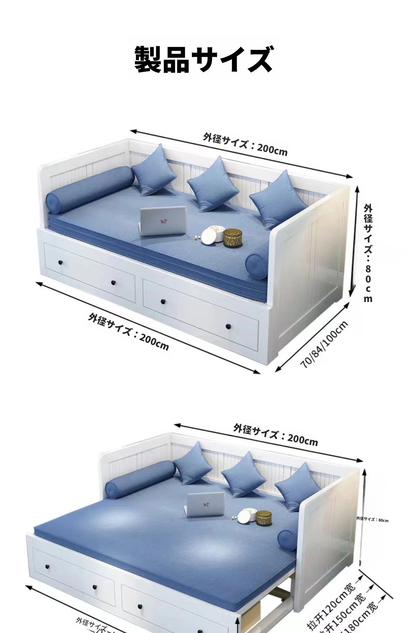 暖白色 長さ200 折りたたみ100 開いた180 乳膠六点セット+設置