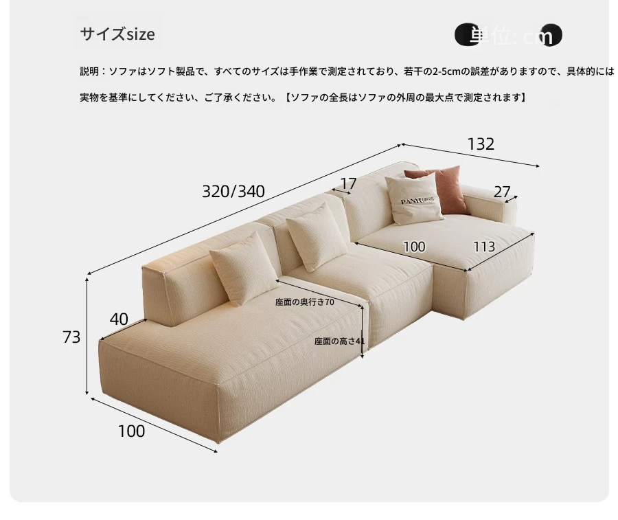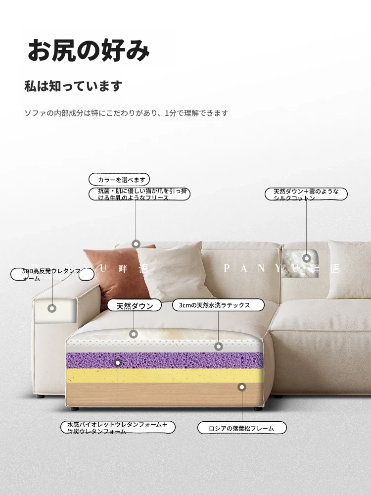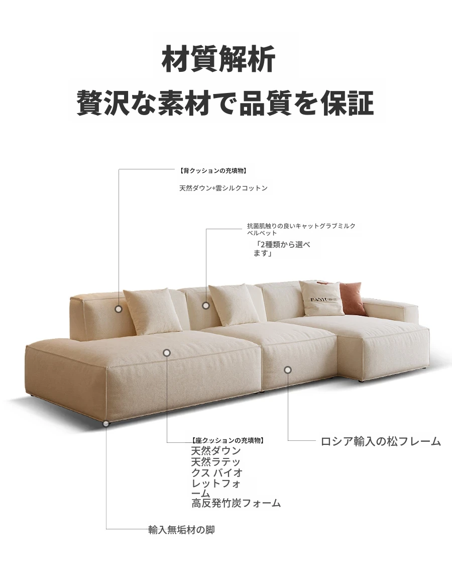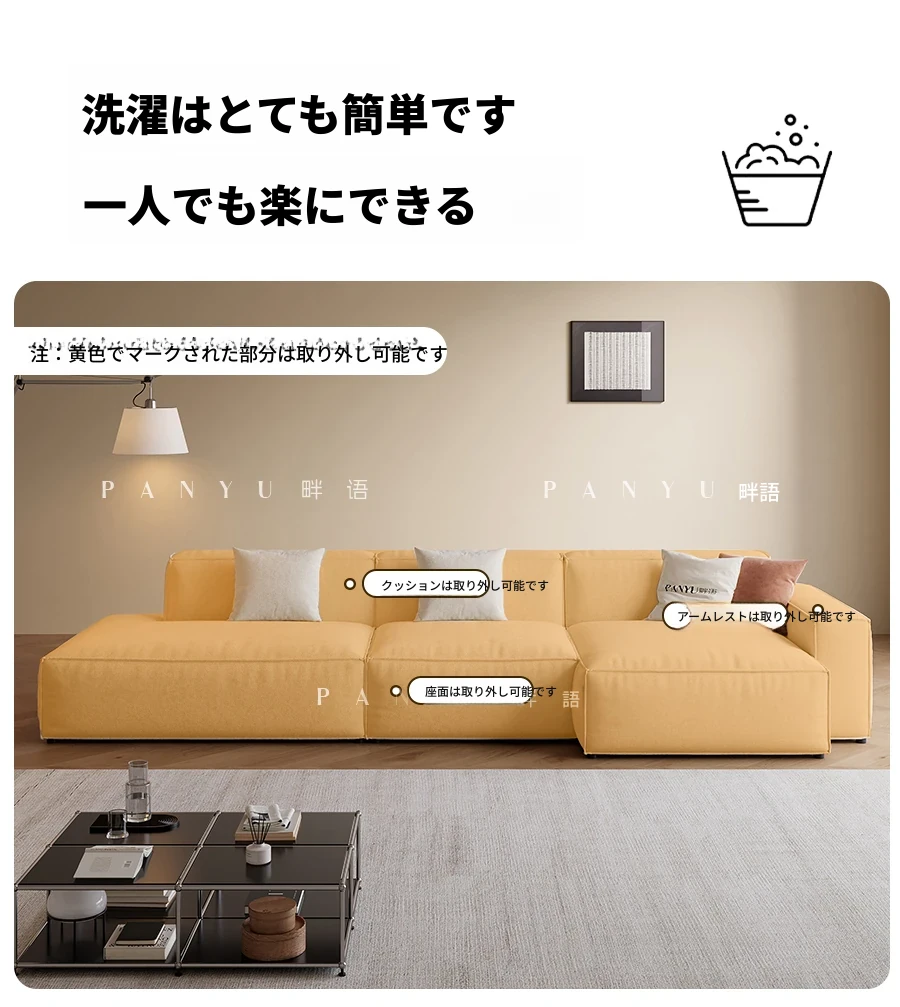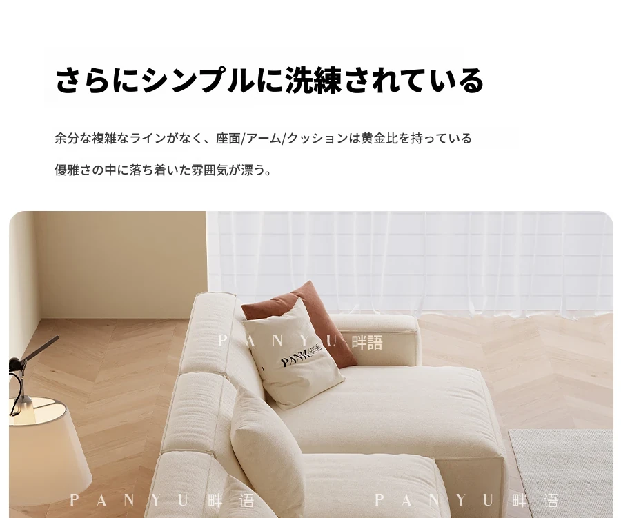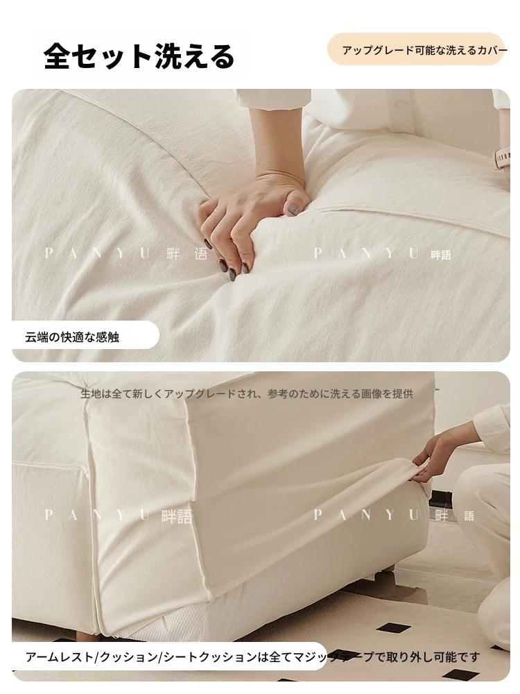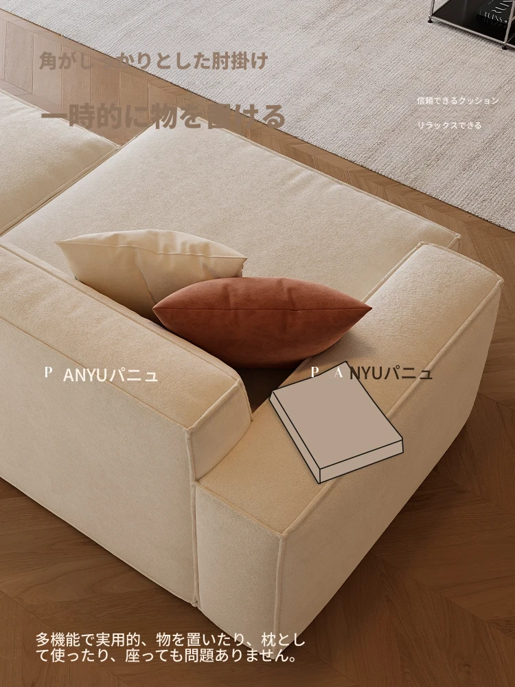 畔語豆腐クッション布製ソファ フランス風クリームホワイト シングルアーム 可洗い取り外し可能 モジュール式デザインで自由自在にレイアウト可能!居心地抜群のリビング空間を実現!