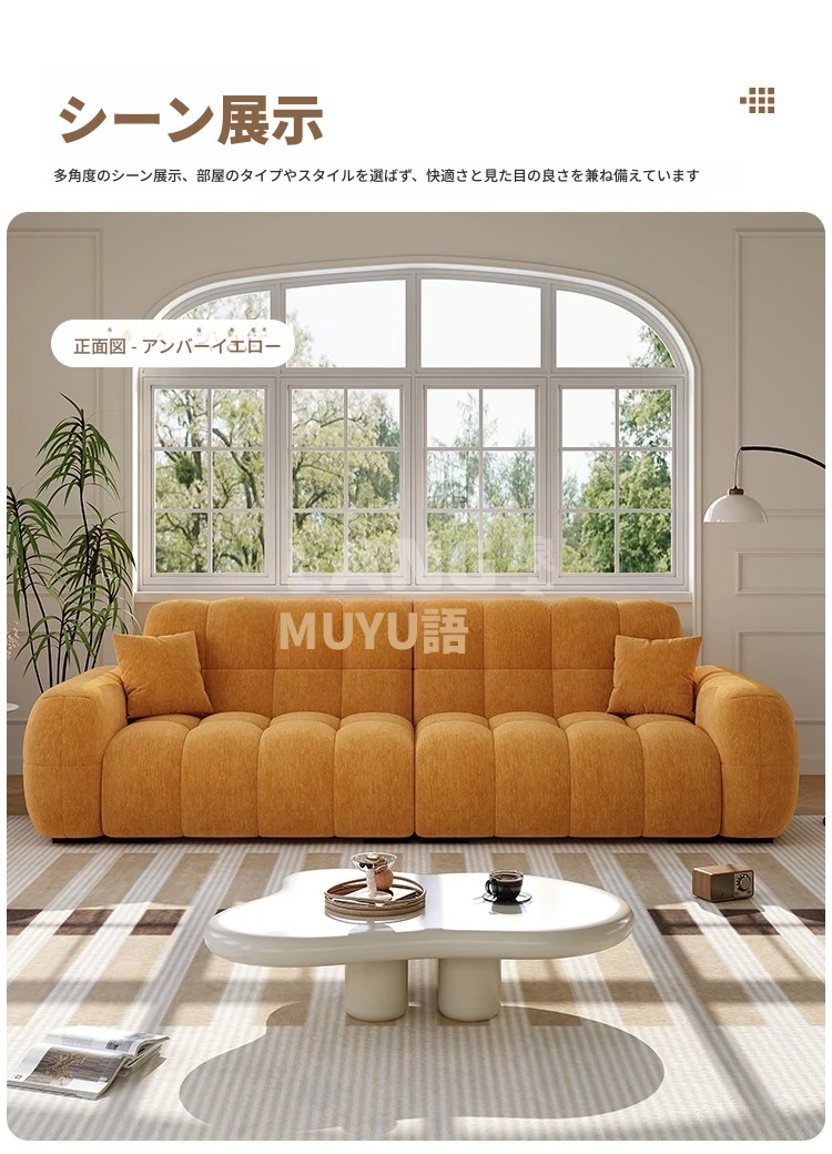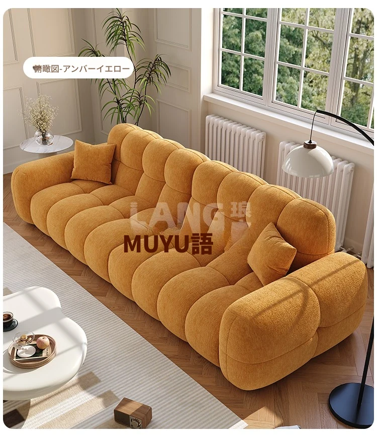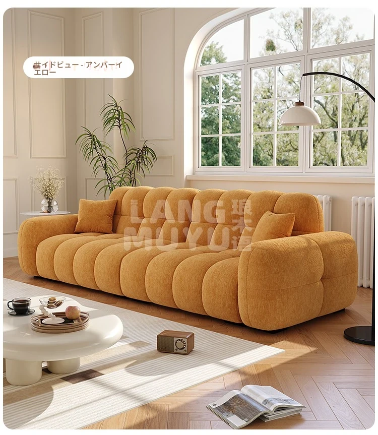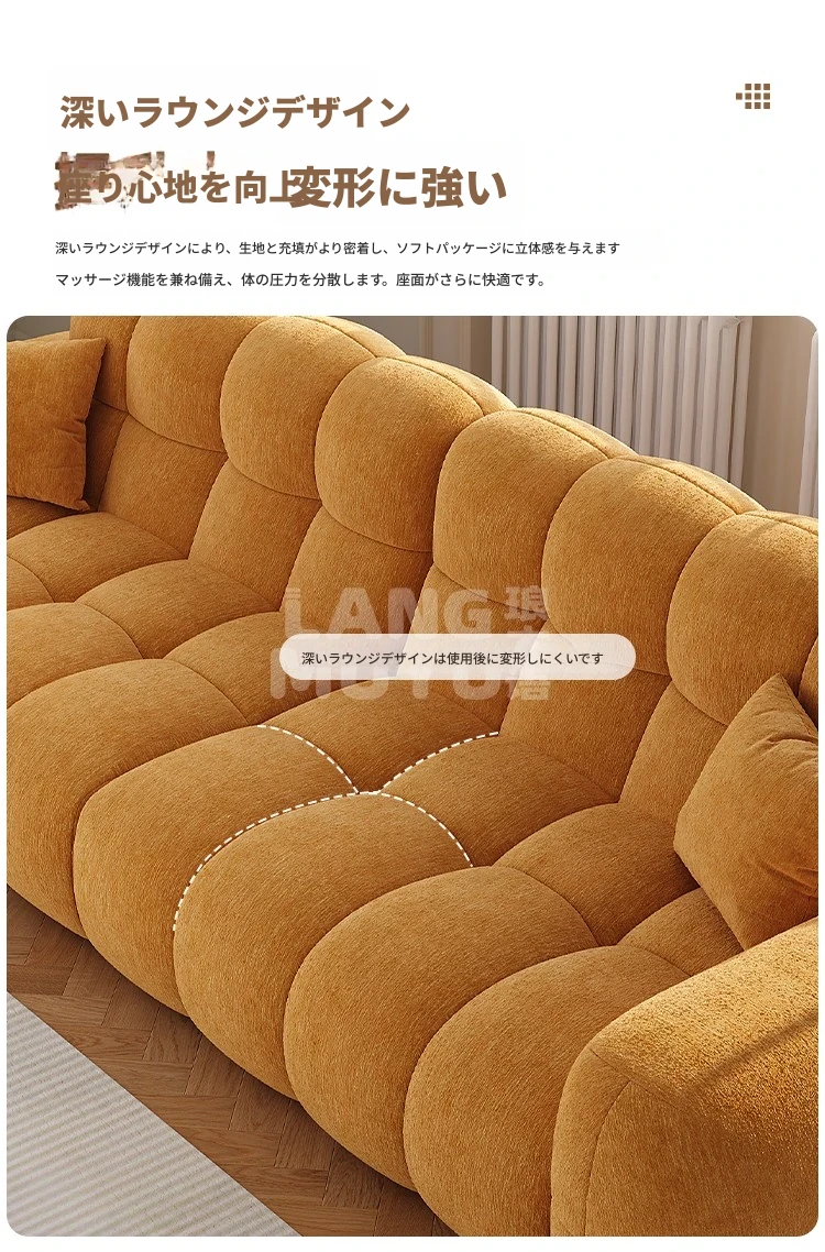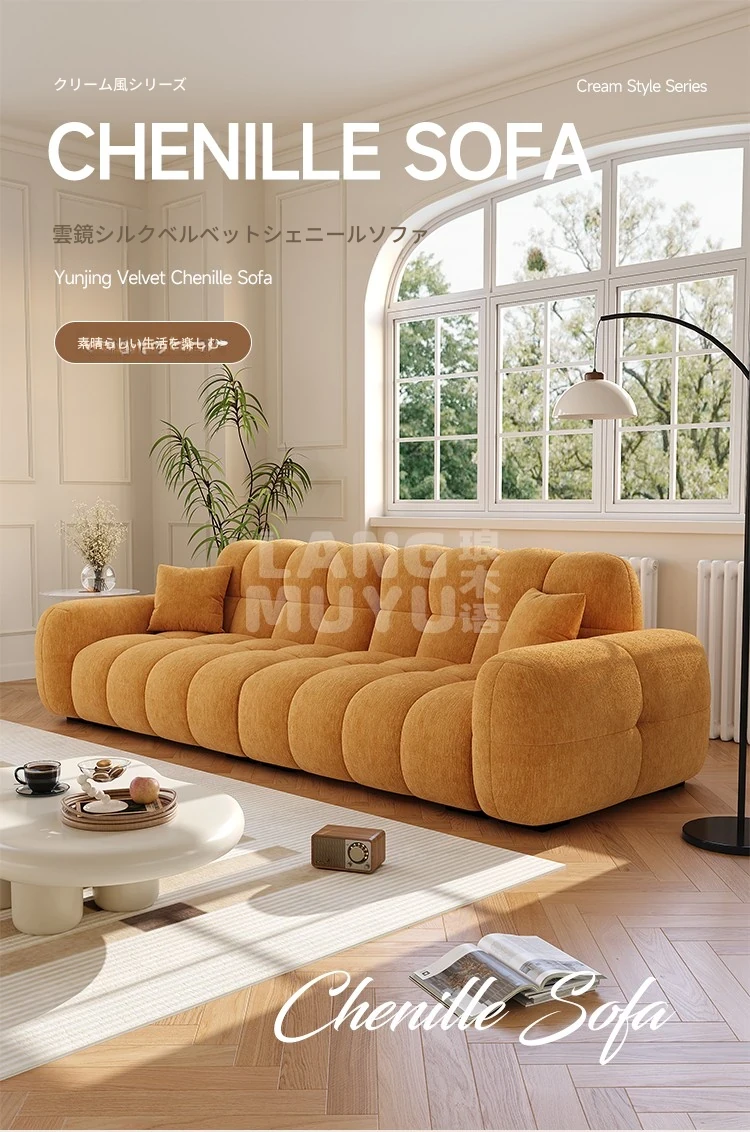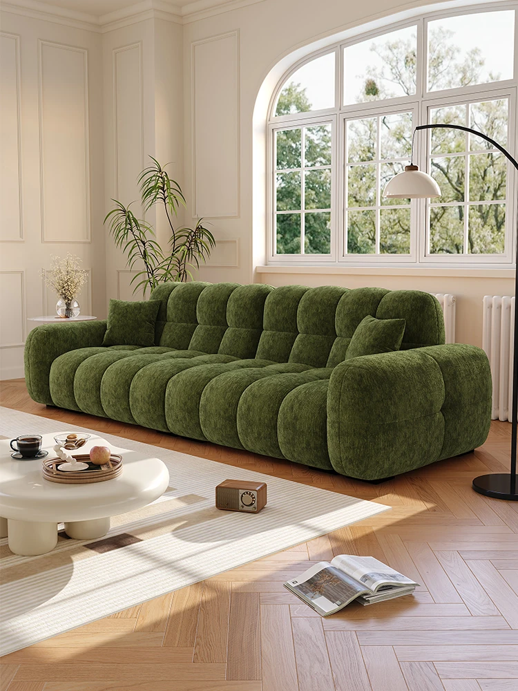フレンチヴィンテージ シュニール ベルベット マシュマロ パフ ソファー リビングルーム用 クリーム風 小型住宅向け グリーン ストレートデザイン ソファー - あなたの空間に優雅さをプラス!
