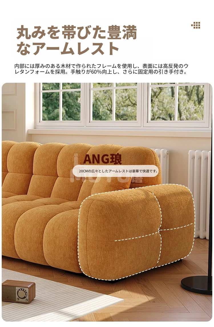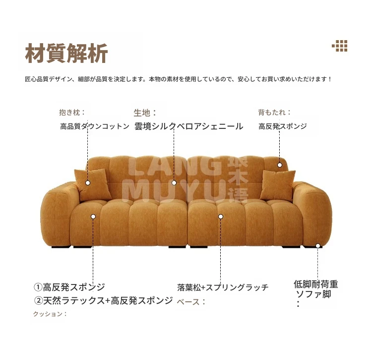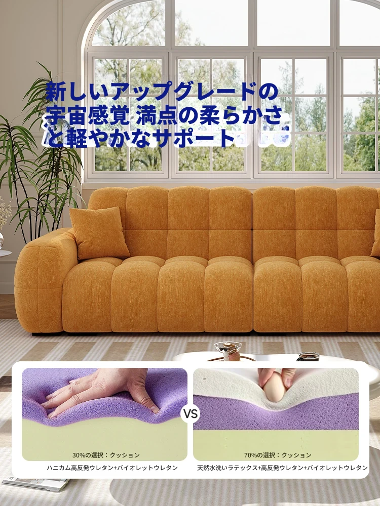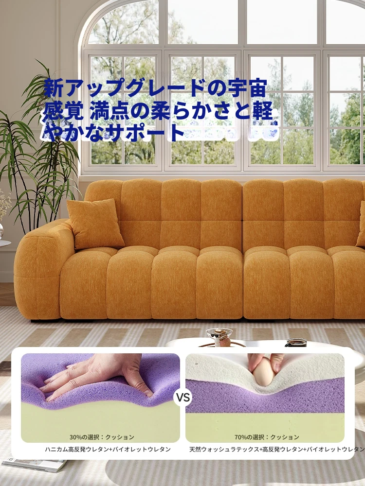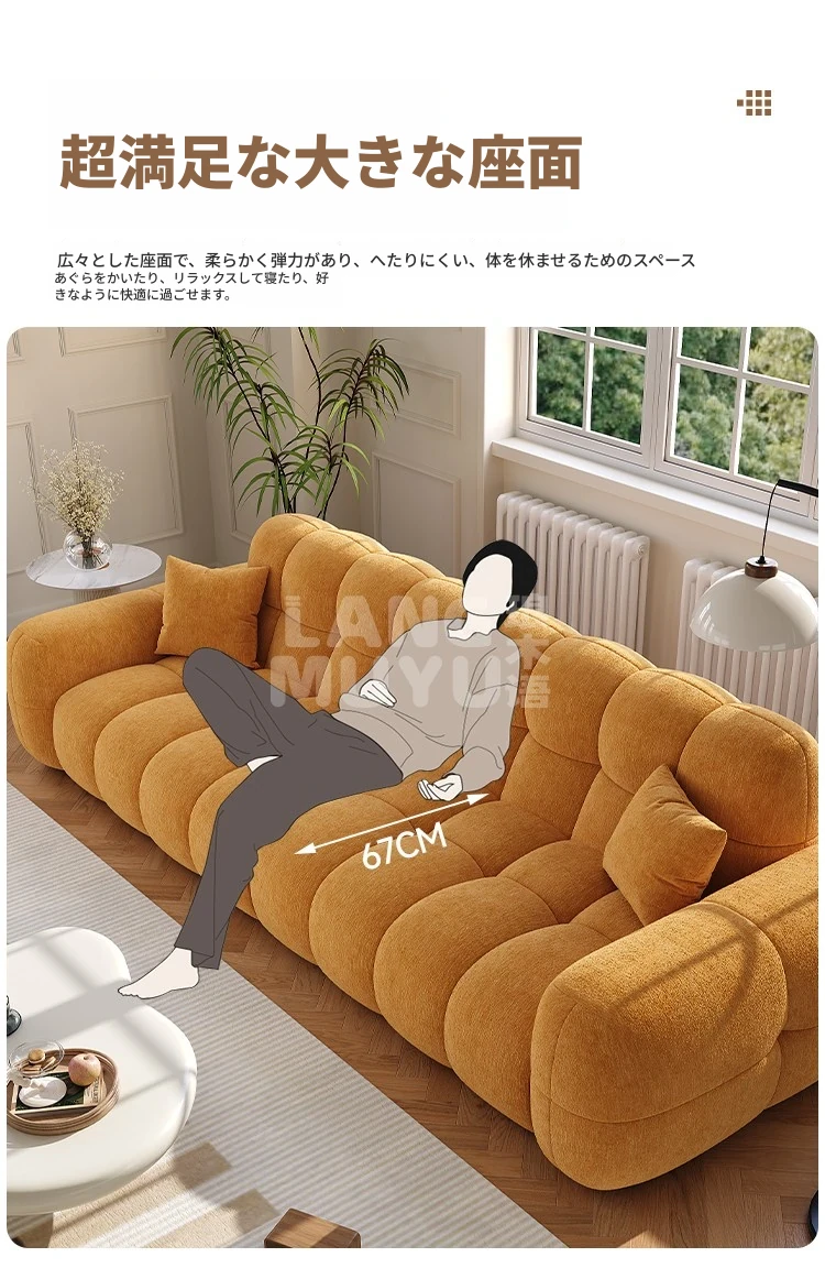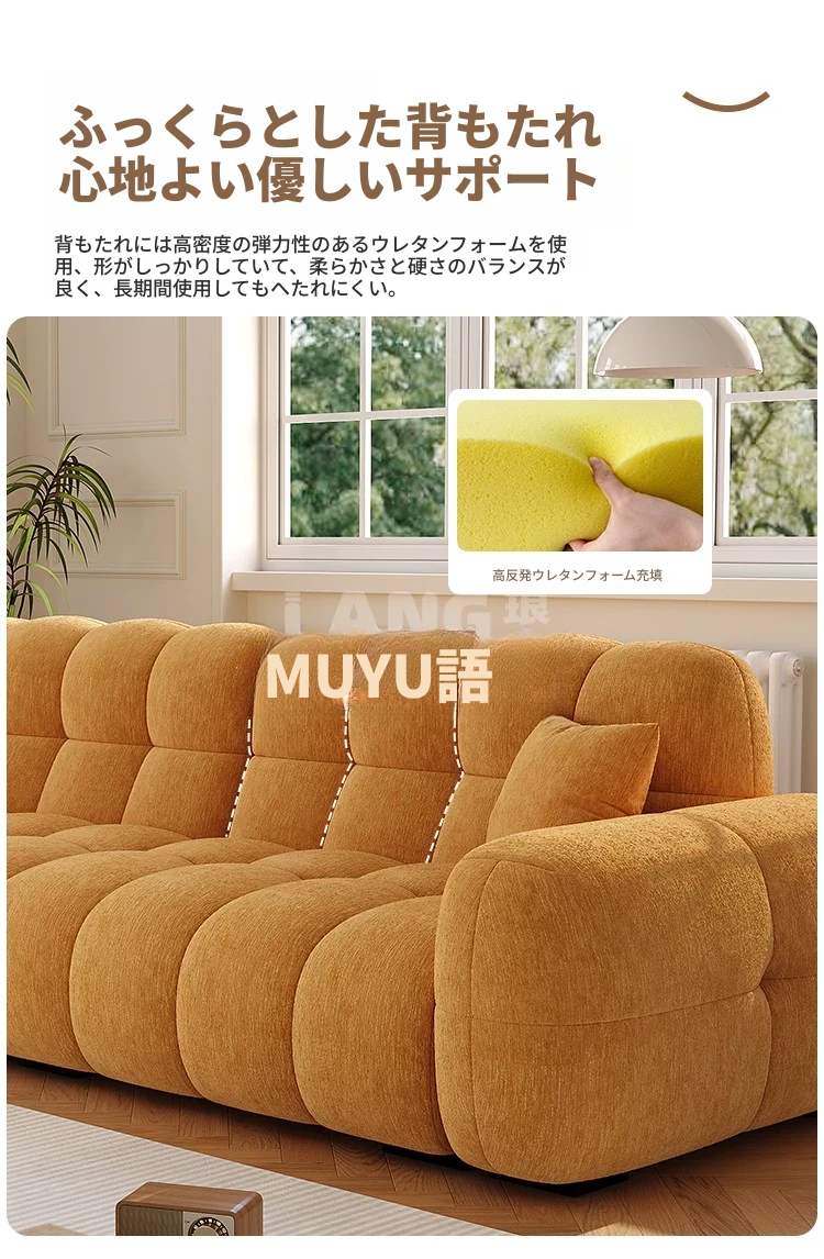 フレンチヴィンテージ シュニール ベルベット マシュマロ パフ ソファー リビングルーム用 クリーム風 小型住宅向け グリーン ストレートデザイン ソファー - あなたの空間に優雅さをプラス!