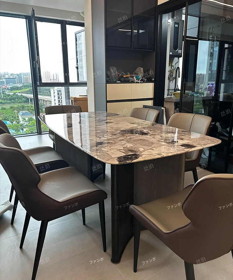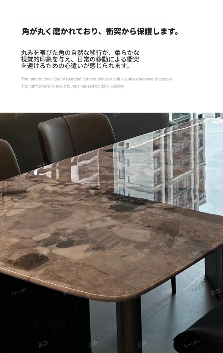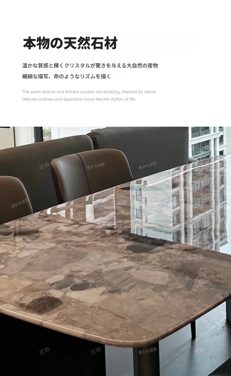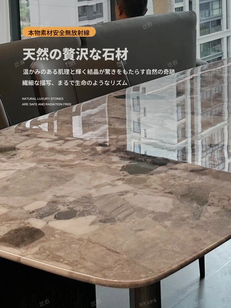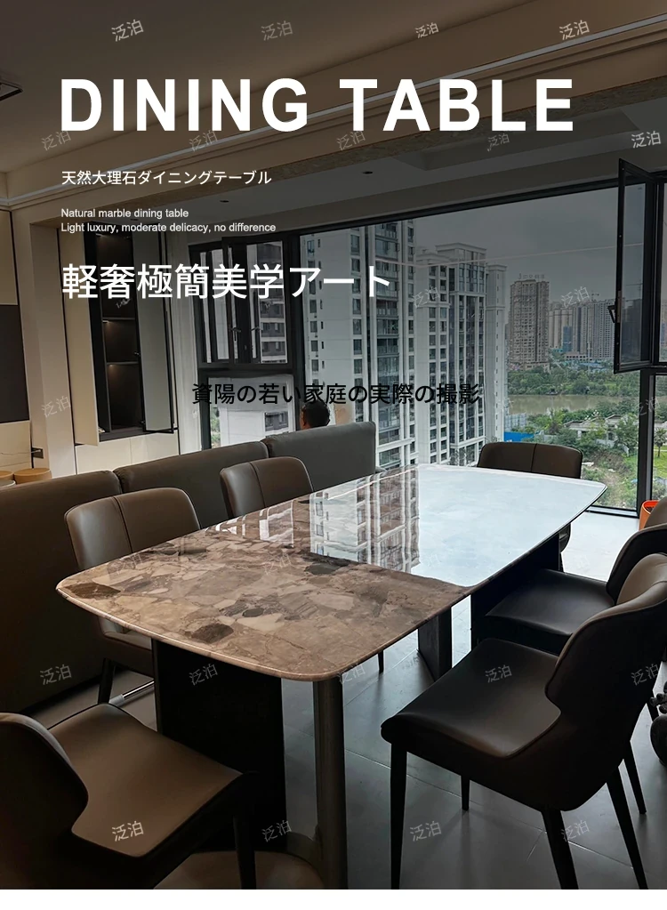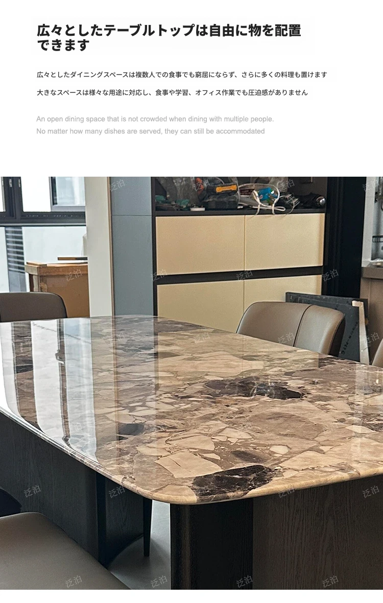 輸入純天然の高級オリーブグレー大理石ダイニングテーブル - イタリアンミニマルデザインの洗練されたダイニングセット。あなたの食卓に贅沢な美しさを添え、心地よい食体験を提供します。