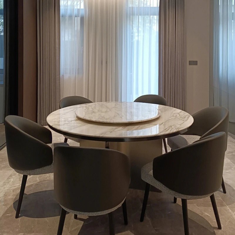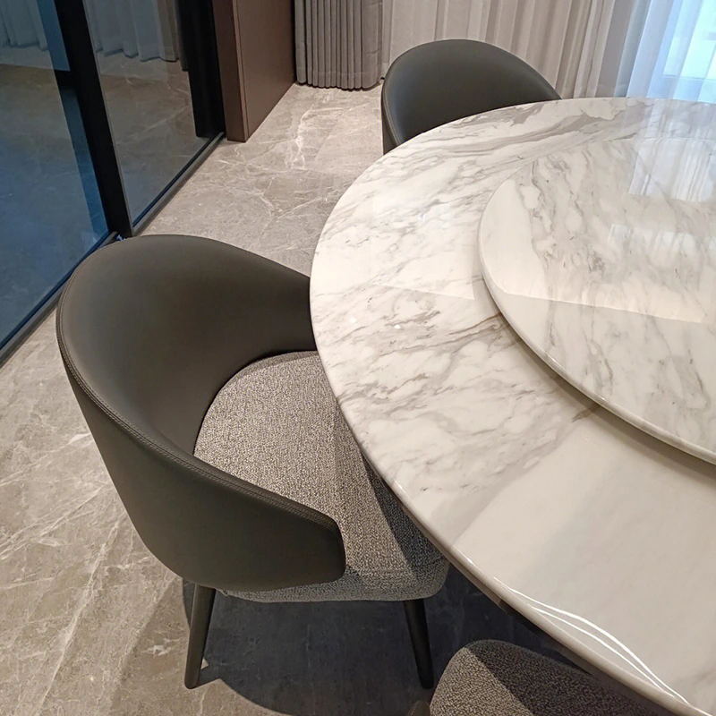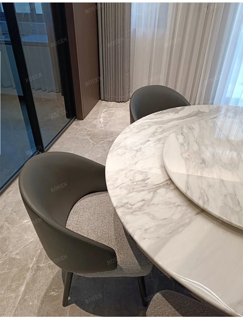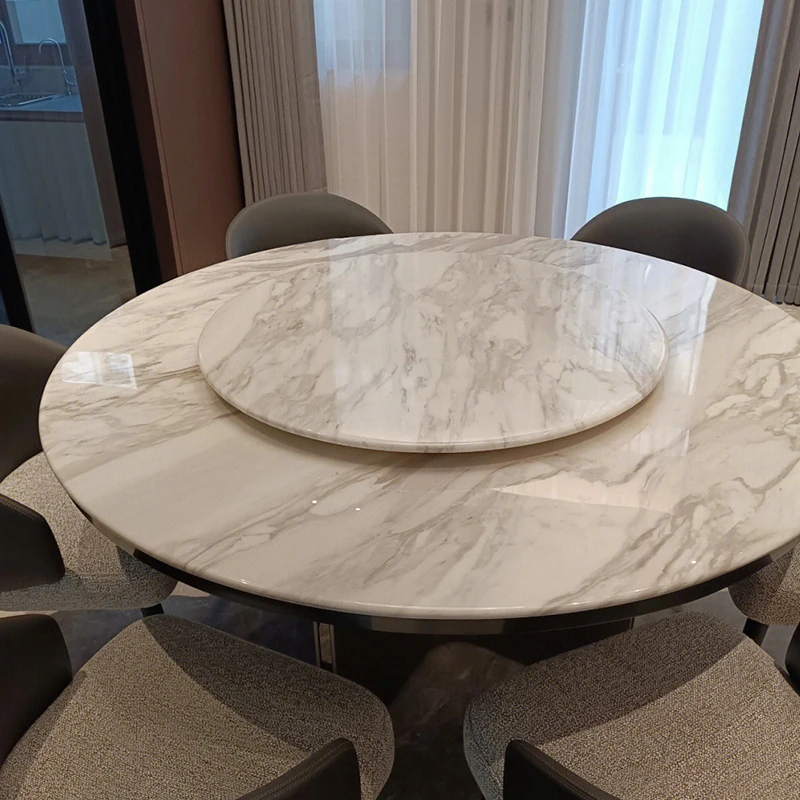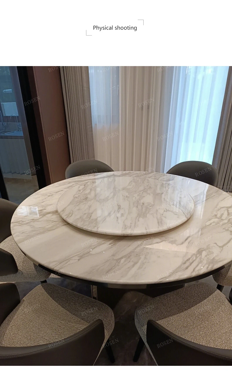 イタリアンラグジュアリー ジャズホワイト 天然大理石ラウンドダイニングテーブル シンプルでモダンなデザイン 大小様々な部屋に最適な円形テーブル