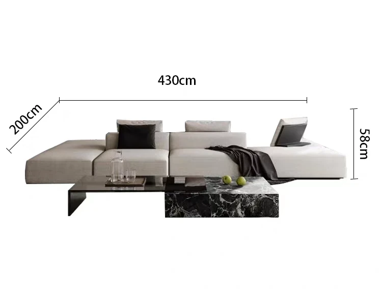 イタリアンミニマルデザインの布製ソファ|デザイナーによるダブルサイドウエストサイドモジュラーソファ|本革使用で高級感アップ!快適な座り心地とスタイリッシュな空間作りに最適です。
