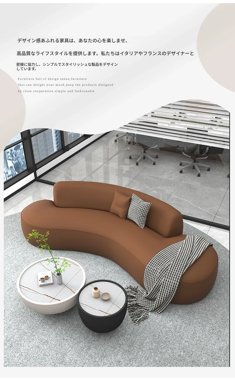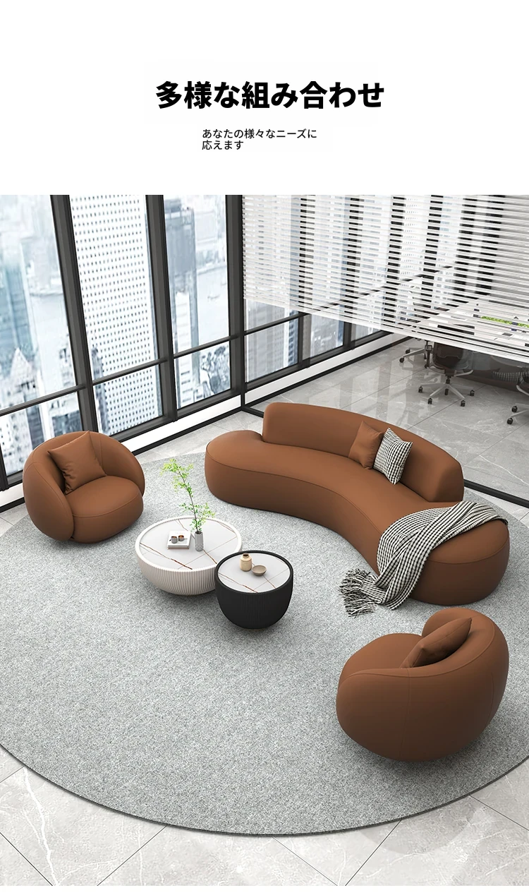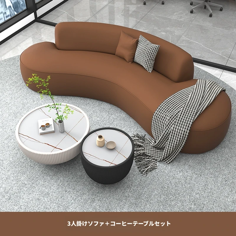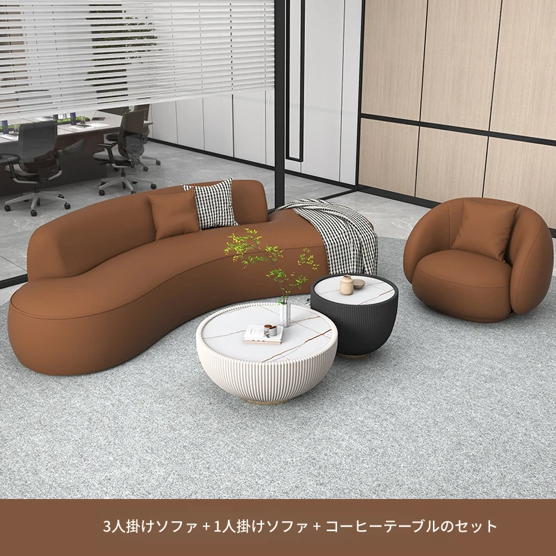 イタリアンスタイルのオフィス用リラックスアーチソファ&テーブルセット - シンプルでモダンなデザイン、ホテルロビーや休憩エリアに最適な会議・談話スペースを演出します!