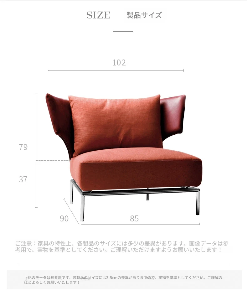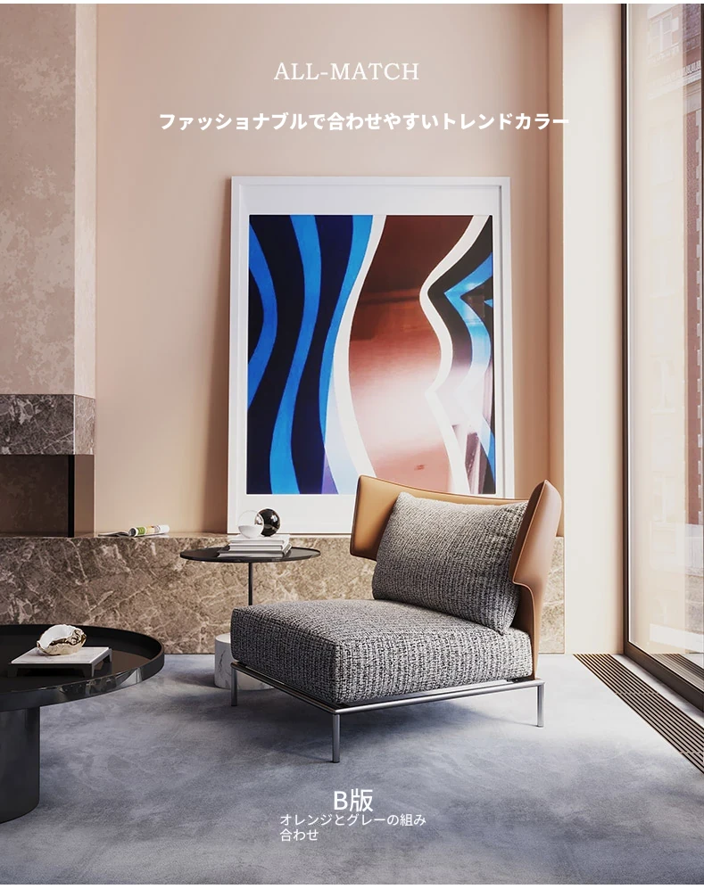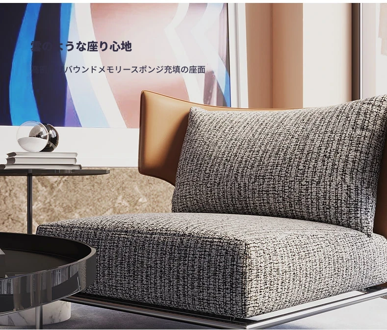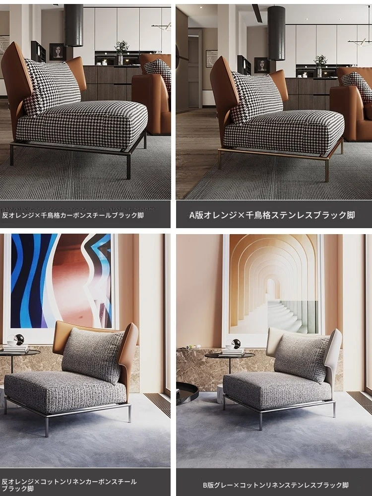 オレンジの千鳥格子ソファチェア(炭素鋼製の椅子脚)