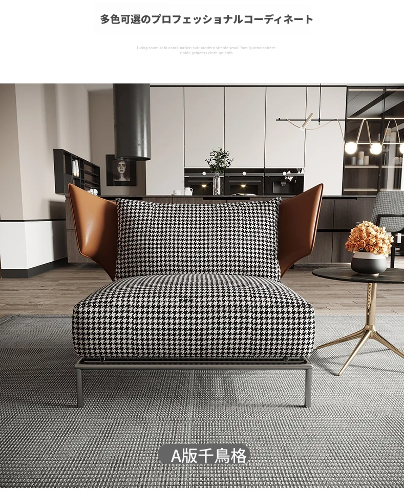 イタリアンスタイルのシンプルな人を癒すチェア|モダンで洗練された千鳥格子デザインのリラックスソファ|リビングや寝室にぴったりのデザイナー製品!
