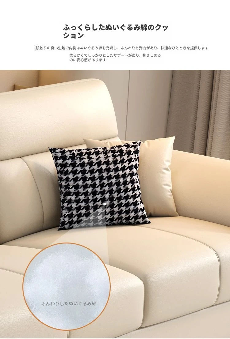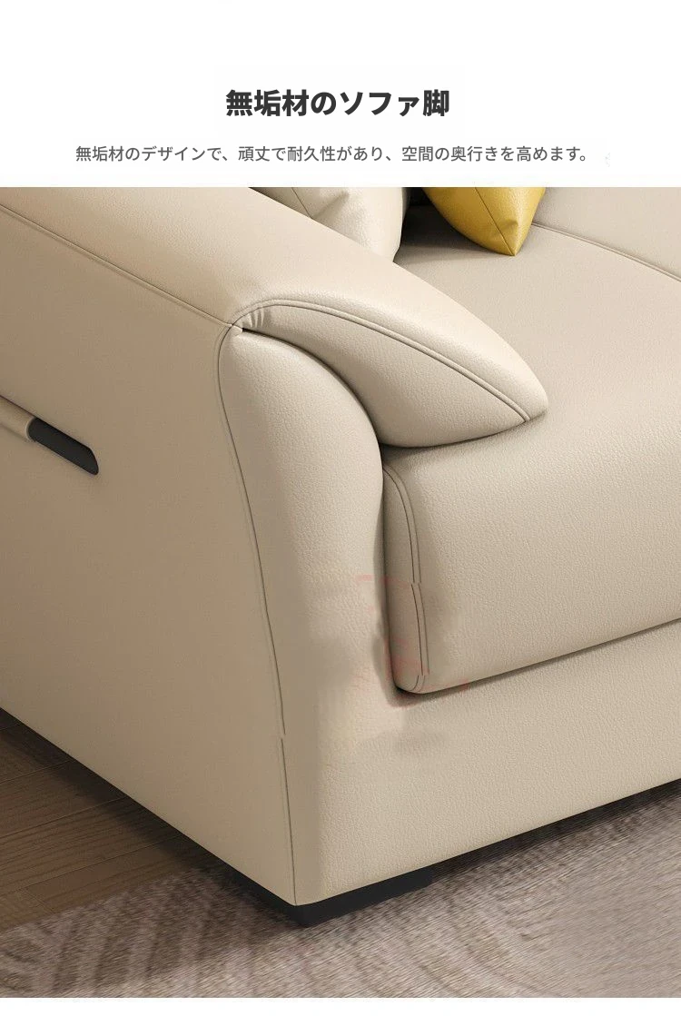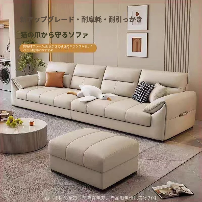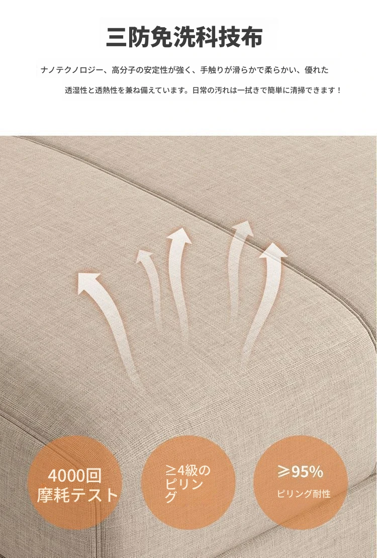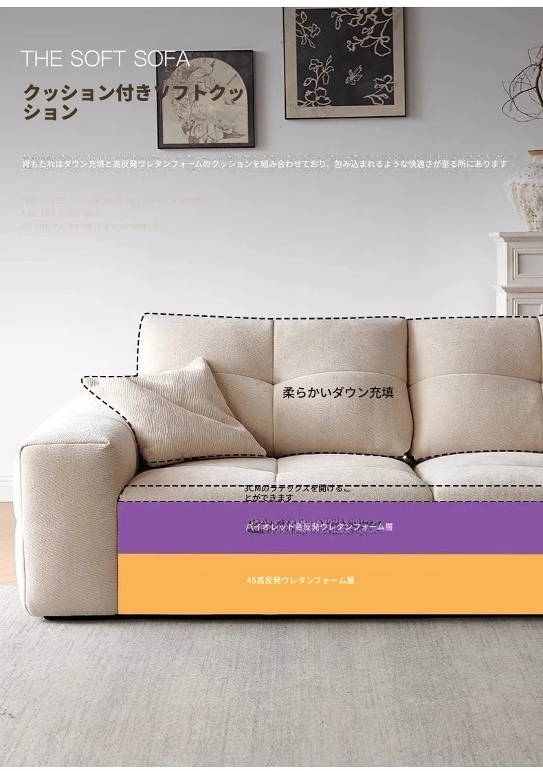 新作!和風天然木製リビング用軽奢ソファ - キャットグラブ布製、クリームカラーの雲デザイン、モダンでシンプルなスタイル!おしゃれな空間を演出します。