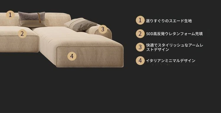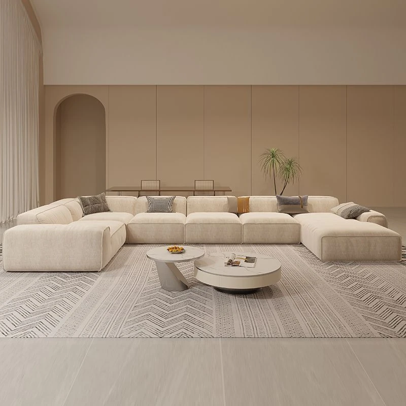 大黒牛U型ソファー 大型コンビネーション サンドブラスト生地 使用のおしゃれなコーナーソファー 大型リビングに最適なモダンなデザインで、居心地の良い空間を演出します!