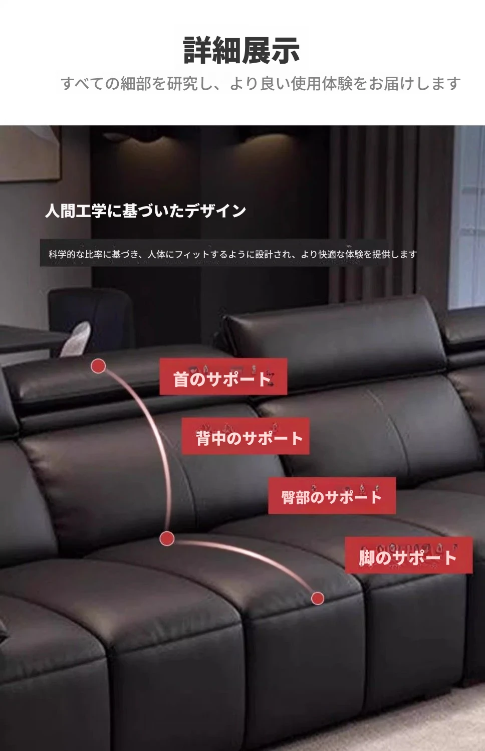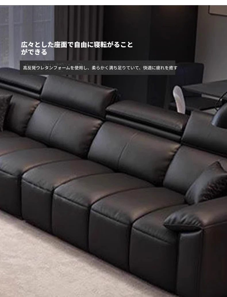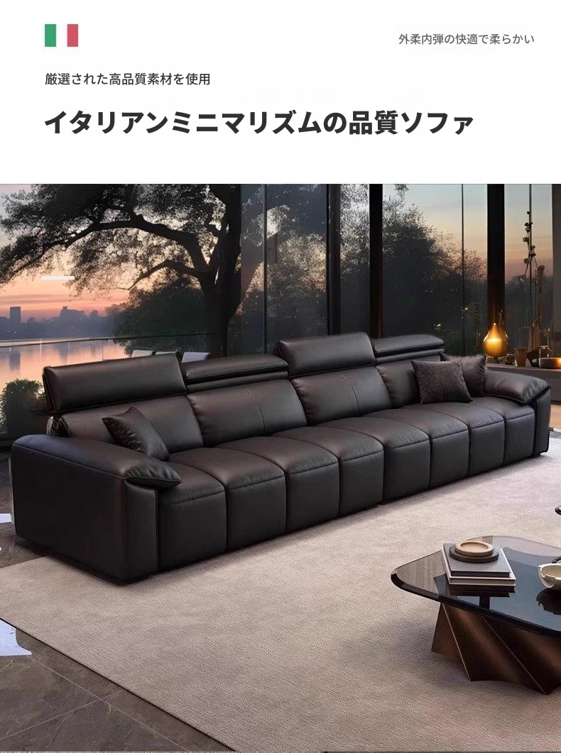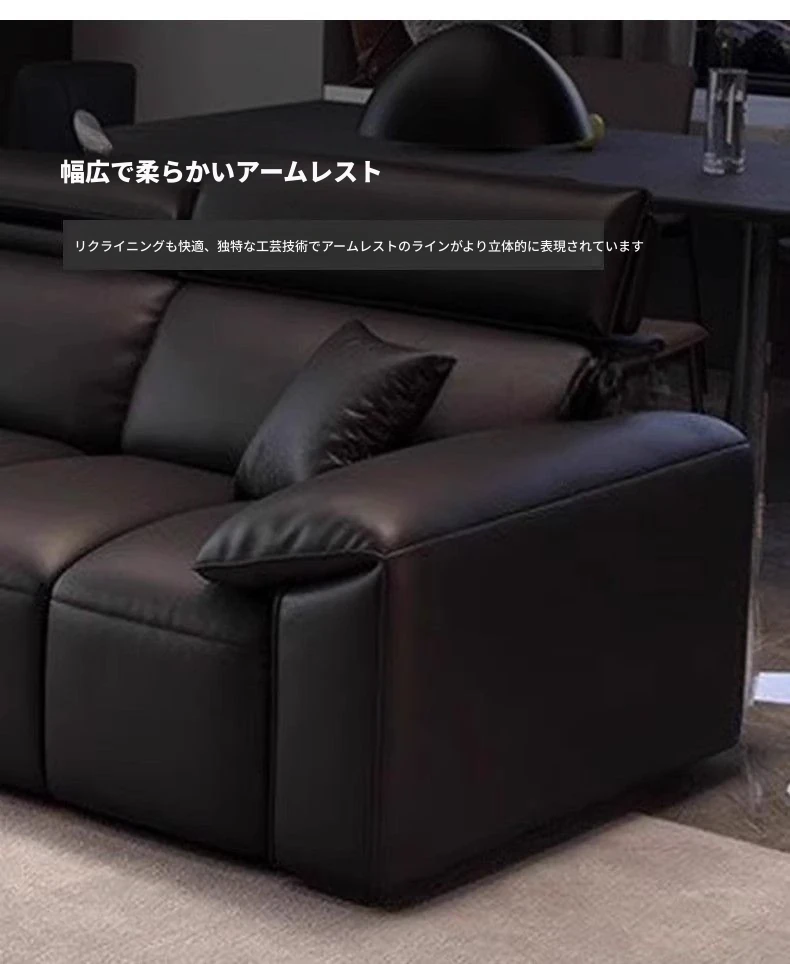 高級感溢れる本革使用!小黄牛皮のピアノキーソファー - リビングルームにぴったりなシンプル&エレガントなデザイン。大小様々なお部屋にフィットし、軽やかな贅沢を実現します。