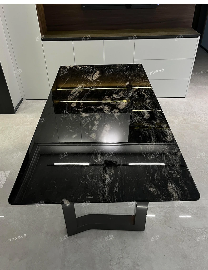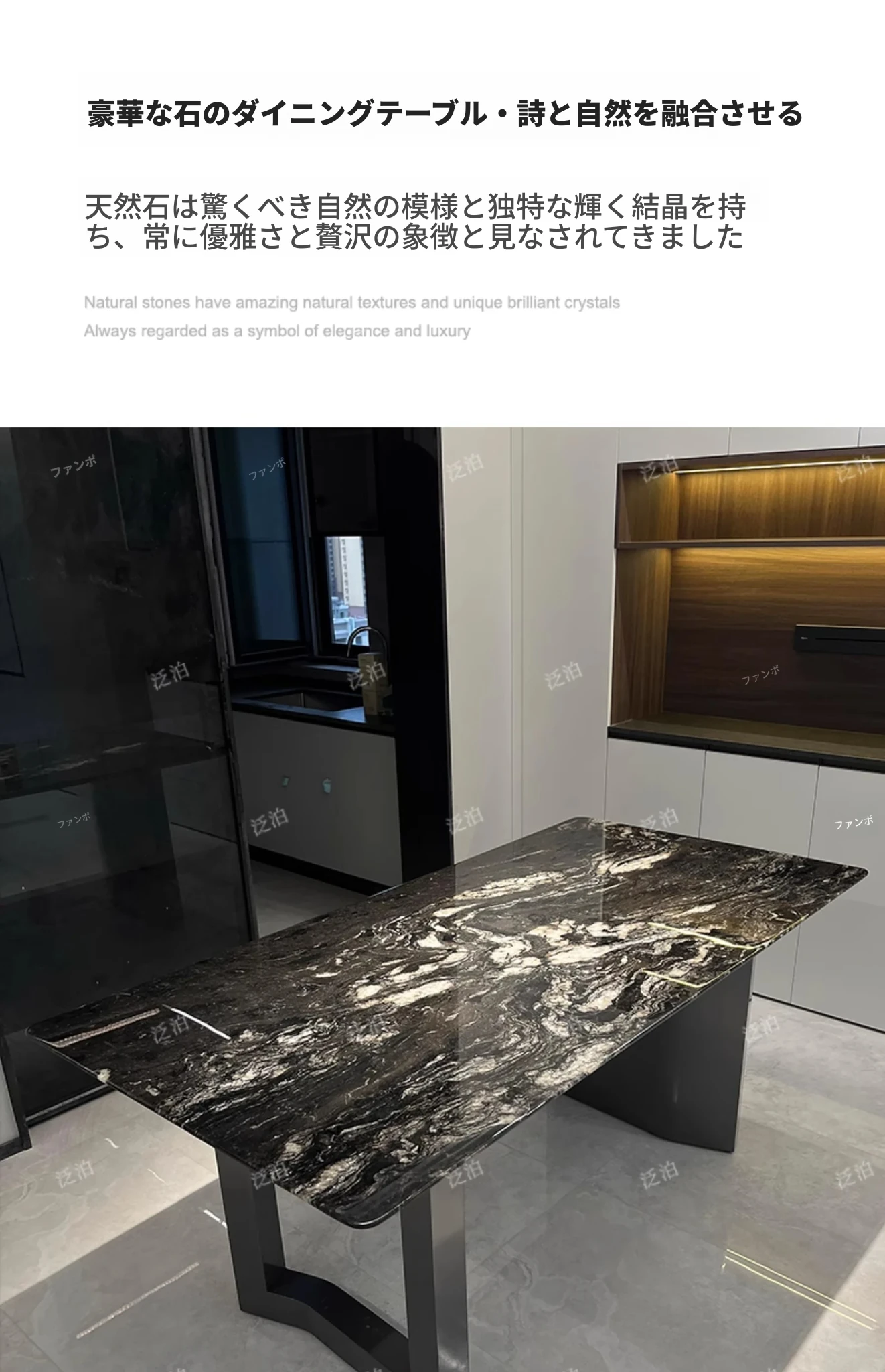天然輸入大理石のデザイナーモダン食卓セット|高級感漂うイタリアンスタイルの長方形テーブル|別荘にぴったりな豪華な石製ダイニングテーブル|家族や友人との特別なひとときを演出します。