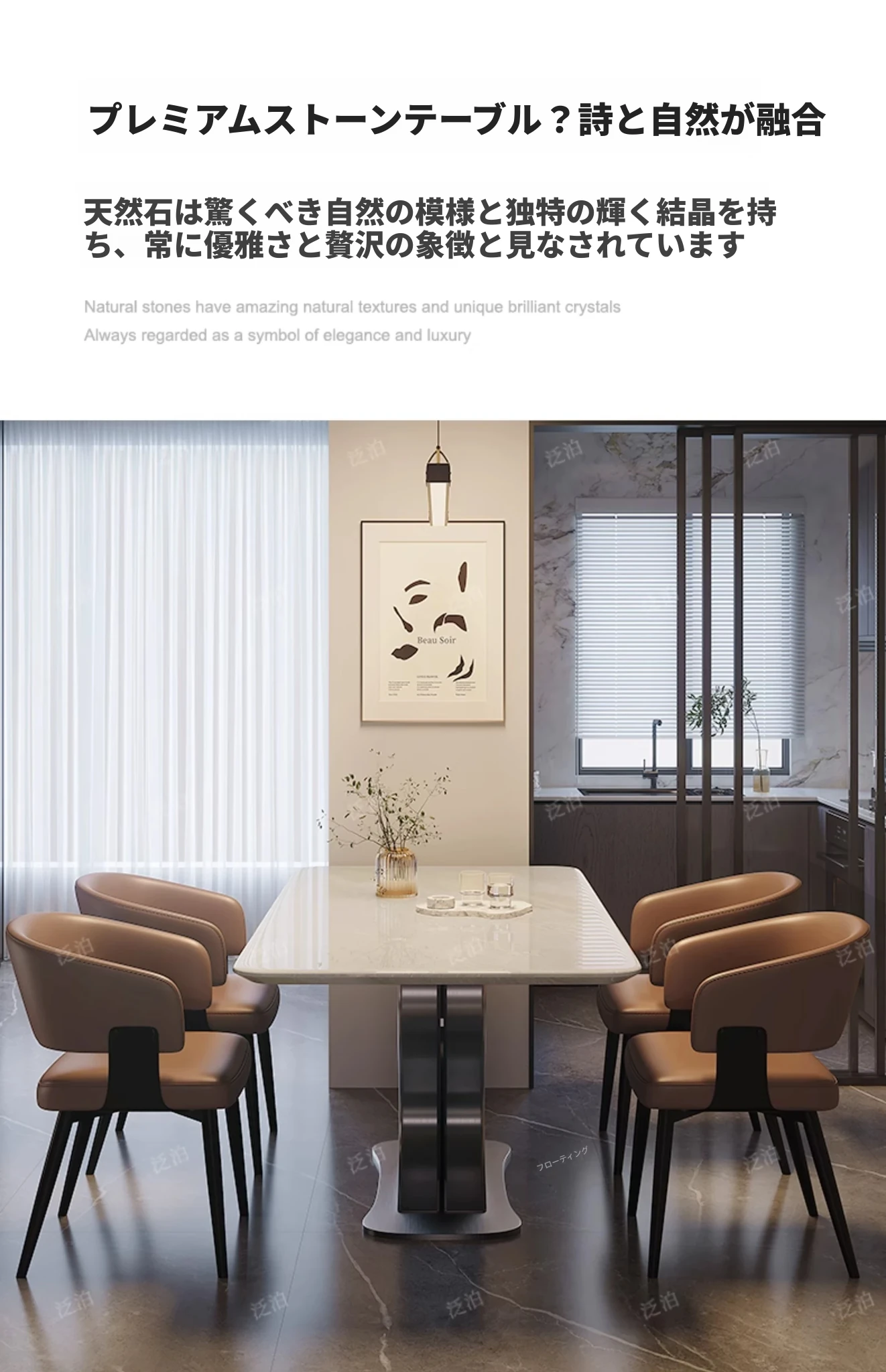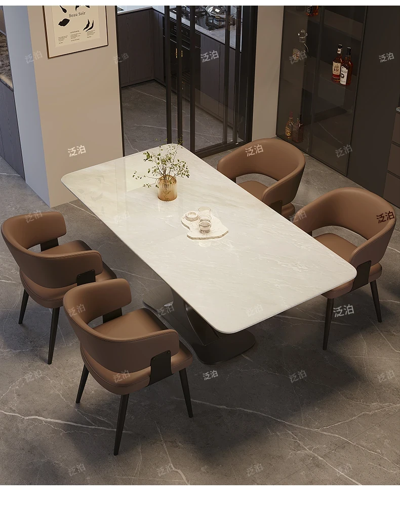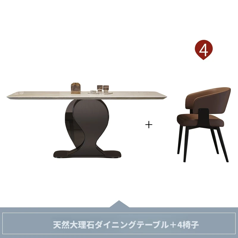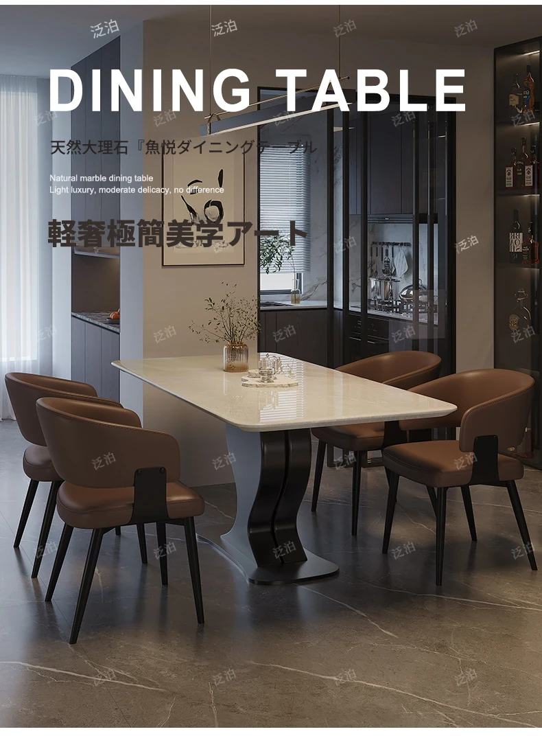 Luxury Natural Marble Dining Table Set - Modern Italian Minimalist Design with High-End Carbon Steel Chairs for a Chic Home Dining Experience