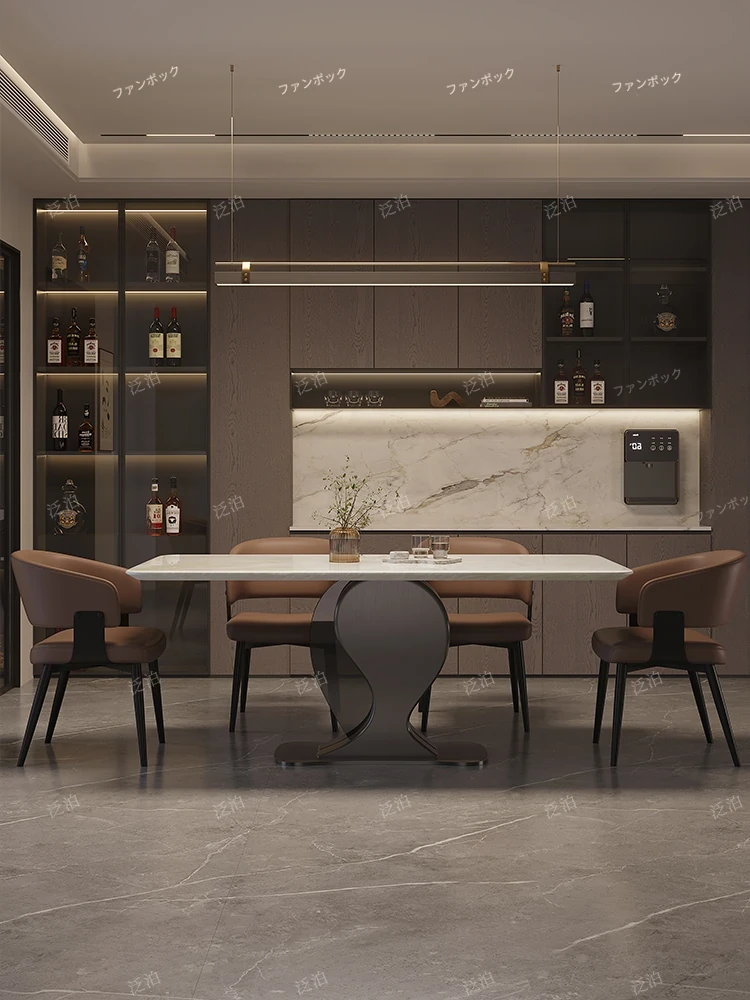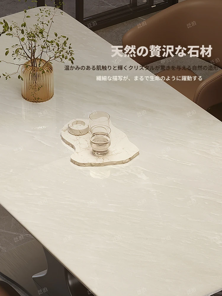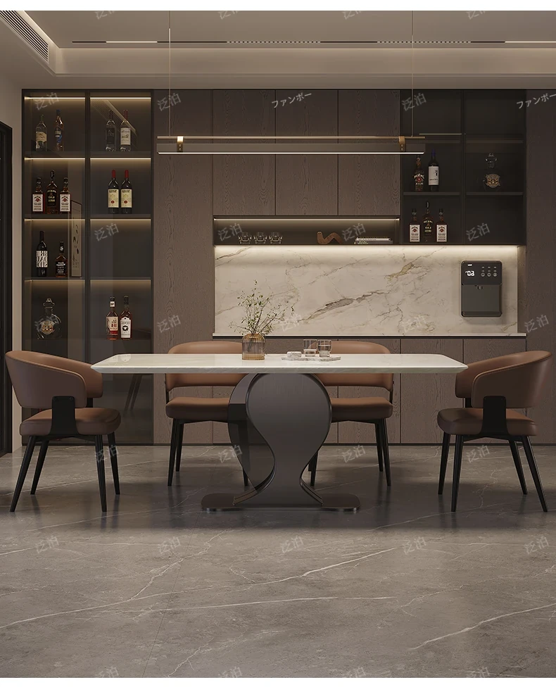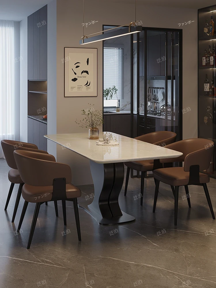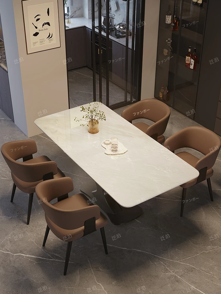 Luxury Natural Marble Dining Table Set - Modern Italian Minimalist Design with High-End Carbon Steel Chairs for a Chic Home Dining Experience