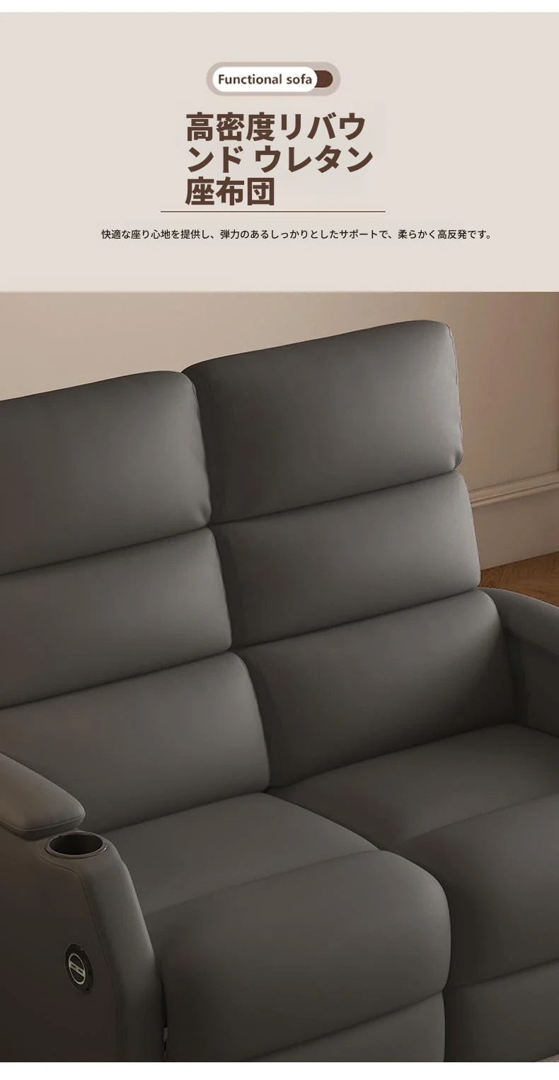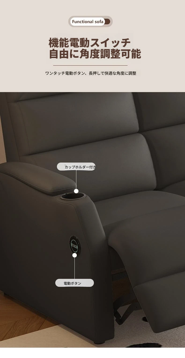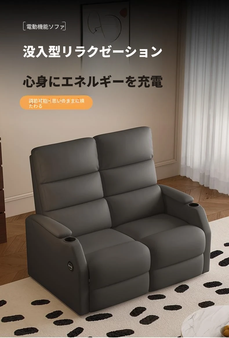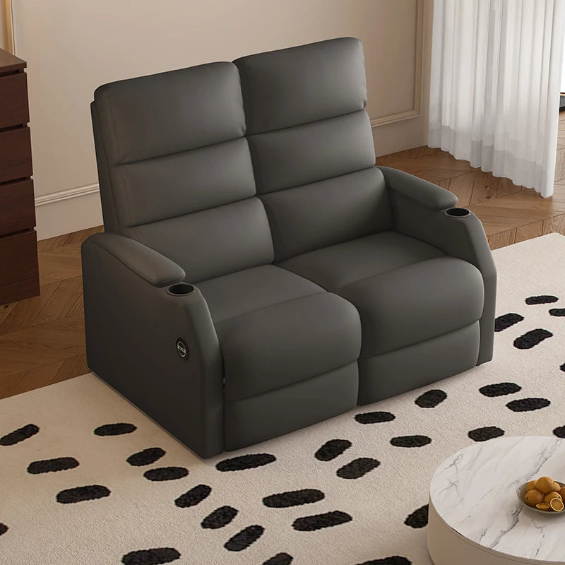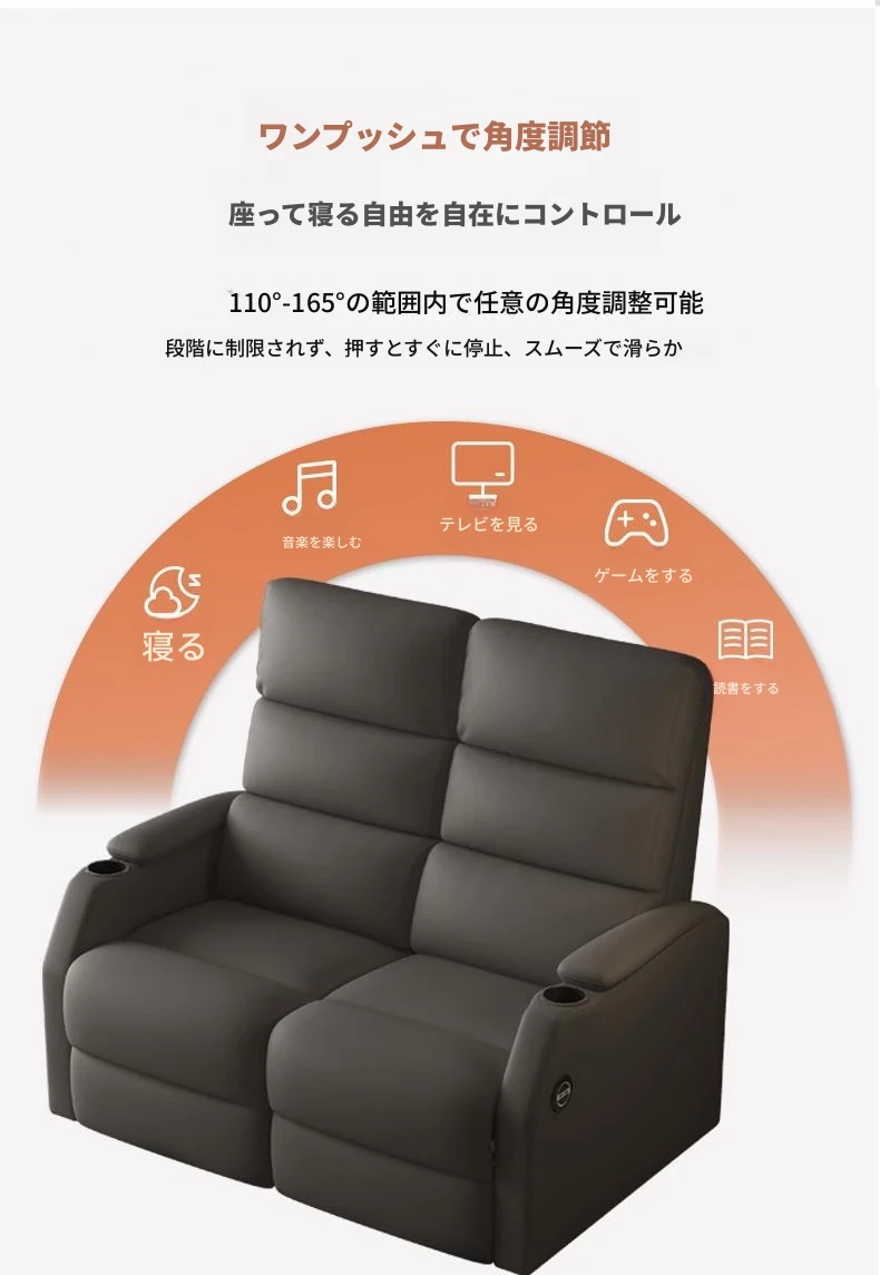 ミニ電動リクライニングソファ - リビングや寝室に最適!1.2メートルの本革製、機能的でトレンディなデザイン、狭いスペースにもぴったりのダブル3人掛けソファ。快適なひとときをお楽しみください!