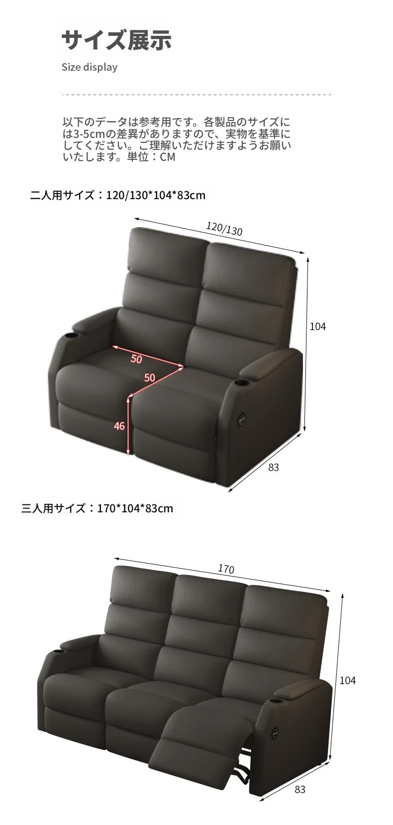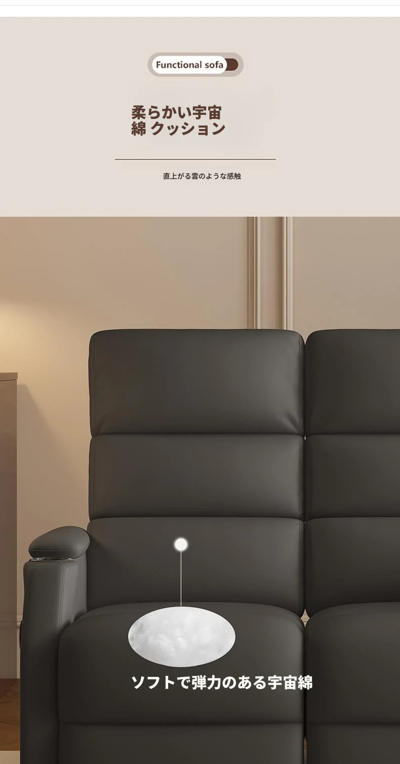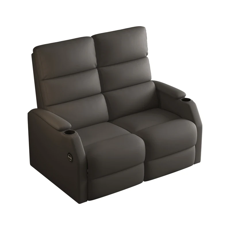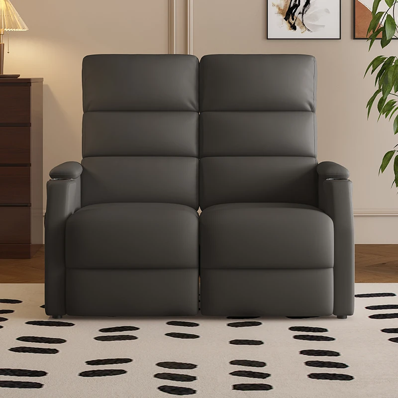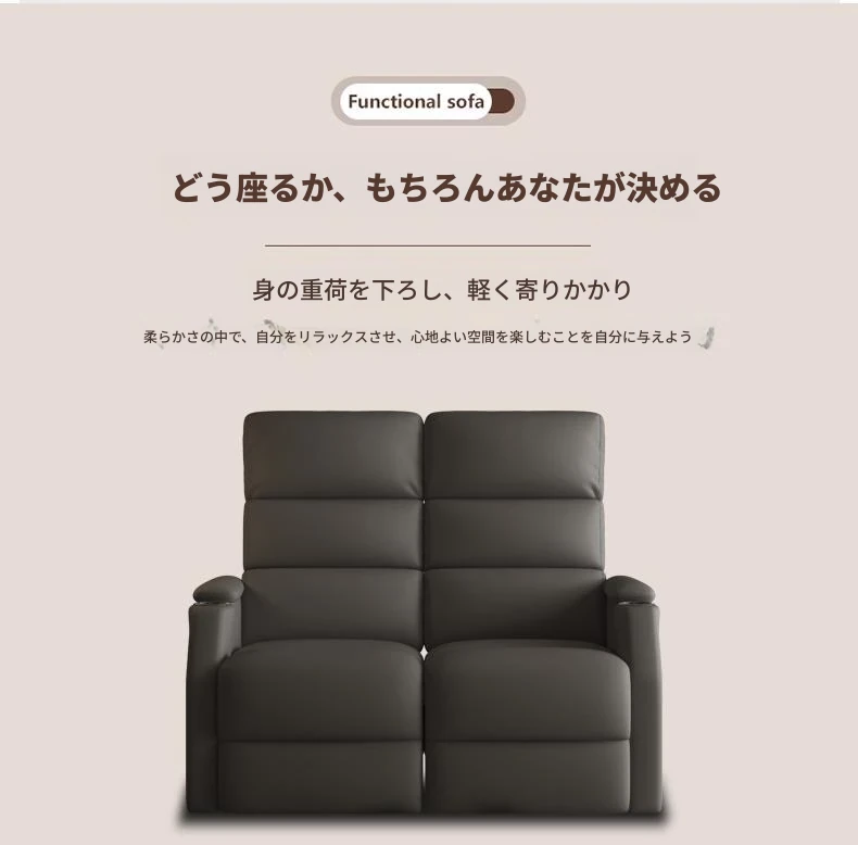 ミニ電動リクライニングソファ - リビングや寝室に最適!1.2メートルの本革製、機能的でトレンディなデザイン、狭いスペースにもぴったりのダブル3人掛けソファ。快適なひとときをお楽しみください!