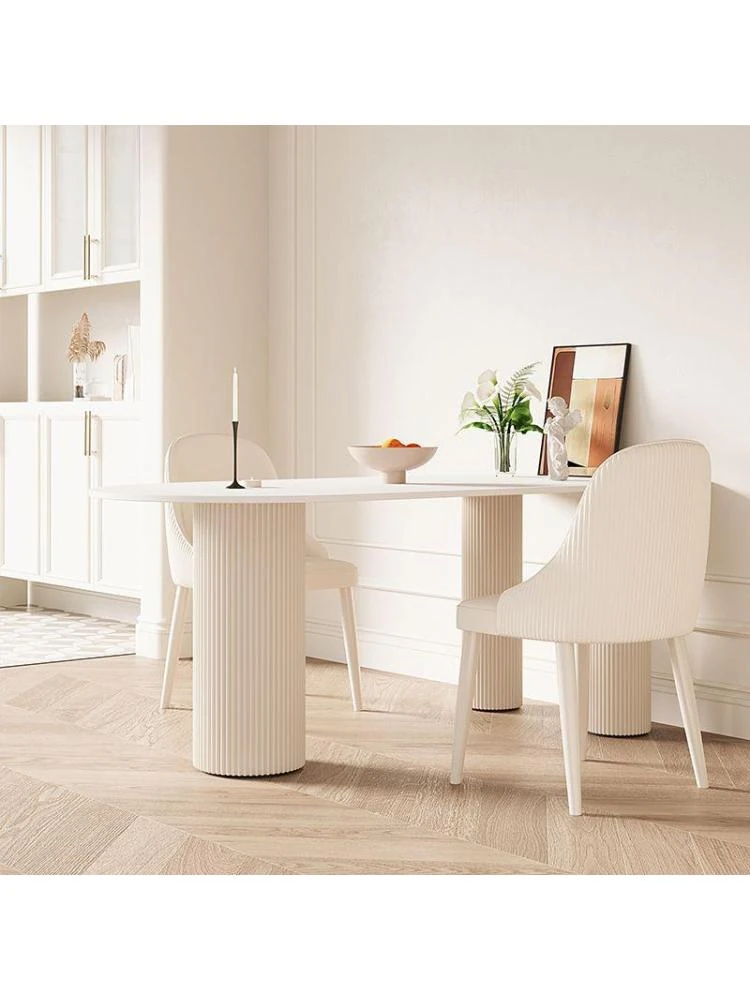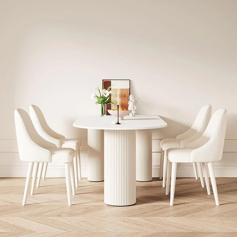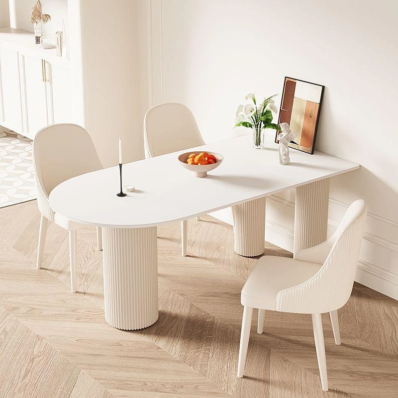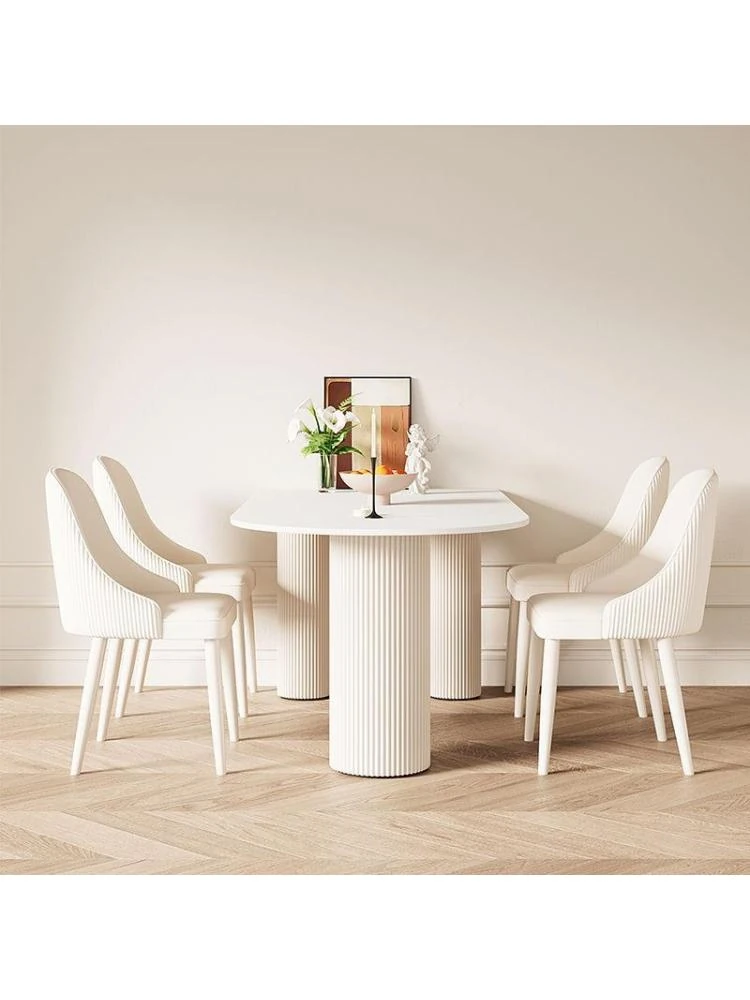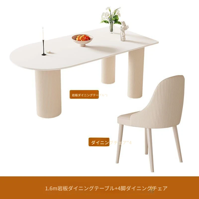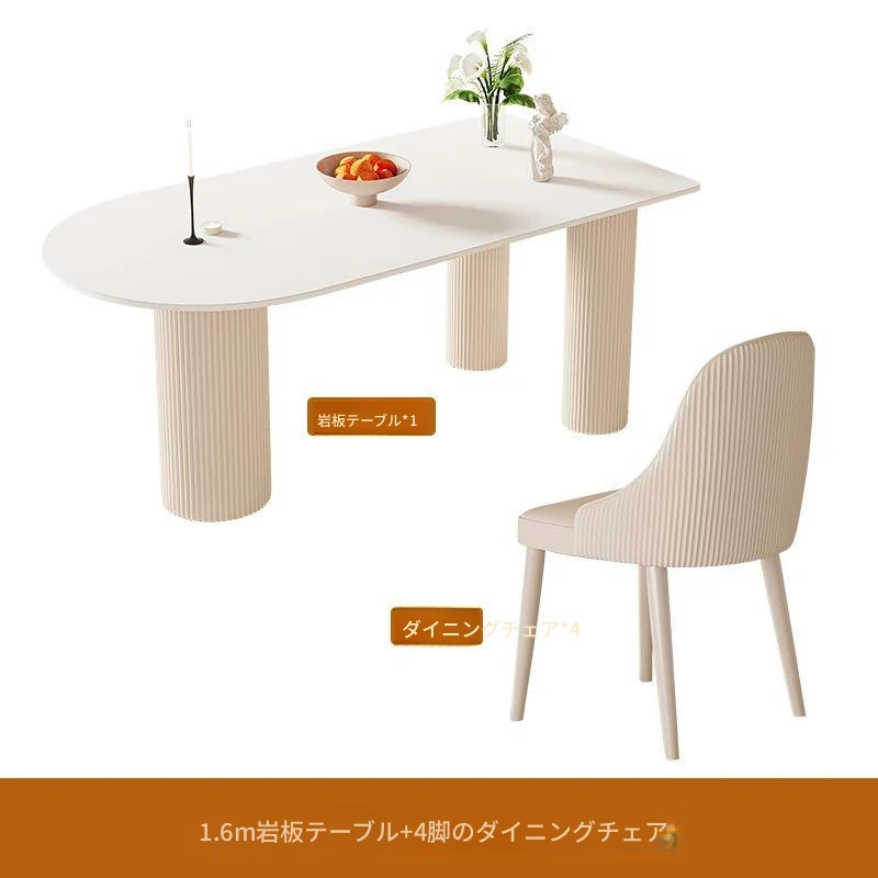 モダンでシンプルなデザインのアイランドダイニングテーブルセット!小さなスペースにもぴったりな軽やかなクリーム風の異形テーブルと椅子の組み合わせで、あなたの食卓をスタイリッシュに演出します。