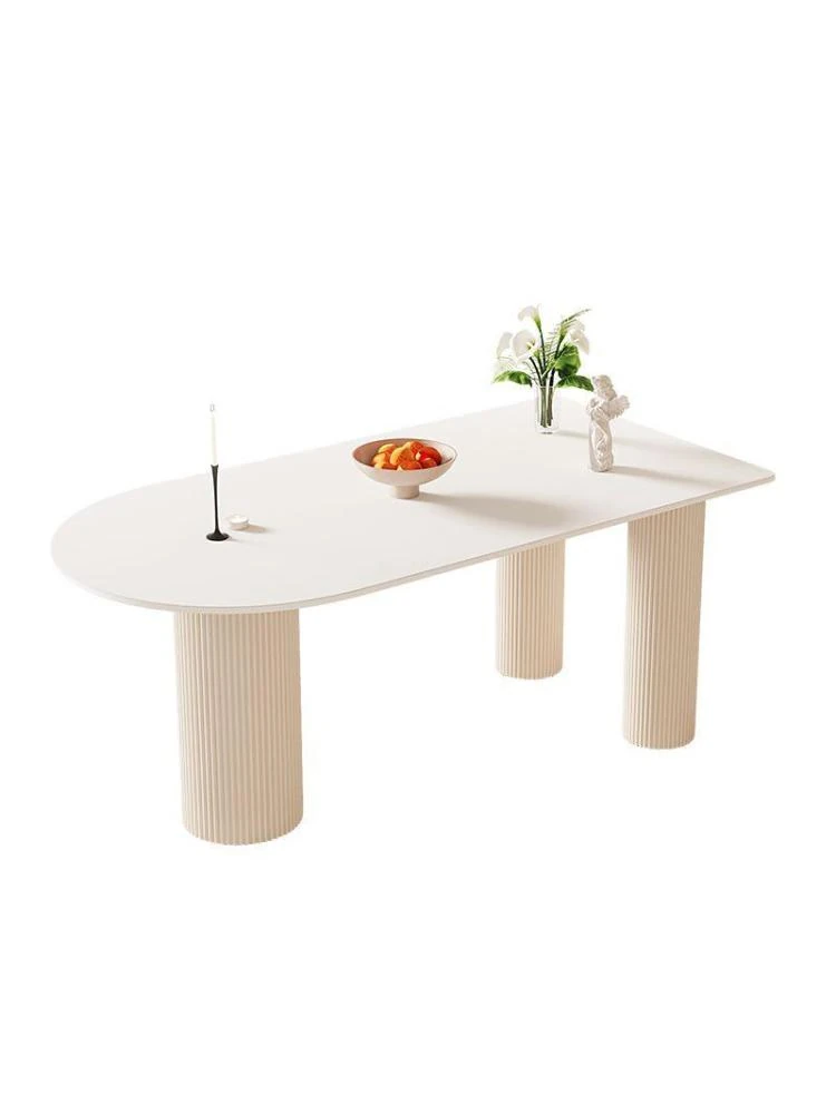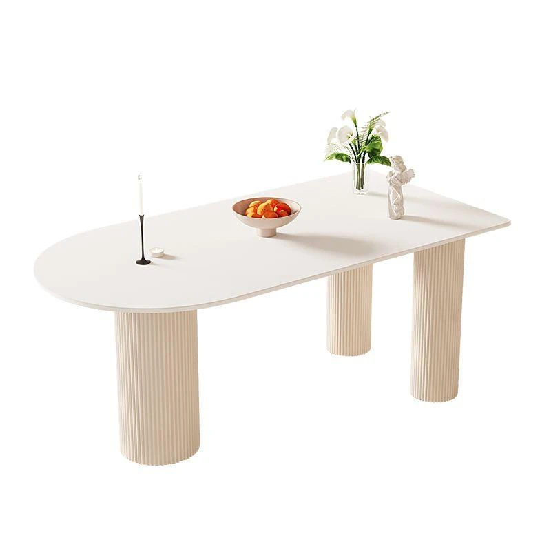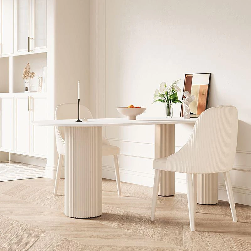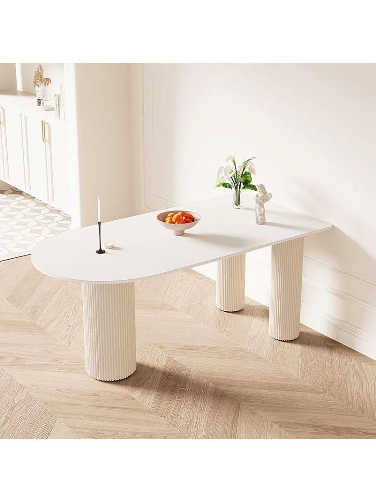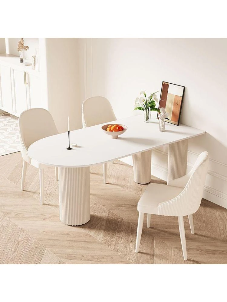 モダンでシンプルなデザインのアイランドダイニングテーブルセット!小さなスペースにもぴったりな軽やかなクリーム風の異形テーブルと椅子の組み合わせで、あなたの食卓をスタイリッシュに演出します。
