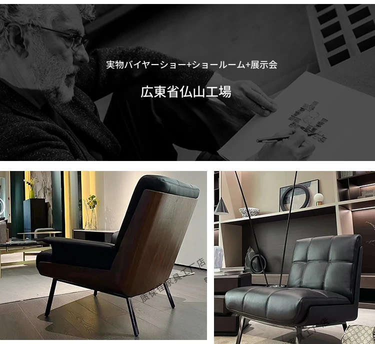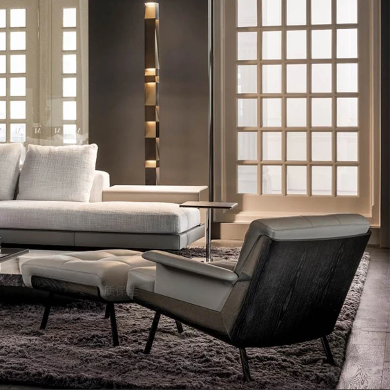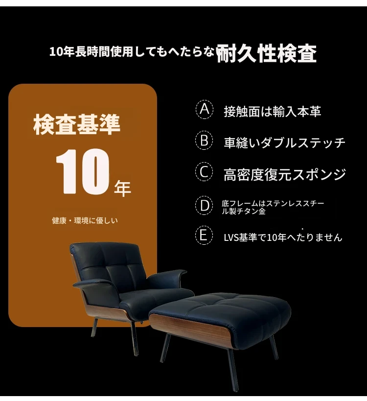 黒い背の淡い灰色のレザー椅子+フットスツール