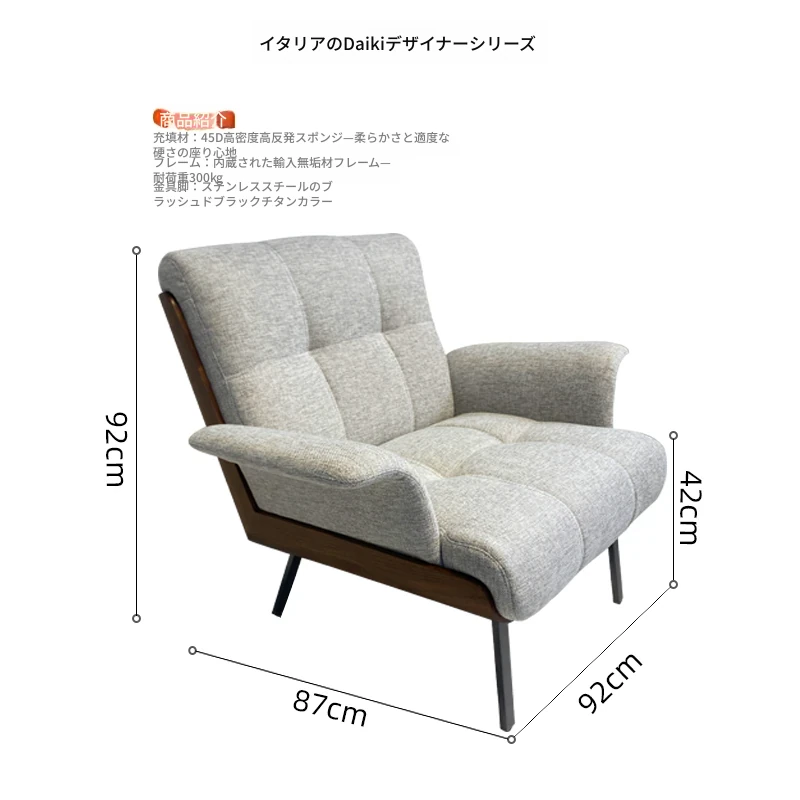 一人用ソファチェア | ラグジュアリーで快適なデザイン!モダン&シンプルな北欧スタイル、実木使用の布製リクライニングチェア。小さな部屋でも映えるアート感あふれるアイテム、寝室やリビングに最適!
