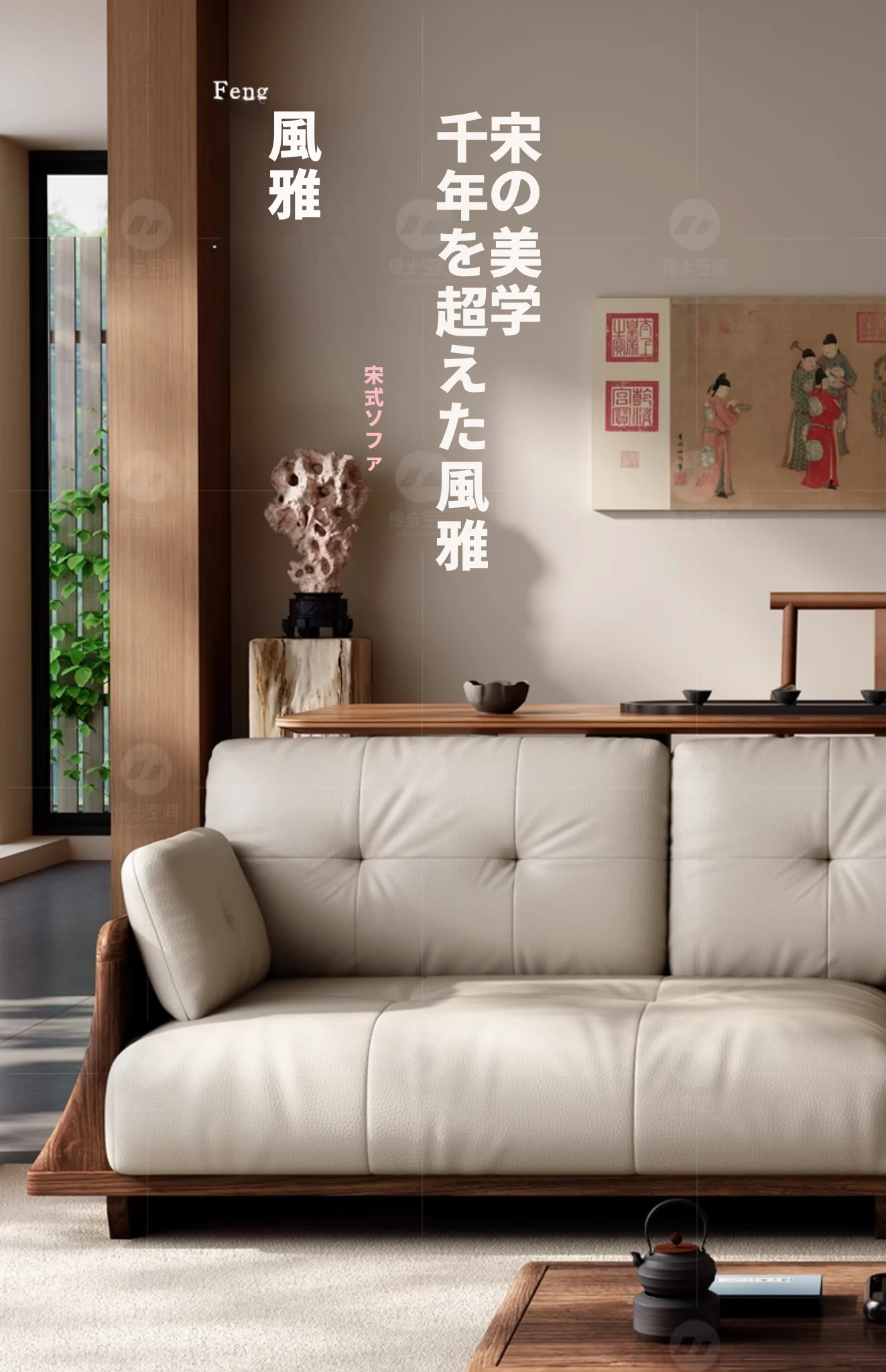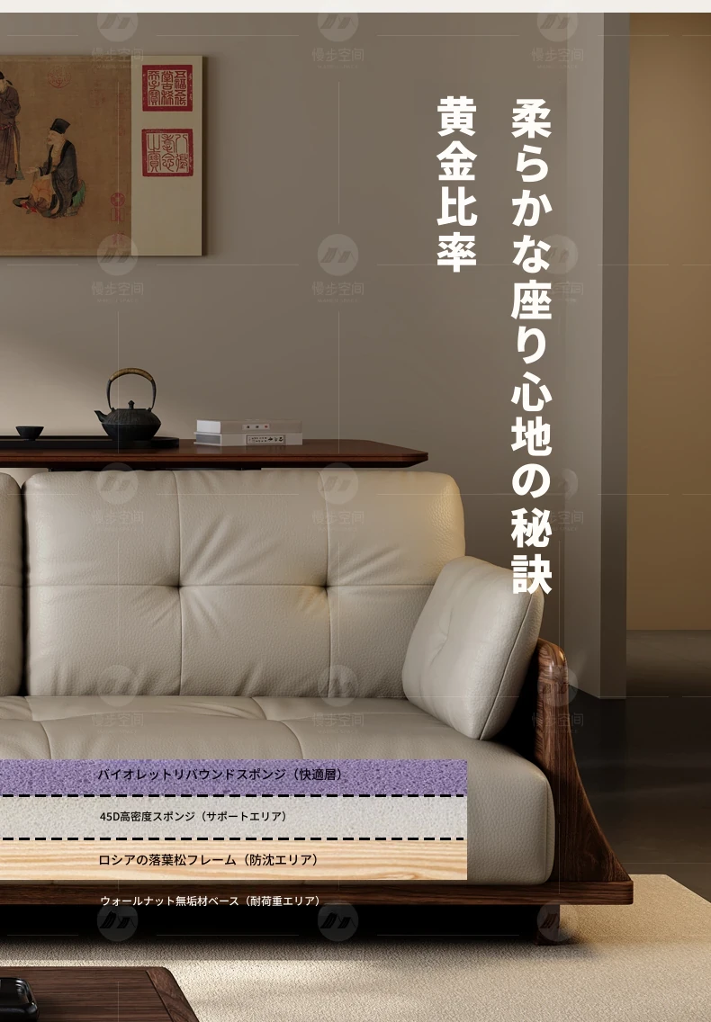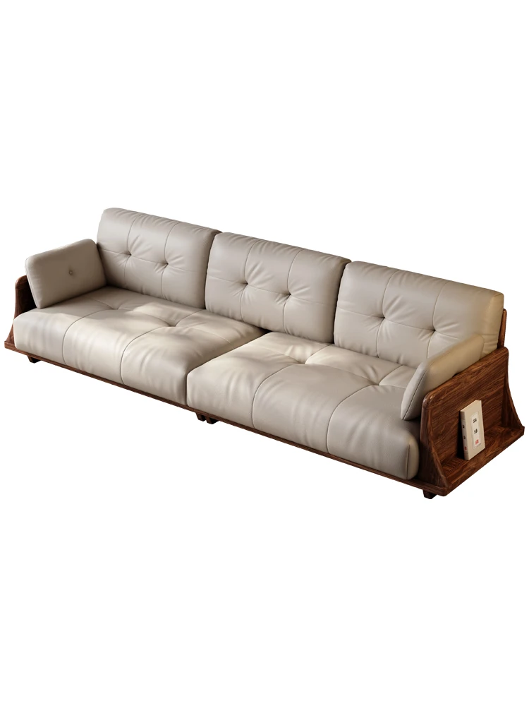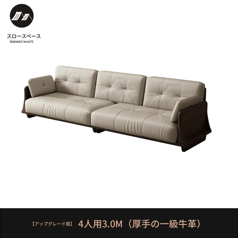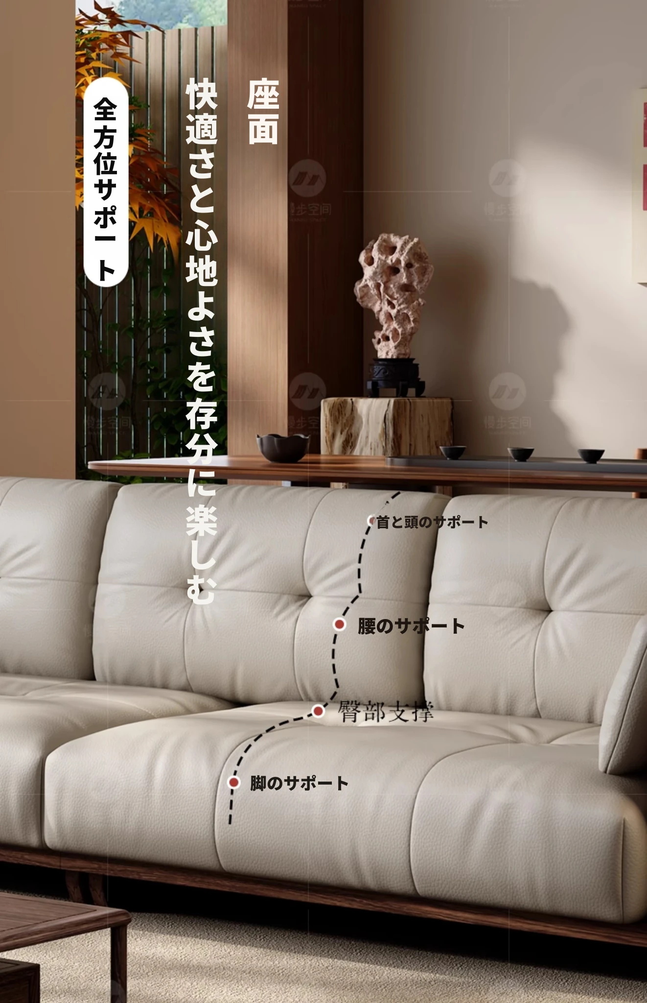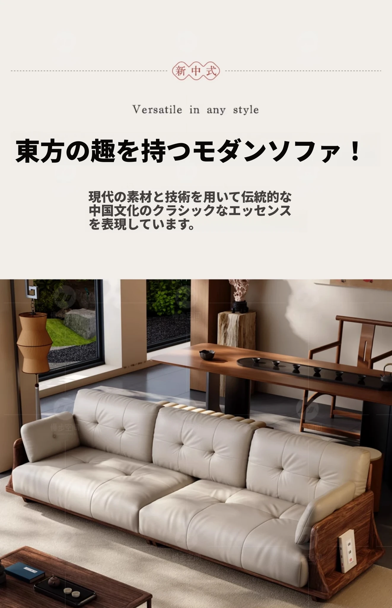 新中式ブラックウォールナット無垢材本革ソファセット 軽やかなラグジュアリー感のあるリビング用直列4人掛け 2025年新作家具で、洗練された空間を演出!