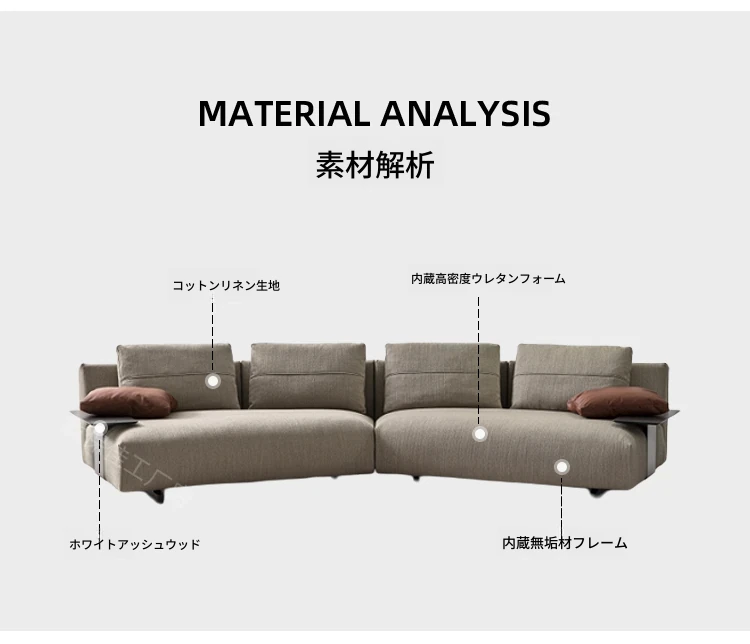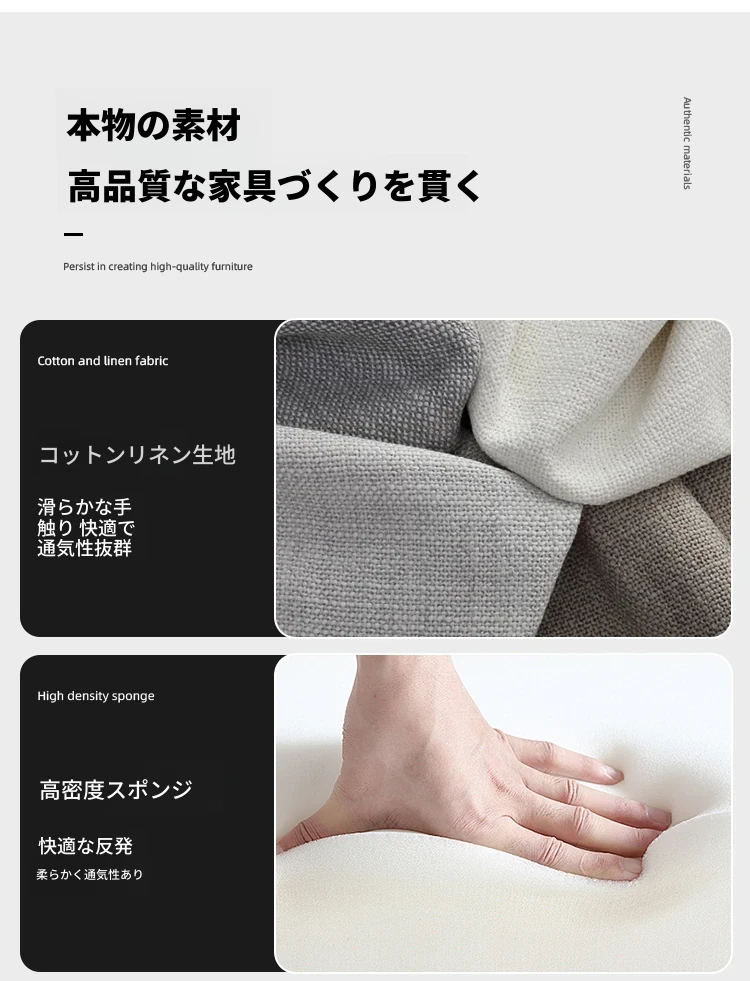質保証付き!北欧デザインのクリーミーなソファ、イタリアンミニマリズムで洗練されたメタル脚の3人掛け直置きコットンリネンファブリックソファ。おしゃれなリビングにぴったり!