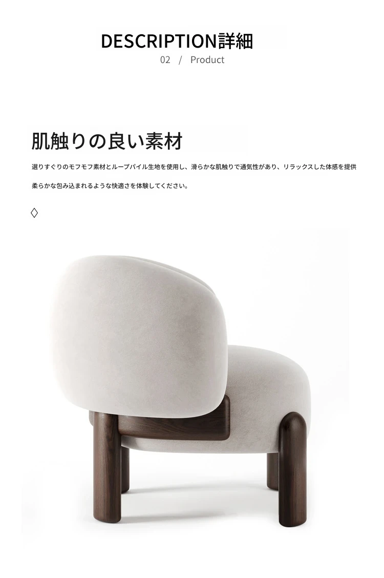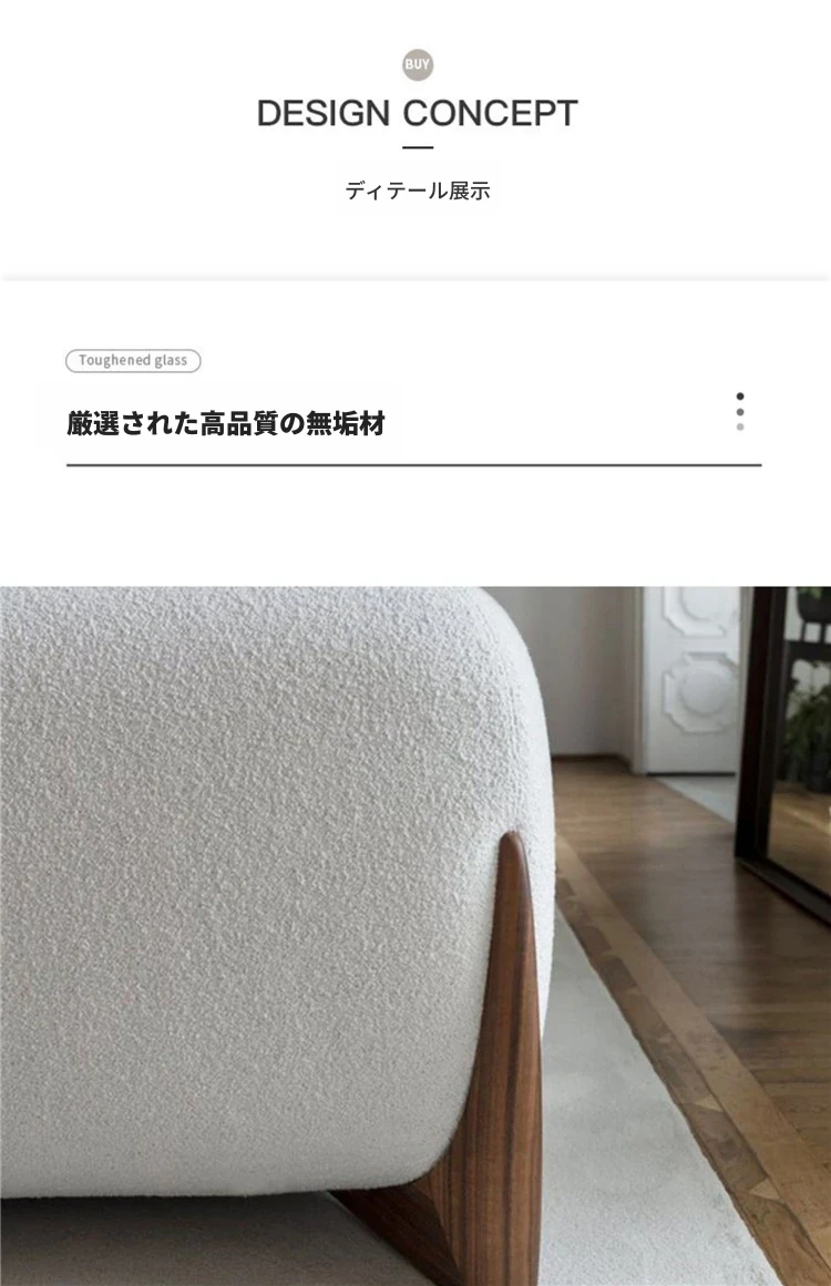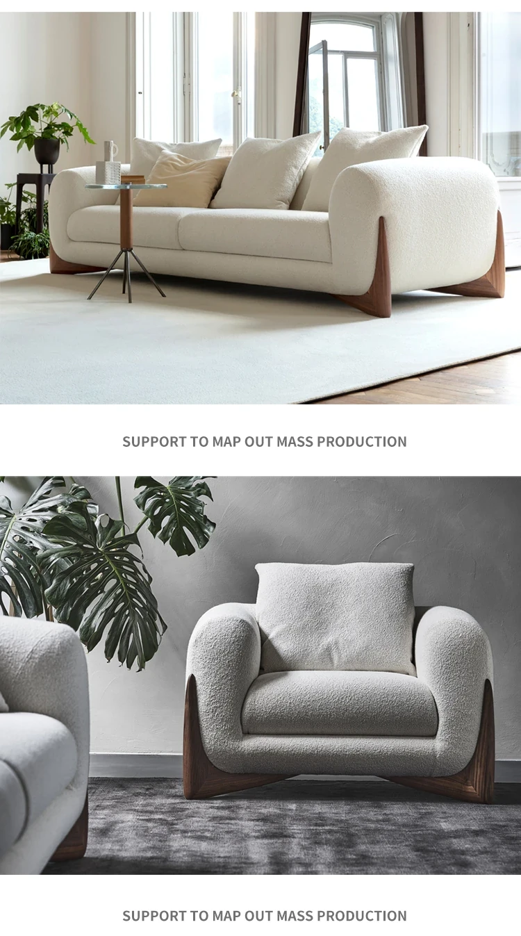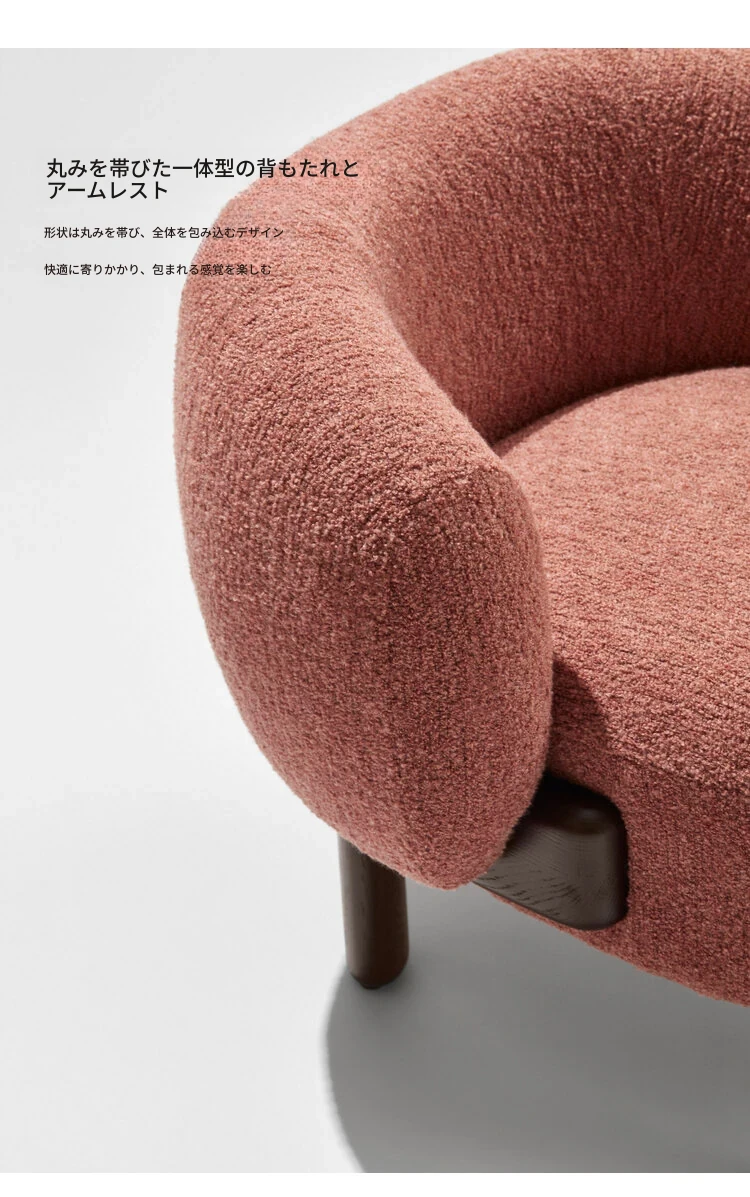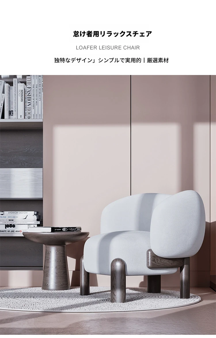 北欧スタイルのトレンディなリビングルーム用、シンプルでモダンな軽奢感漂うクリーミーホワイトのラムウール製マルチシートソファチェア。小さなお部屋にもぴったり!快適さと洗練されたデザインを両立。