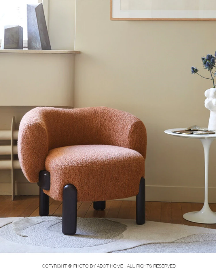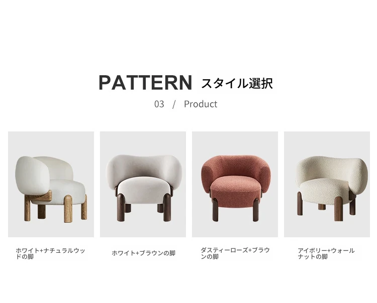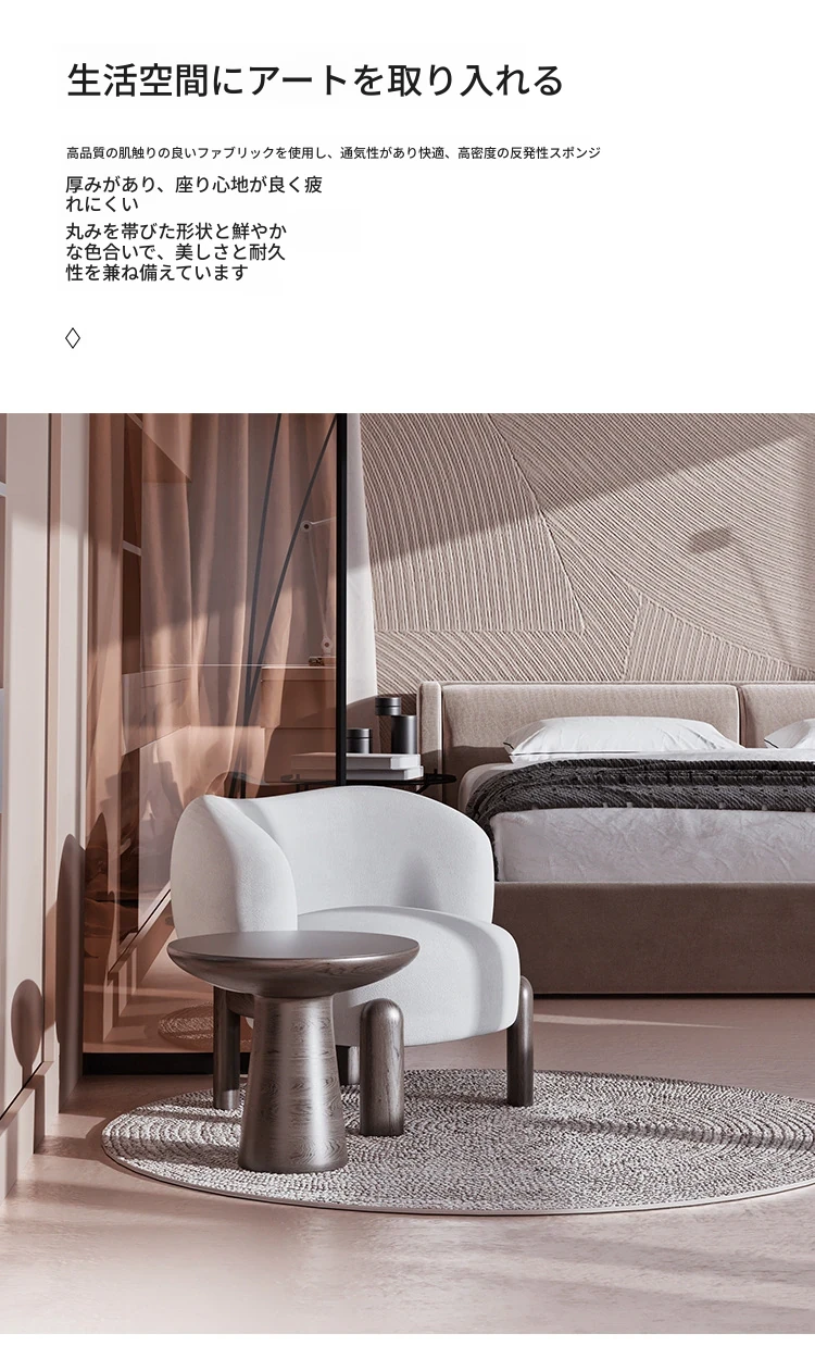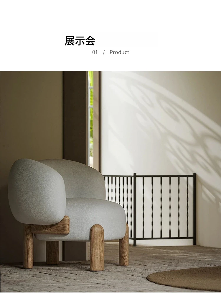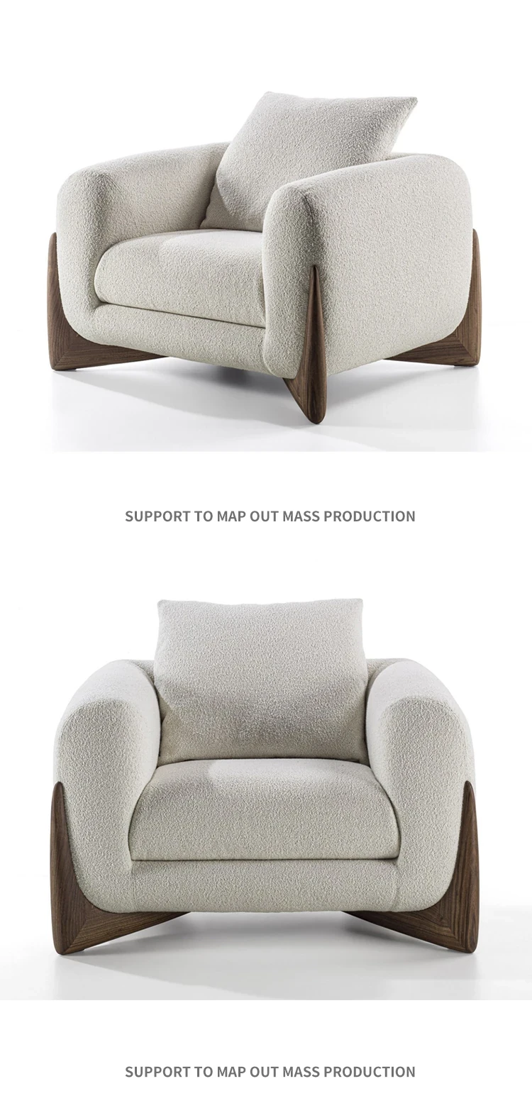 北欧スタイルのトレンディなリビングルーム用、シンプルでモダンな軽奢感漂うクリーミーホワイトのラムウール製マルチシートソファチェア。小さなお部屋にもぴったり!快適さと洗練されたデザインを両立。