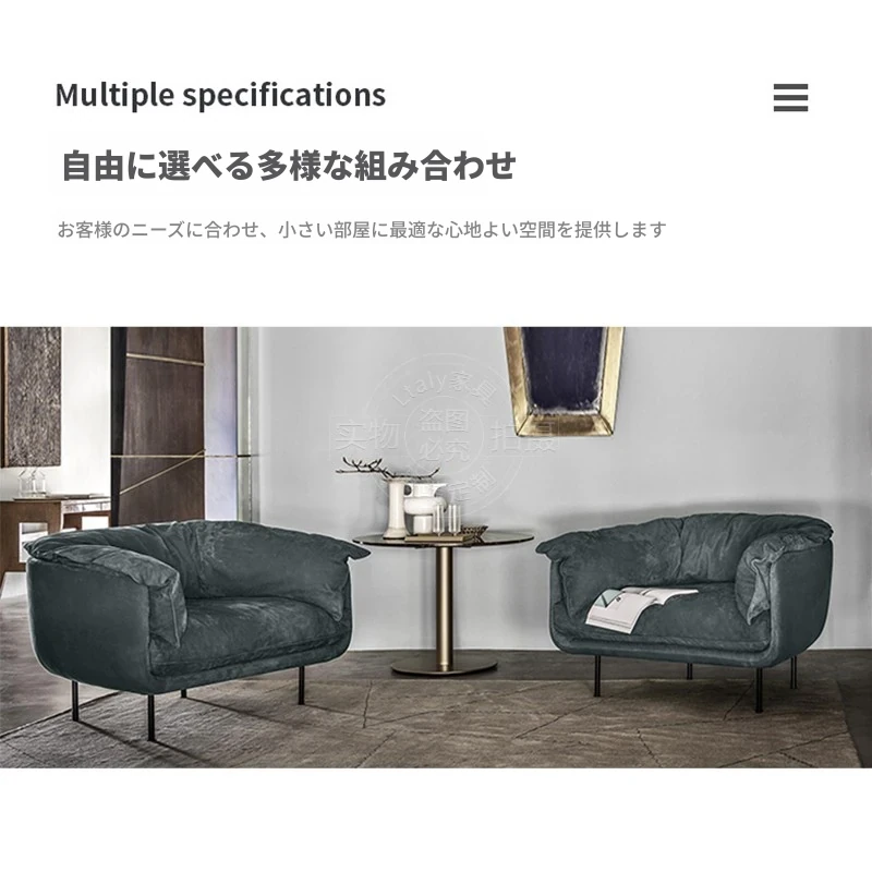 北欧風のラグジュアリーな現代的ミニマリストデザイン!小さなリビングにぴったりのダウン入り本革ソファ。上質なトップグレインレザーとハイテクファブリックを使用したデザイナーズアイテム。快適さとスタイルを両立させた一品!