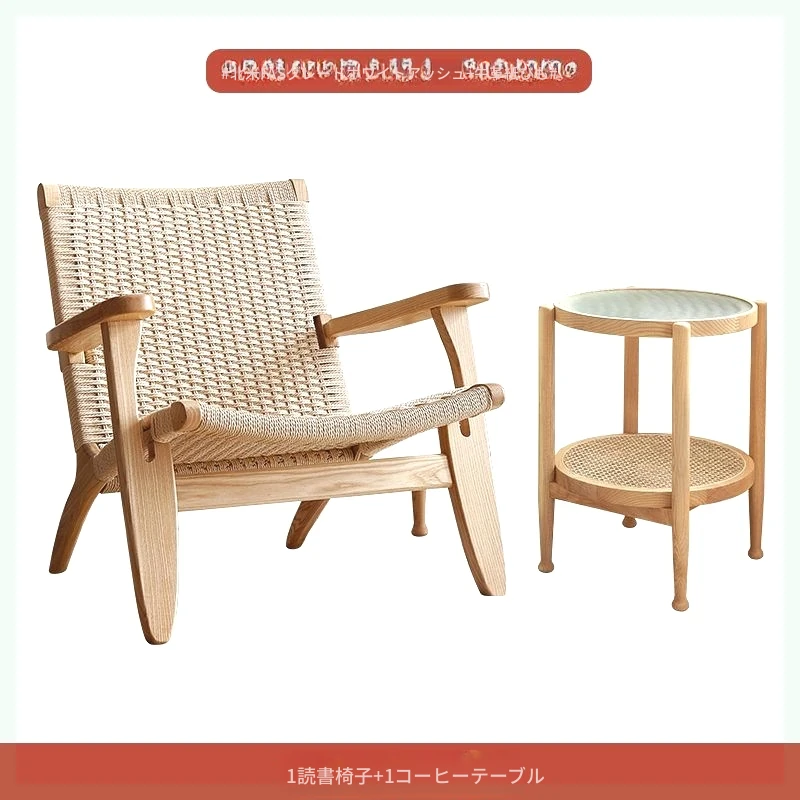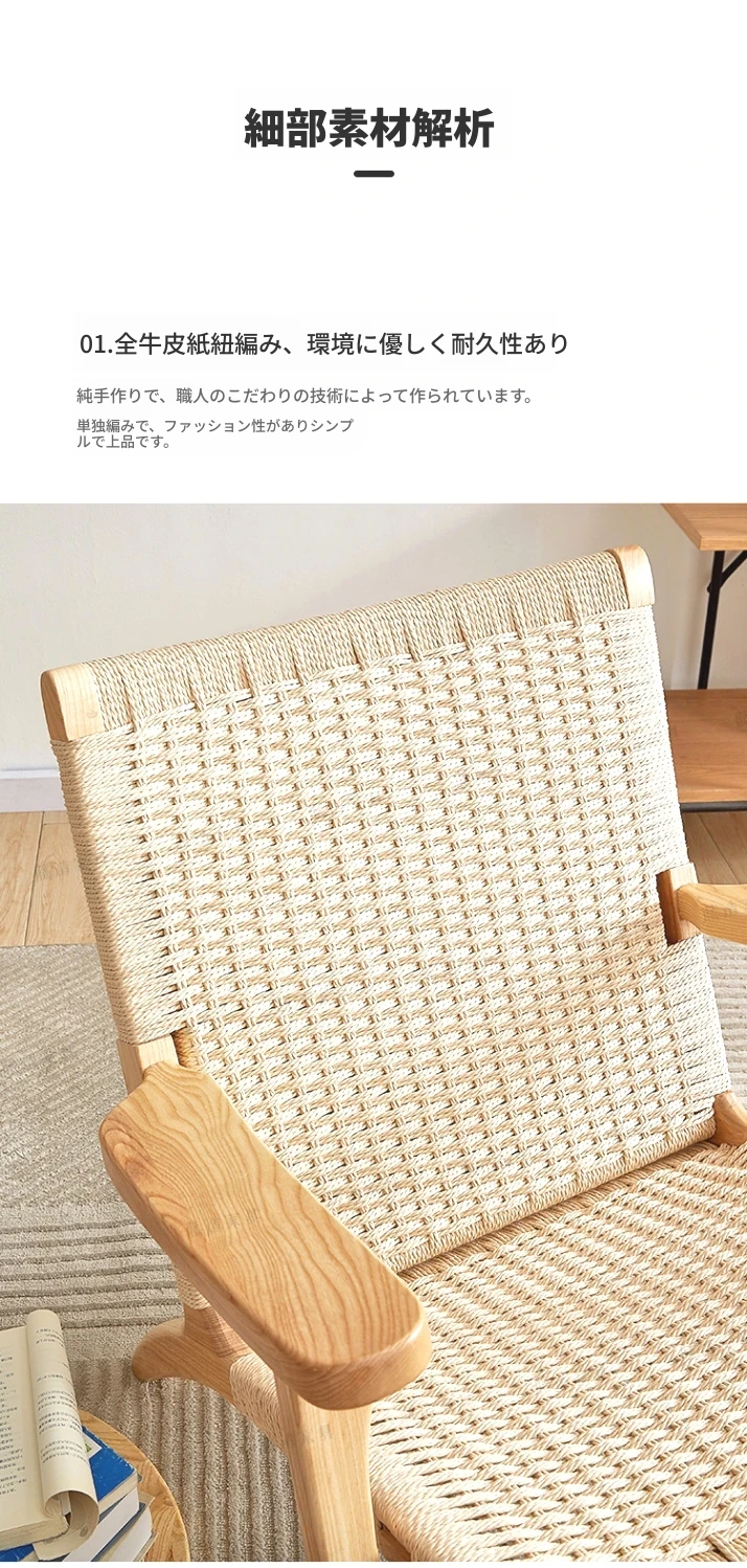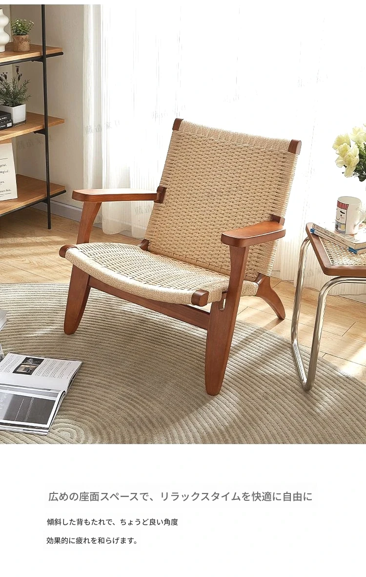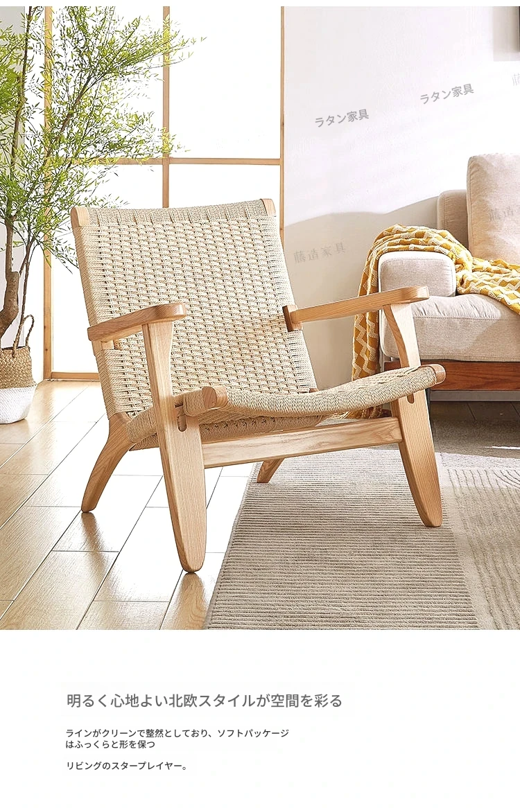 北欧風の天然木製ラタン編みリクライニングチェア - リビング、寝室、バルコニーに最適な一人用ソファ。快適な背もたれで、くつろぎのひとときを提供します。あなたの空間をおしゃれに彩るアイテムです!