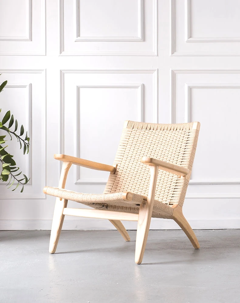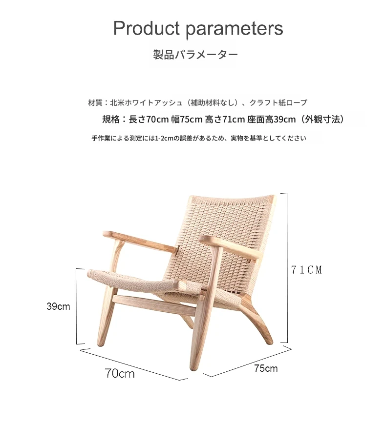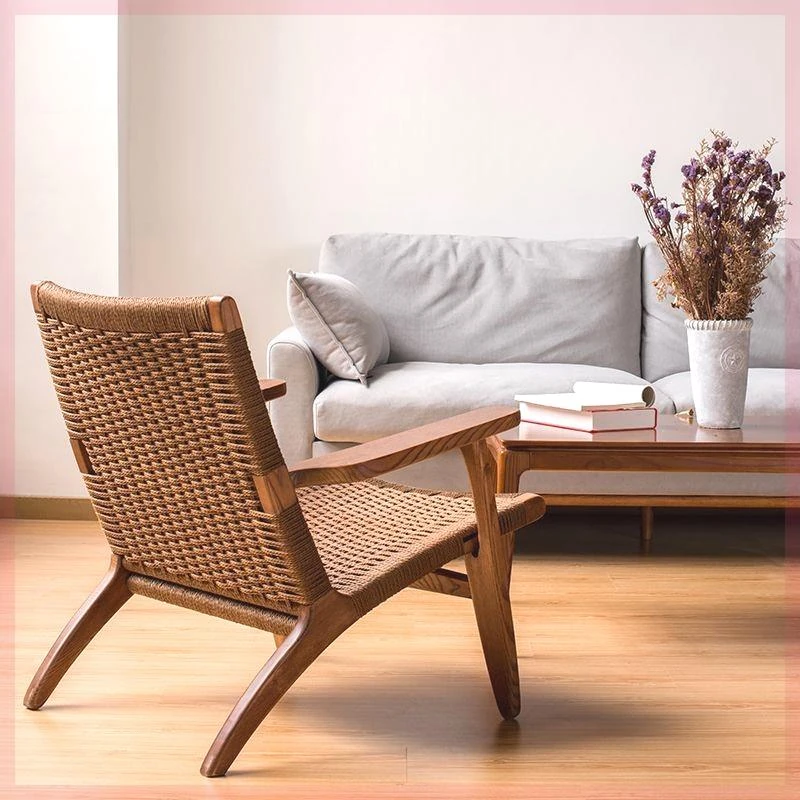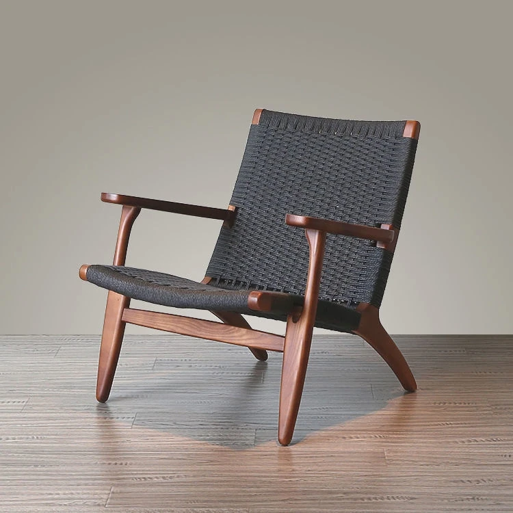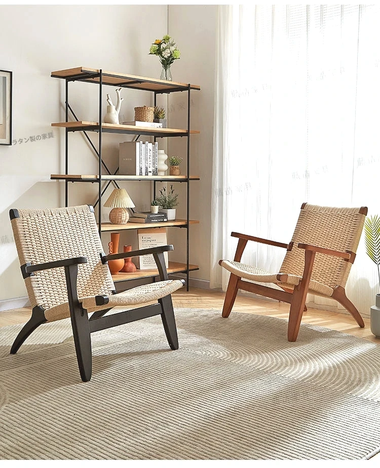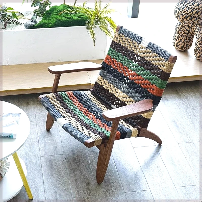 北欧風の天然木製ラタン編みリクライニングチェア - リビング、寝室、バルコニーに最適な一人用ソファ。快適な背もたれで、くつろぎのひとときを提供します。あなたの空間をおしゃれに彩るアイテムです!