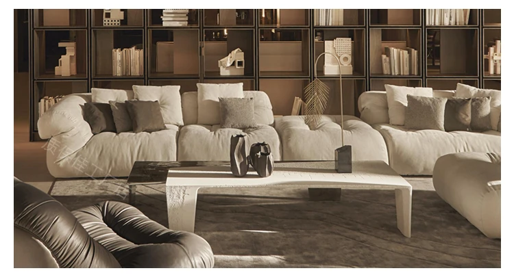 イタリアンクリーム風ファブリックソファ|モダンミニマリストデザイン|自由に組み合わせ可能なアイランド豆腐型|ラグジュアリーで高級感あふれるリビングの必需品!
