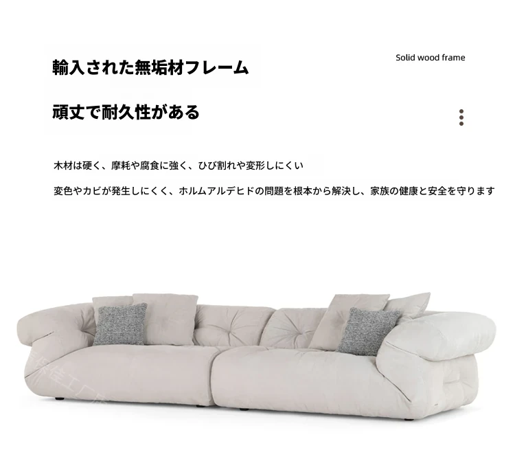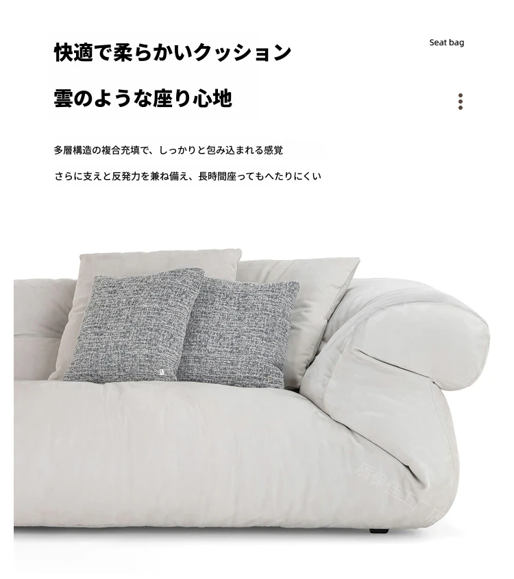 イタリアンレトロスタイルのスエード天鹅ソファー - 小型リビングに最適!ふわふわのマシュマロクッションで、心地よいひとときをお届けします。スタイリッシュなデザインで、お部屋をおしゃれに演出!