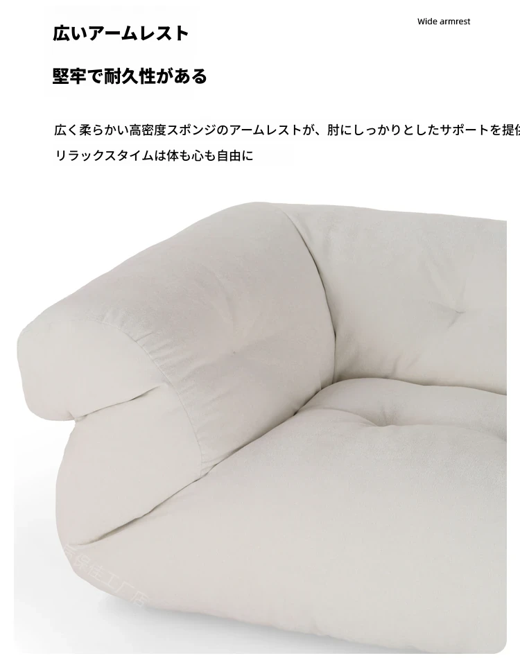 北欧スタイルのトレンディなリビングルーム用、シンプルでモダンな軽奢感漂うクリーミーホワイトのラムウール製マルチシートソファチェア。小さなお部屋にもぴったり!快適さと洗練されたデザインを両立。