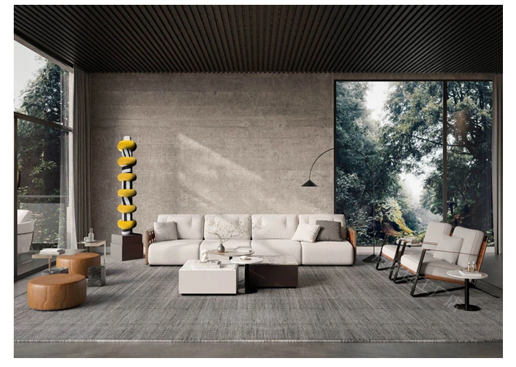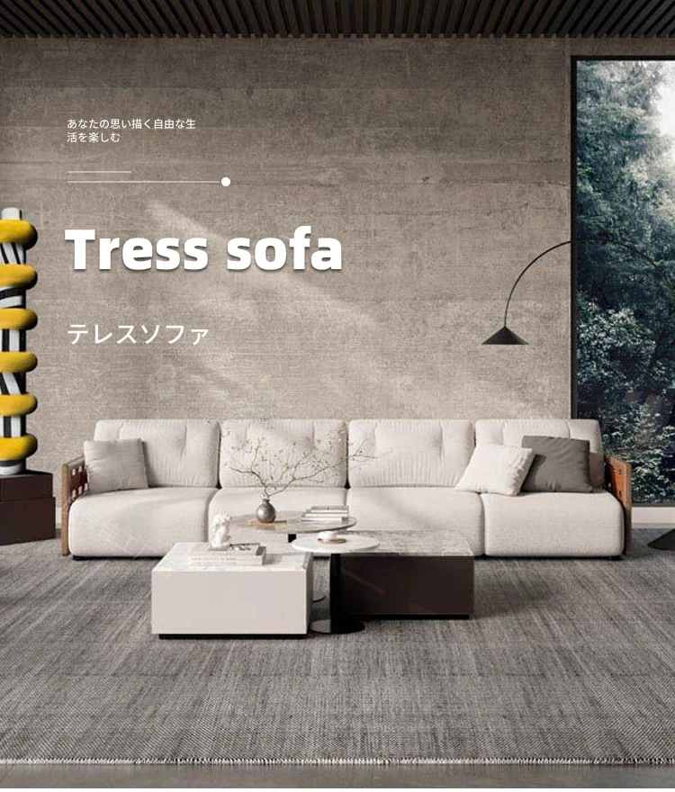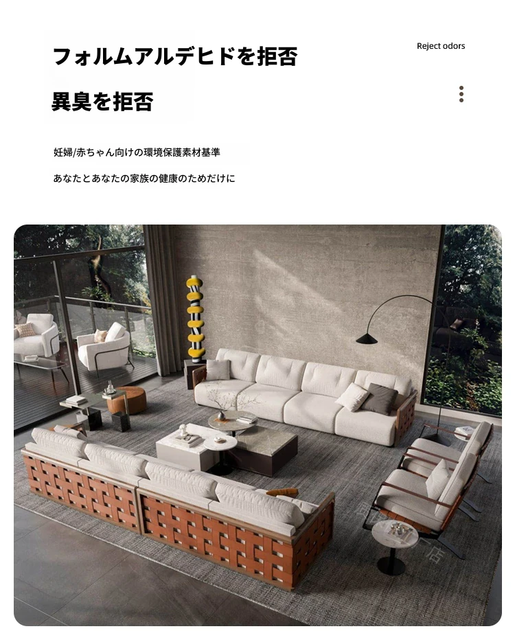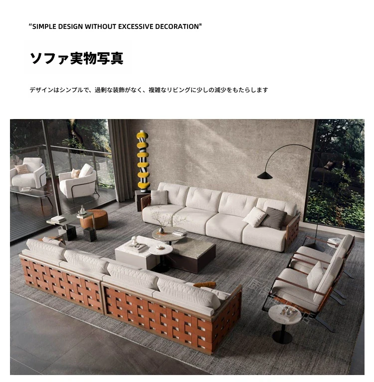 高品質保証!直排式イタリアン・ミニマルデザインの高級ヴィラ用大平面ソファ。4人掛け、クリエイティブなデザイナーによる本格的な無垢材使用。おしゃれで快適な空間を演出します!