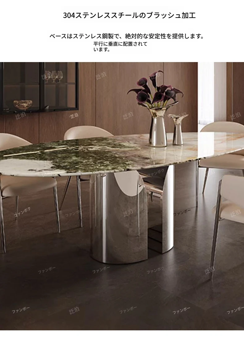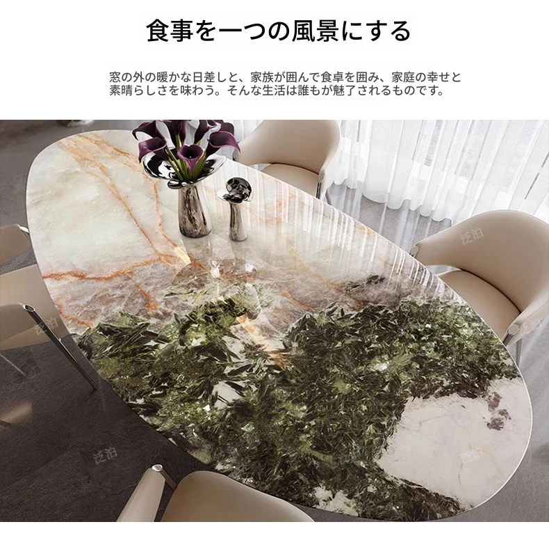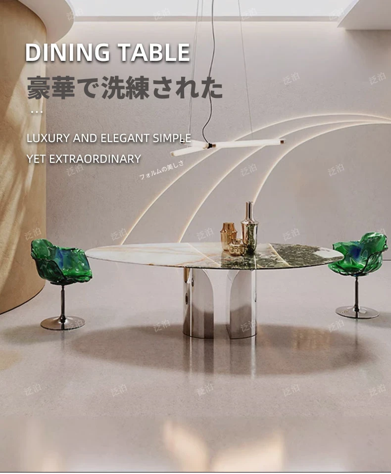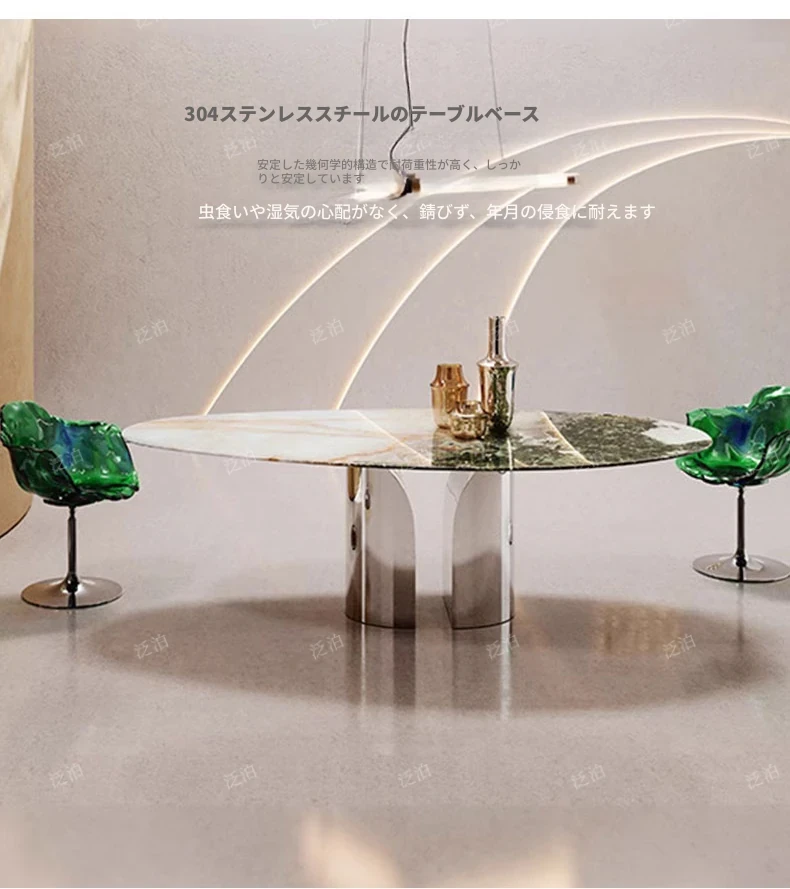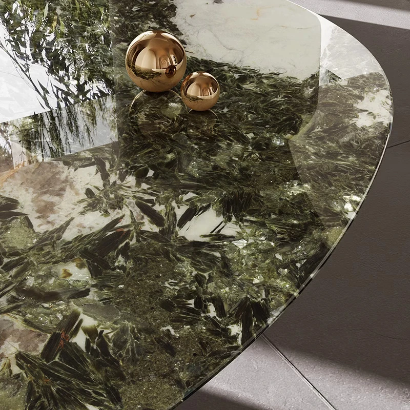 純天然グリーンダイヤモンドパンドラ高級石製ダイニングテーブル - 上品で気品あるイタリアンライトラグジュアリー、エレガントな水滴型大理石ダイニングテーブル。高級感溢れる食卓で特別な時間をお楽しみください。