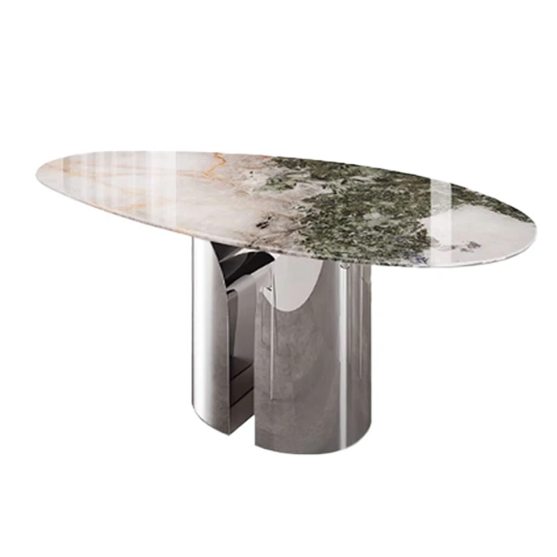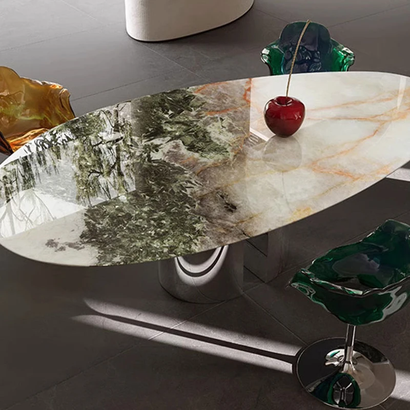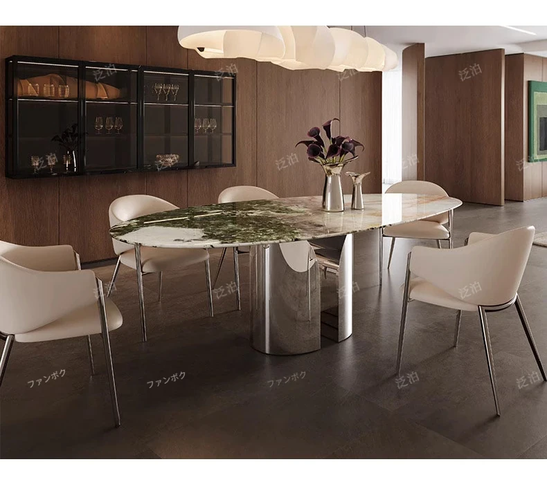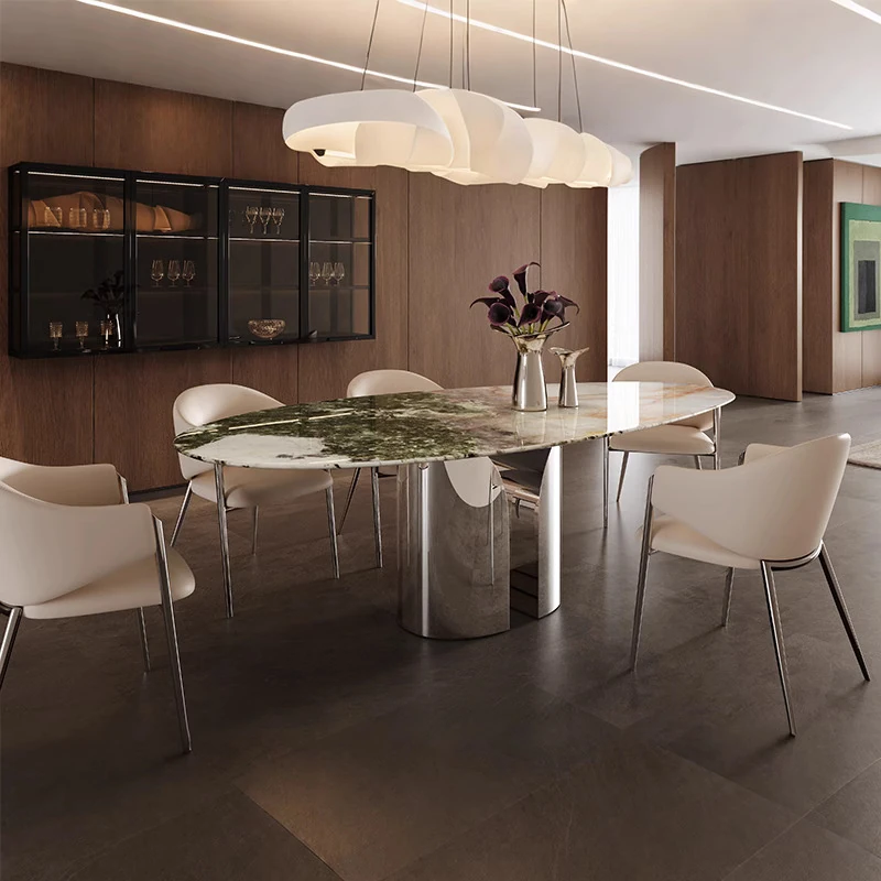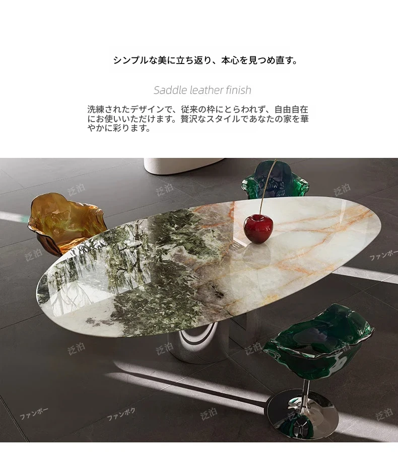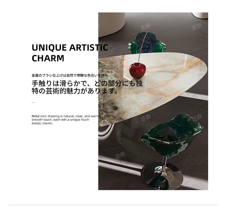 純天然グリーンダイヤモンドパンドラ高級石製ダイニングテーブル - 上品で気品あるイタリアンライトラグジュアリー、エレガントな水滴型大理石ダイニングテーブル。高級感溢れる食卓で特別な時間をお楽しみください。