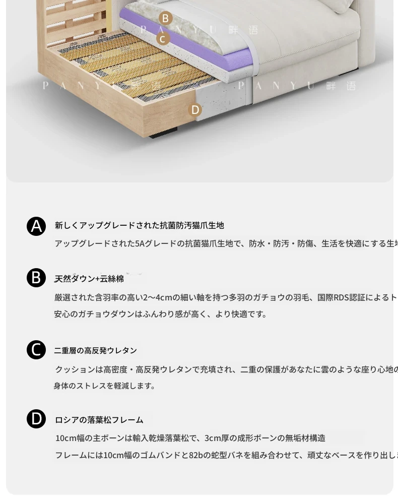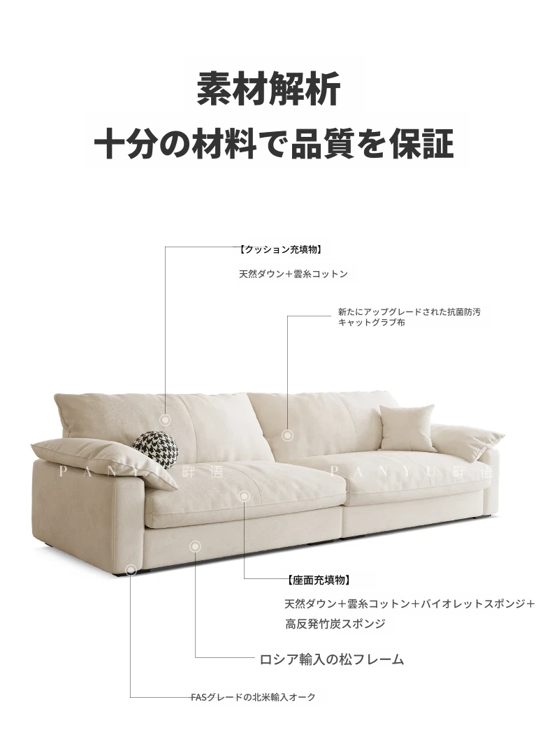 大5人掛け 3.4メートル【天然ダウン+3CMバイオレットスポンジ+高反発竹炭スポンジ】
