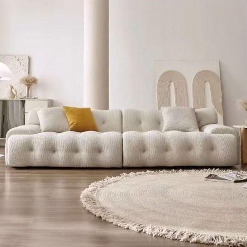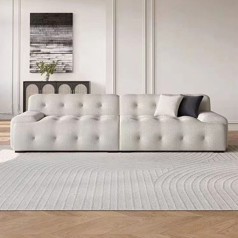 ローチバー生地ソファ 小型リビングに最適 シンプルモダン イタリアンミニマル デザートクリーム風 豆腐ブロック型ストレートソファ どんな空間にもフィットするスタイリッシュなデザインで、快適なひとときを提供します!