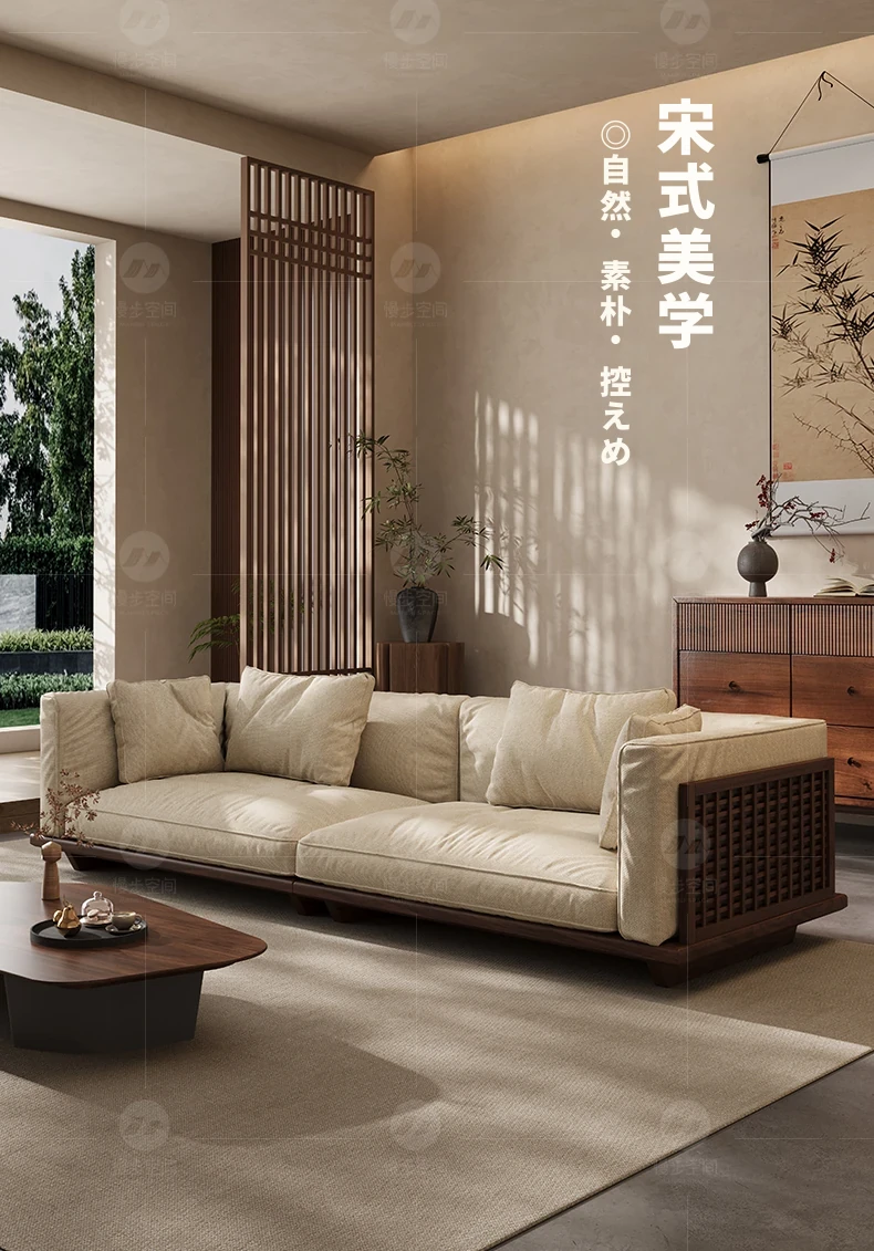 宋代美学を取り入れた無垢材ソファー新中式デザイン、ブラックウォールナット使用!大小さまざまなリビングにぴったりの2025年新作宋式家具。洗練された美しさで、あなたの空間を格上げします!